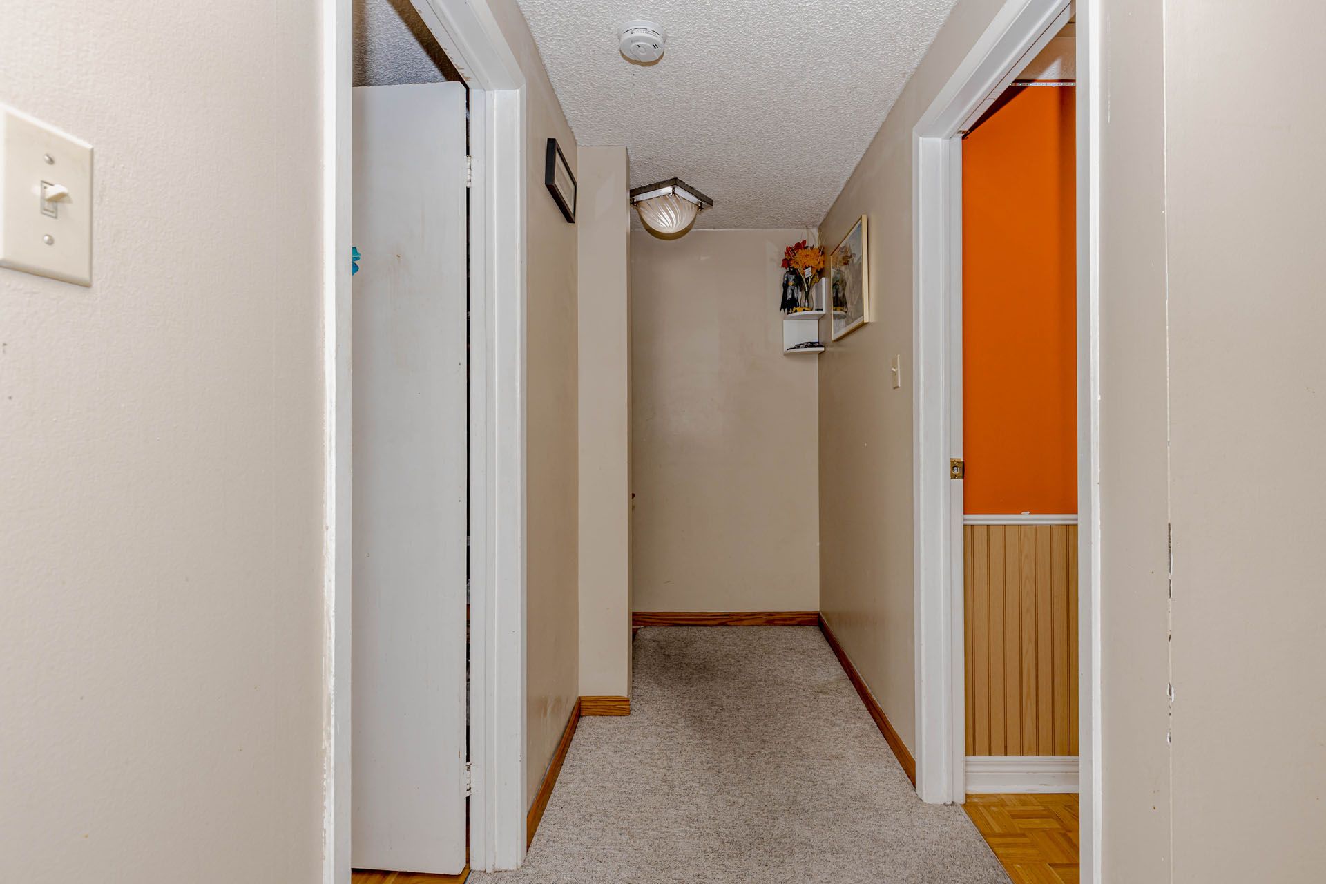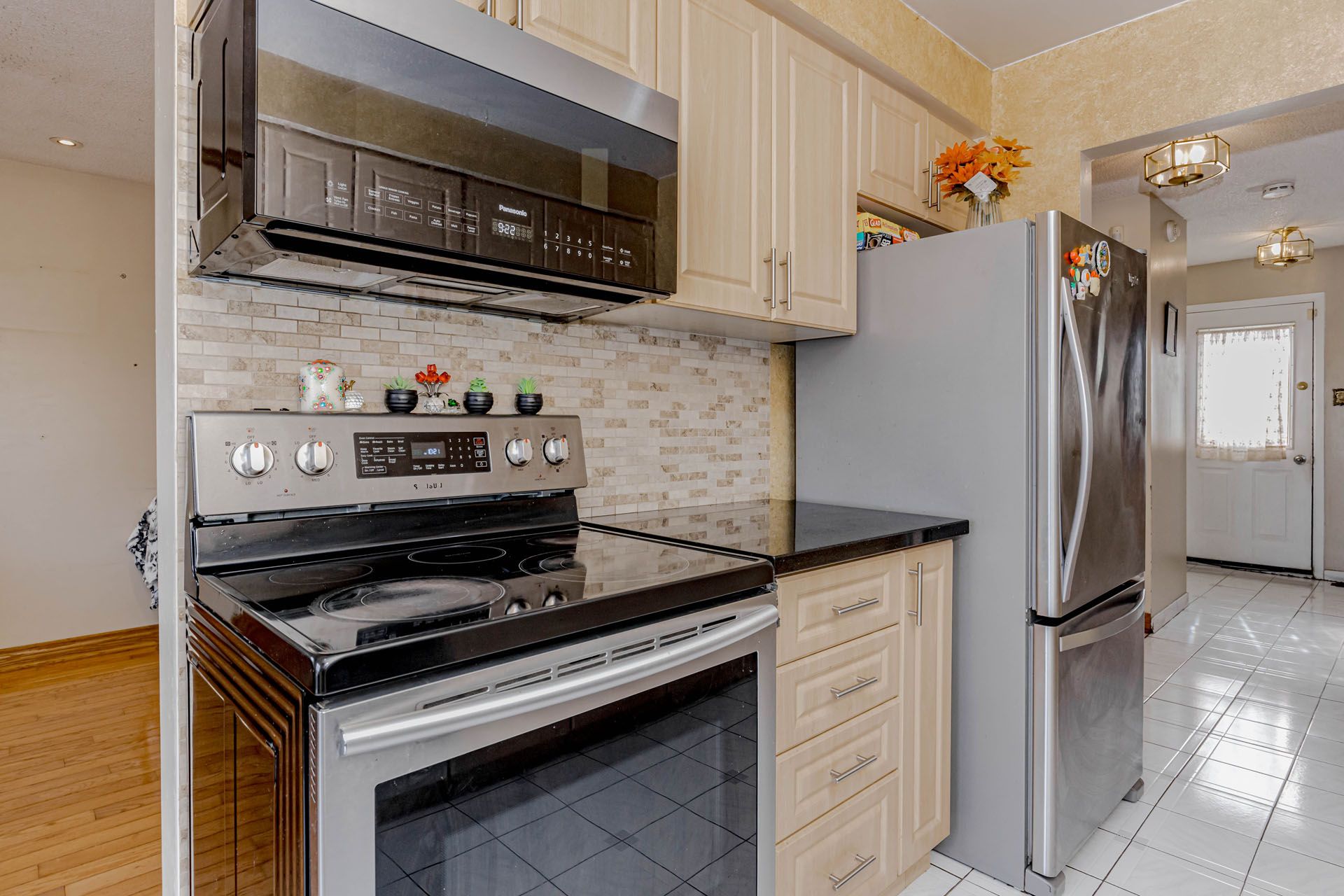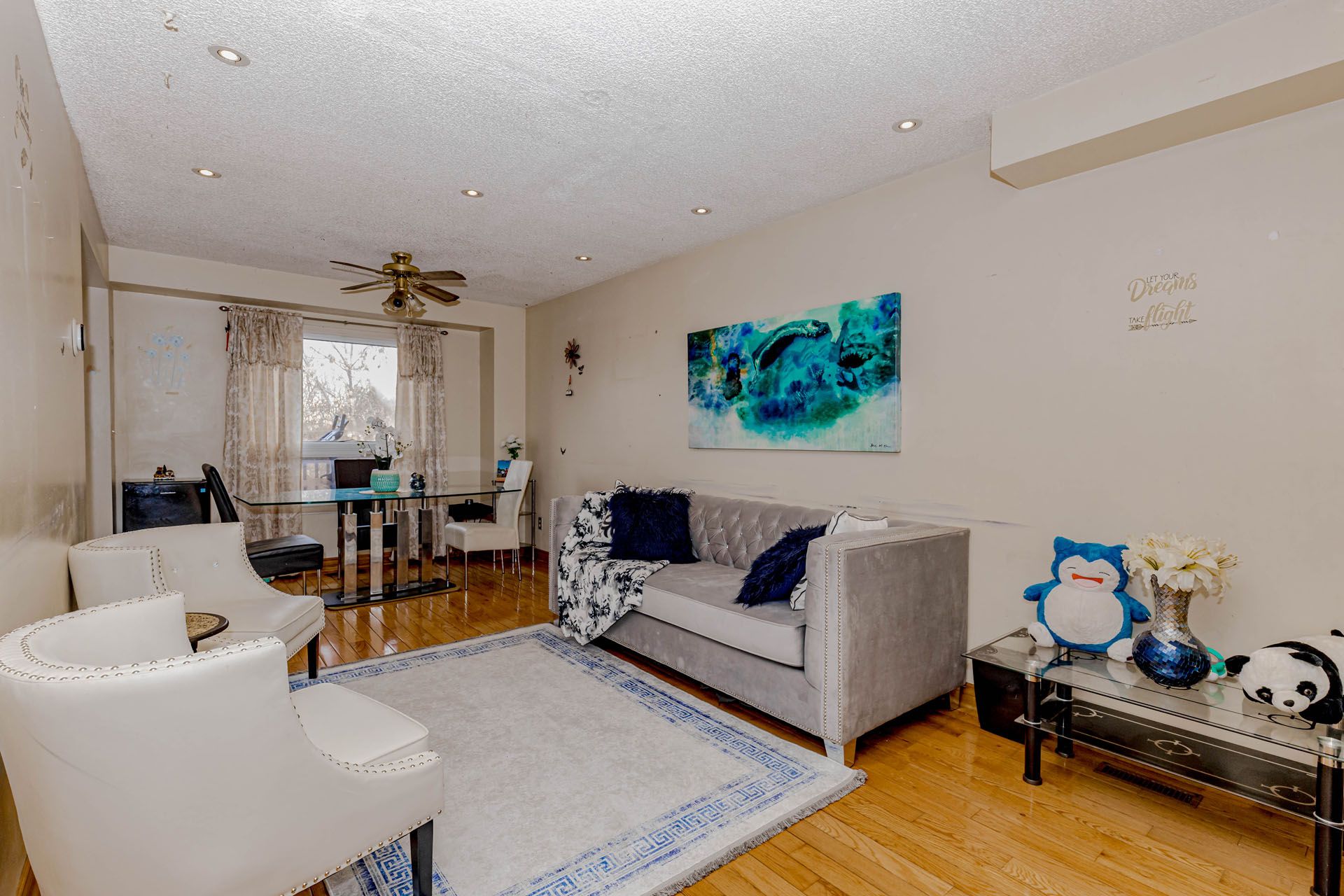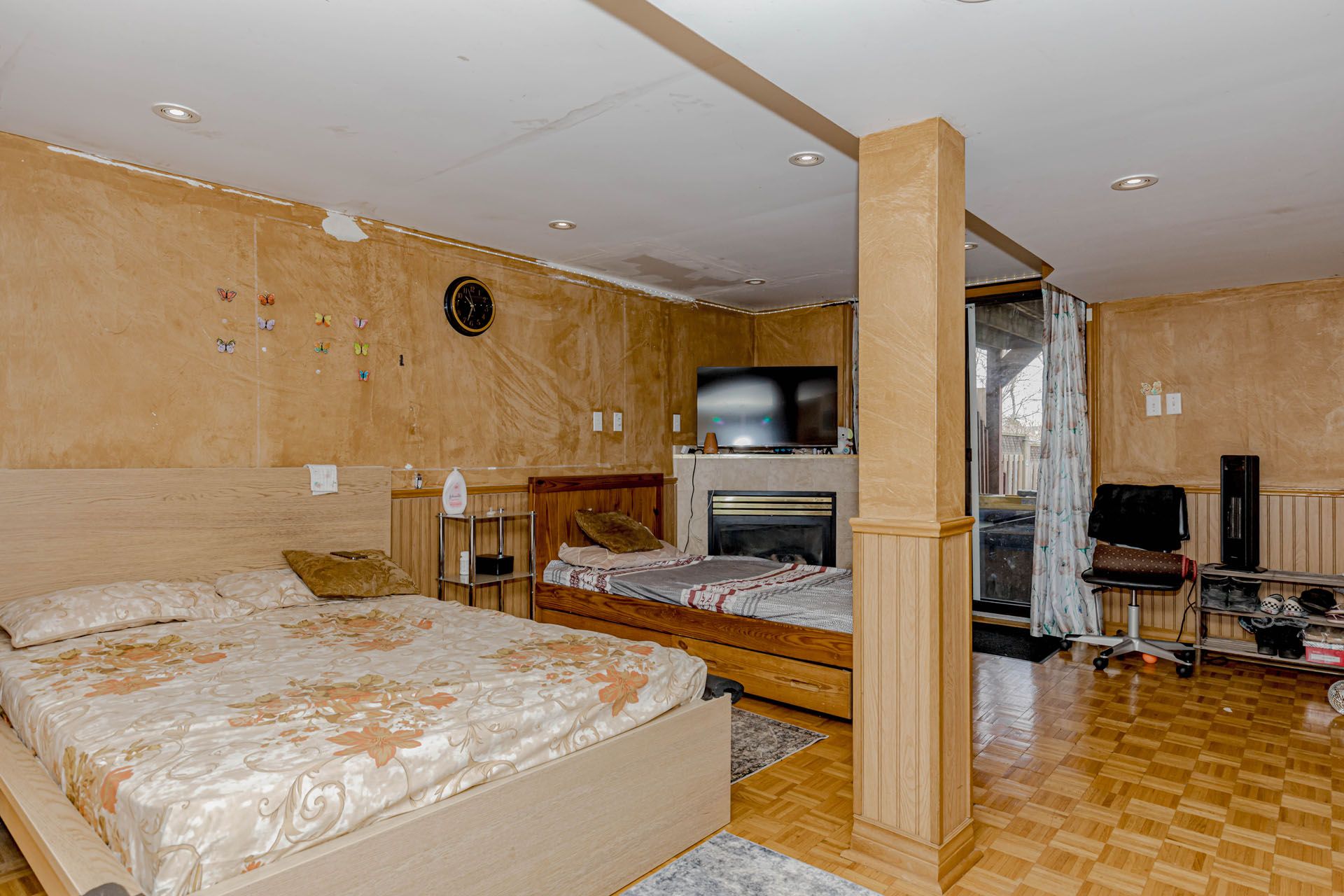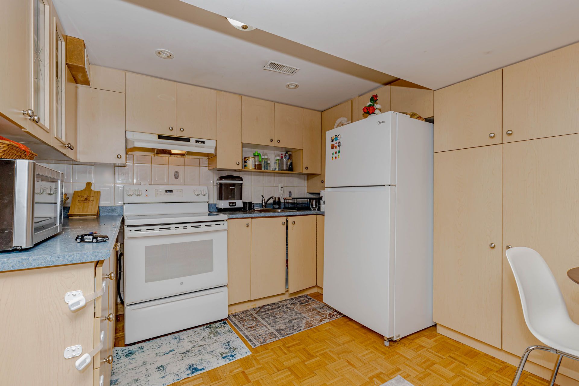 Location! Location! Location! Well-maintained freehold townhouse, attached on one side by the garage, offering both privacy and functionality. Features a finished above-grade recreation/Studio room complete with a full bathroom, dedicated office space, and walk-out access to a patio and fully fenced garden with no rear neighbours. The home has been thoughtfully upgraded over the years, including a high-end AC (2025), roof (2025),Freezer (2025) and carpet free in the living and dining areas and foyer, Additional highlights include new Dryer(2025). The property offers a semi-ensuite bathroom and a walk-out to an elevated deck from the living room. A rear garage door provides convenient access for easy lawn maintenance.