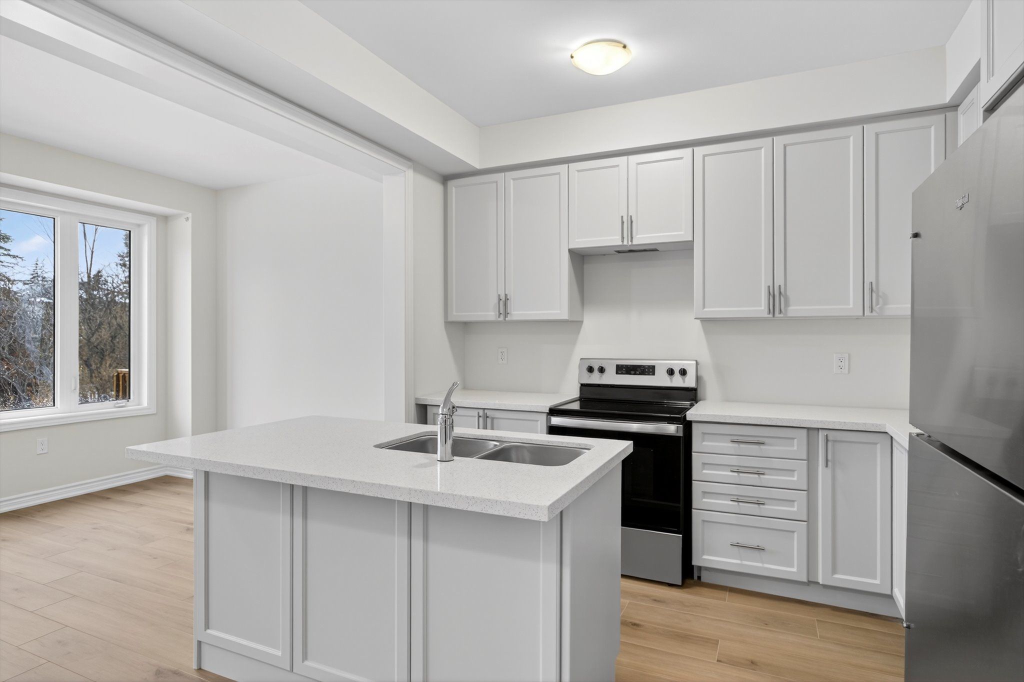 Brand-new 3-bed, 2.5-bath townhome by Fernbrook Homes, backing onto protected green space in one of Lindsay's most desirable areas. Featuring , carpet-free flooring, and a quartz-island kitchen with stainless steel appliances, this home blends style and functionality. The primary suite boasts a walk-in closet and quartz-finished ensuite, while upstairs laundry adds convenience. Parking for two (garage + driveway) adds everyday practicality. Surrounded by parks, trails, and the Scugog River yet minutes from downtown, with quick access to Hwy 35/115/407 for easy commuting. A rare lease opportunity combining modern comfort with everyday privacy and nature at your doorstep