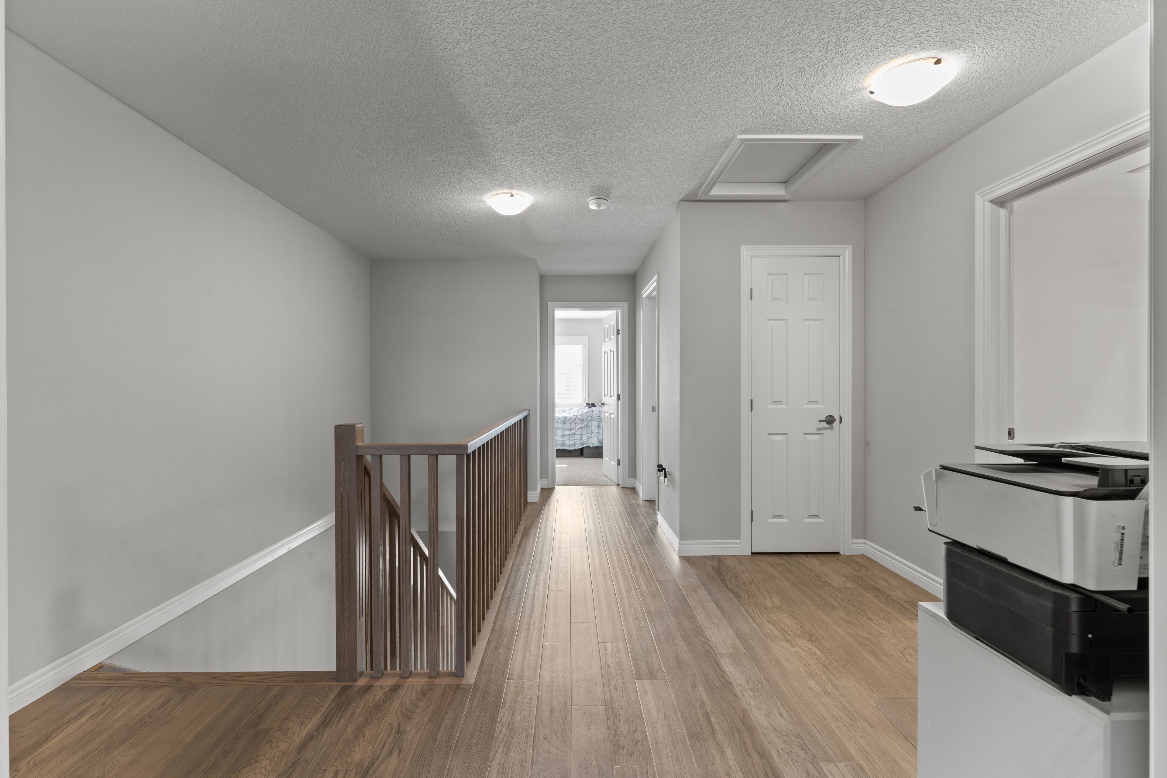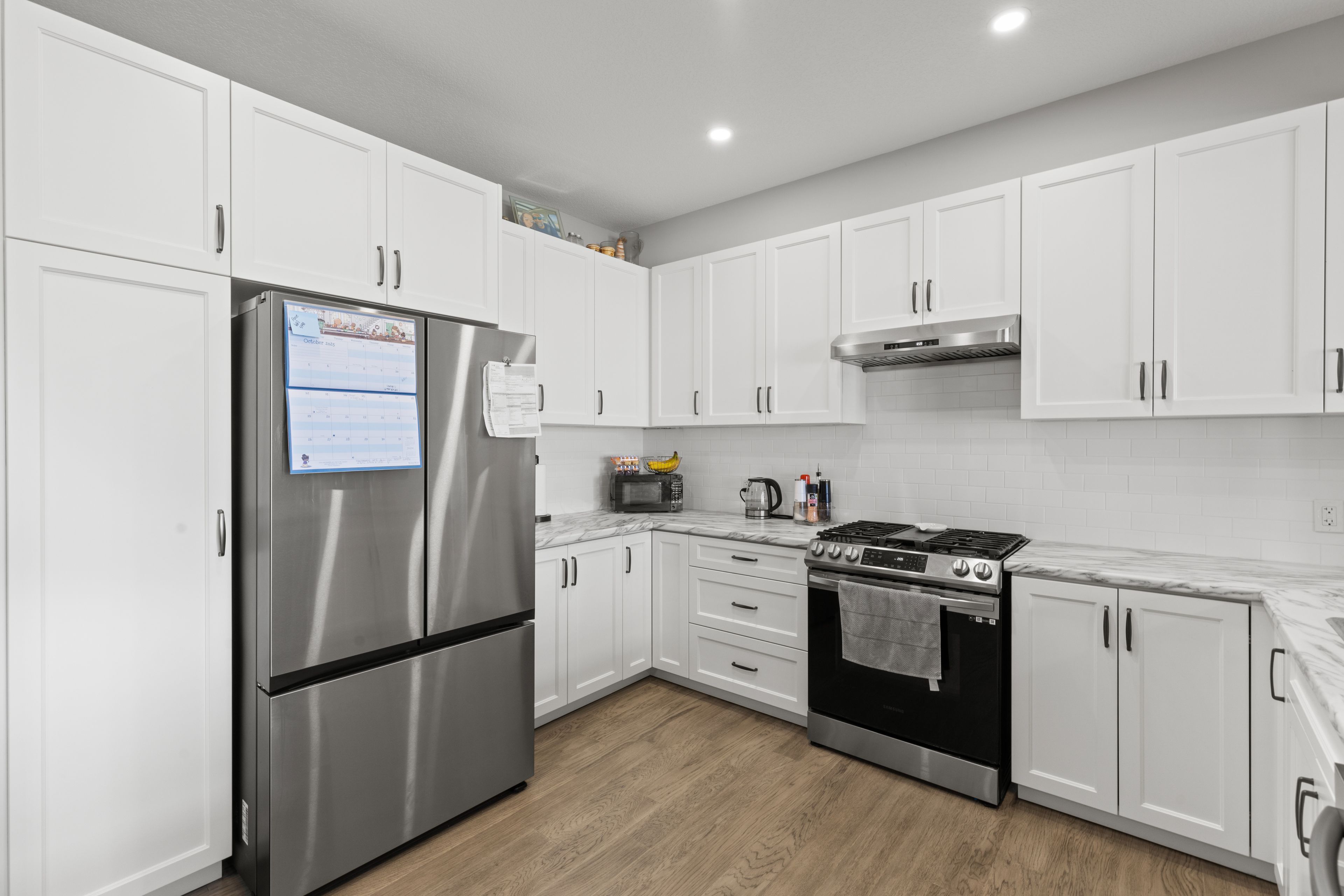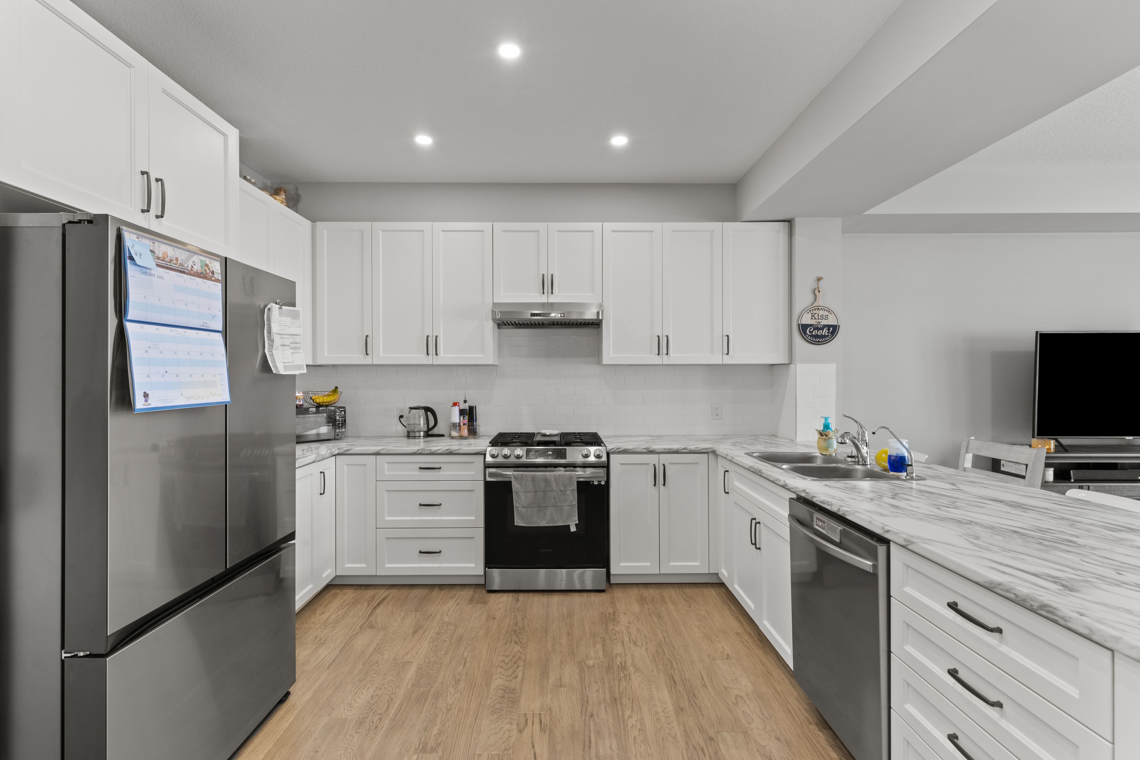 Welcome to this nearly new, beautifully designed two-story townhouse, built just one year ago and loaded with thoughtful upgrades. Featuring 3 bedrooms, 2.5 bathrooms, and a bright open-concept layout, this home perfectly balances comfort, style, and functionality. The main floor boasts a spacious living and dining area filled with natural light, complemented by a modern kitchen with stainless steel appliances, sleek countertops, and plenty of cabinet space - ideal for both everyday living and entertaining. Upstairs, you'll find three comfortable bedrooms, including a primary suite complete with a walk-in closet and private ensuite bath. The additional bedrooms are versatile for family, guests, or home office use. The basement offers excellent expansion potential, featuring a builder-upgrade rough-in for an additional bathroom, allowing you to easily customize the space to fit your needs. Out back, enjoy outdoor living with a gas line hookup for your BBQ, perfect for summer grilling and gatherings. The home also includes an attached garage, and energy-efficient systems for low-maintenance living. Located in a quiet, family-friendly neighborhood, this home is close to schools, parks, shopping, dining, and major commuter routes.