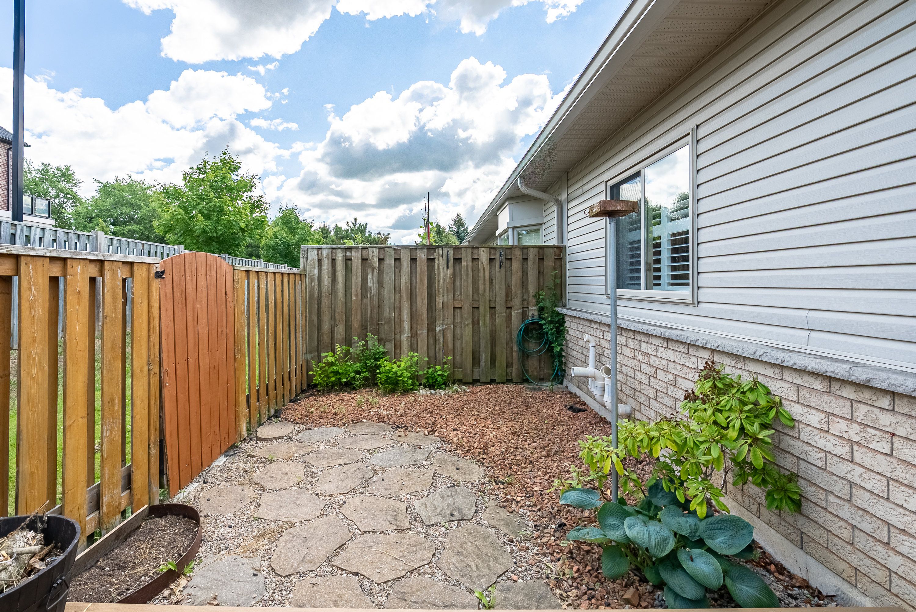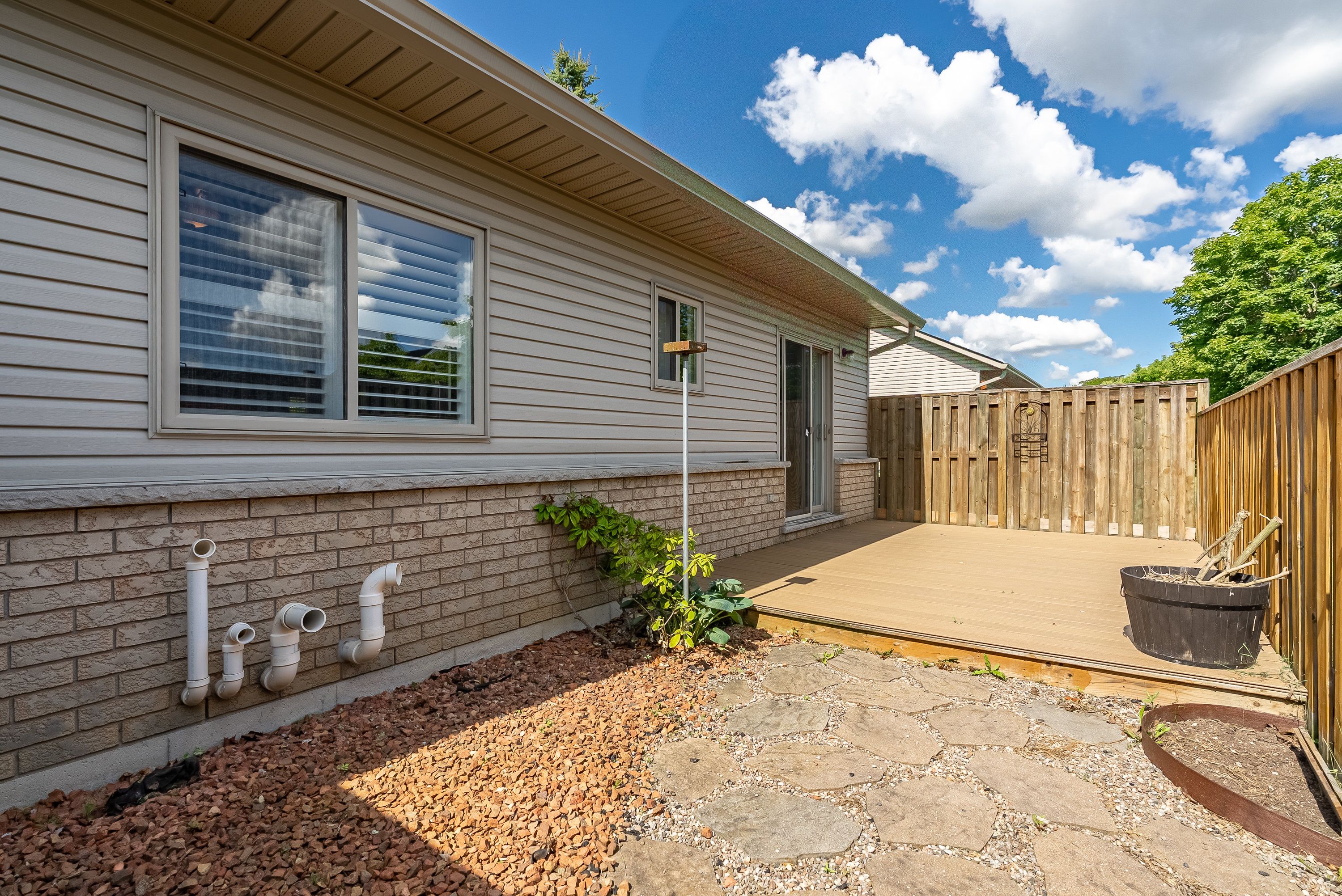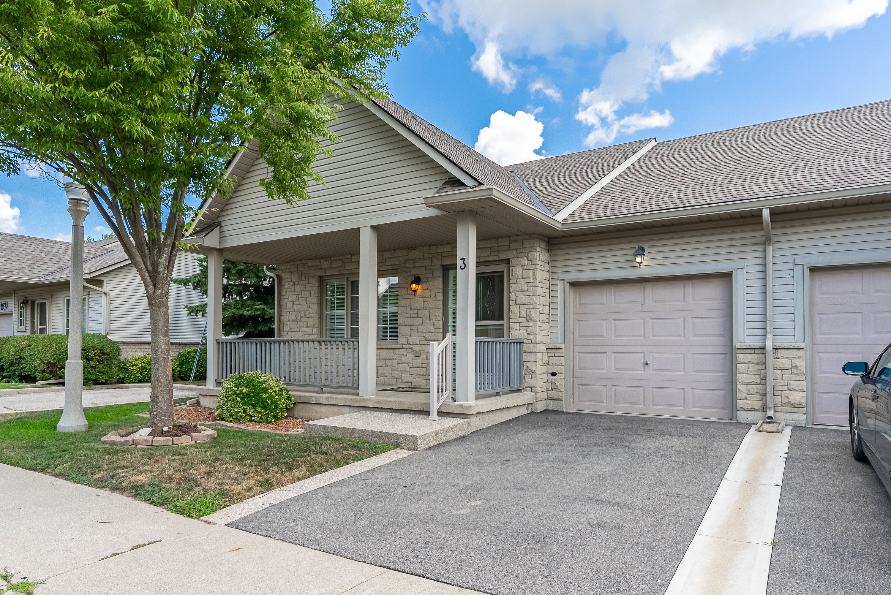 Welcome to this adult lifestyle complex. This well cared for property and spacious bungalow with over 1075 sq.ft. of main floor living space includes a bright, modern eat-in kitchen with walk-out to large deck and gardens, big living room dining room combo boasts elegant plank flooring, cozy gas fireplace and front foyer. Main floor bathroom plus big principal bedroom with walk-in closet and decidant 4 piece ensuite with soaker tub/shower. The basement includes a bedroom, bathroom, rec room, cold room, utilities and large workshop which could be easily converted. There is an attached garage with in-home access and storage shelves. Private driveway, a short walk to all amenities, shopping, pharmacy, Timmies, close to parks and recreation. Small town feel with all the necessities. Shows A+. Appliances, California shutters and more.