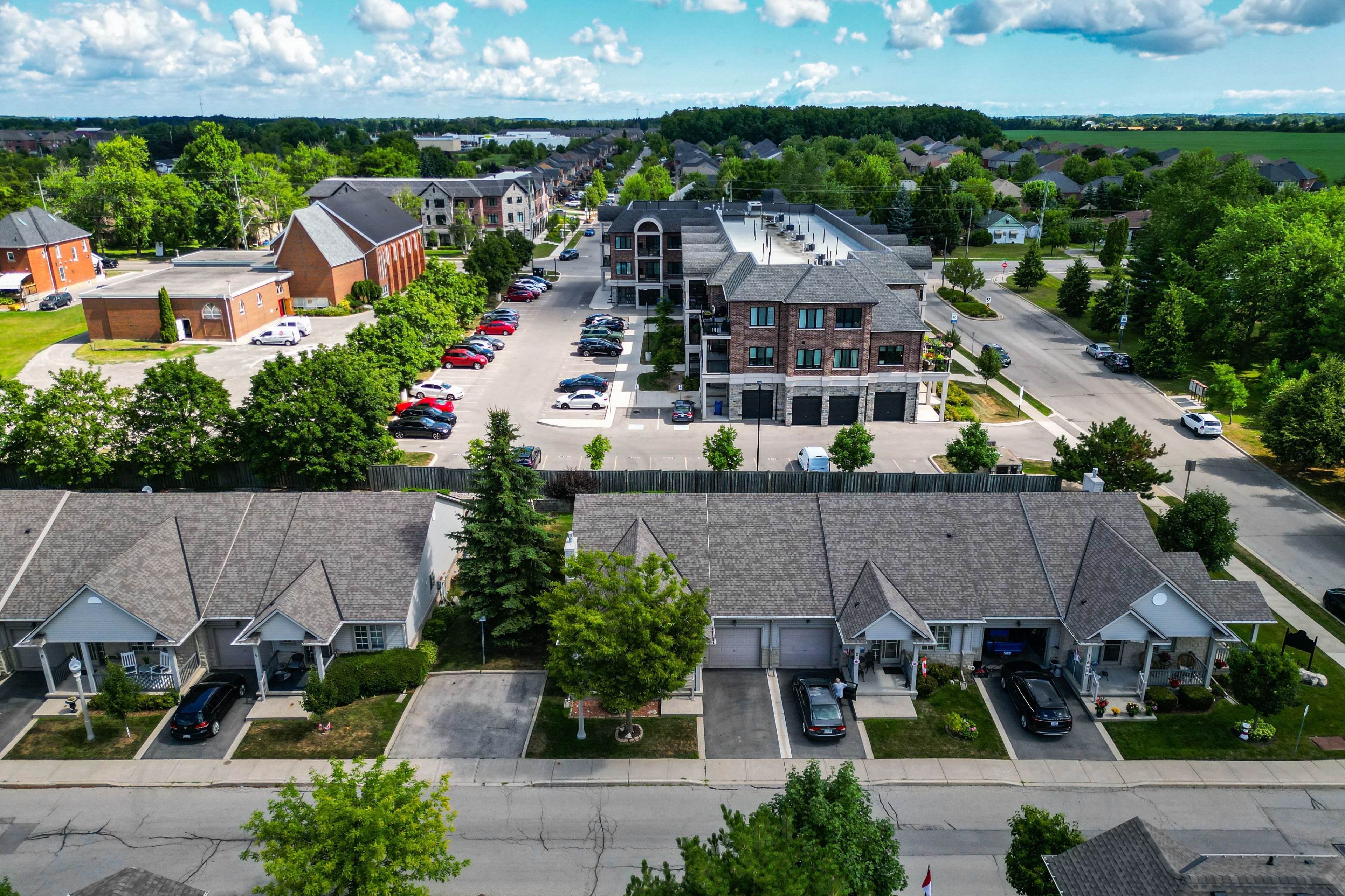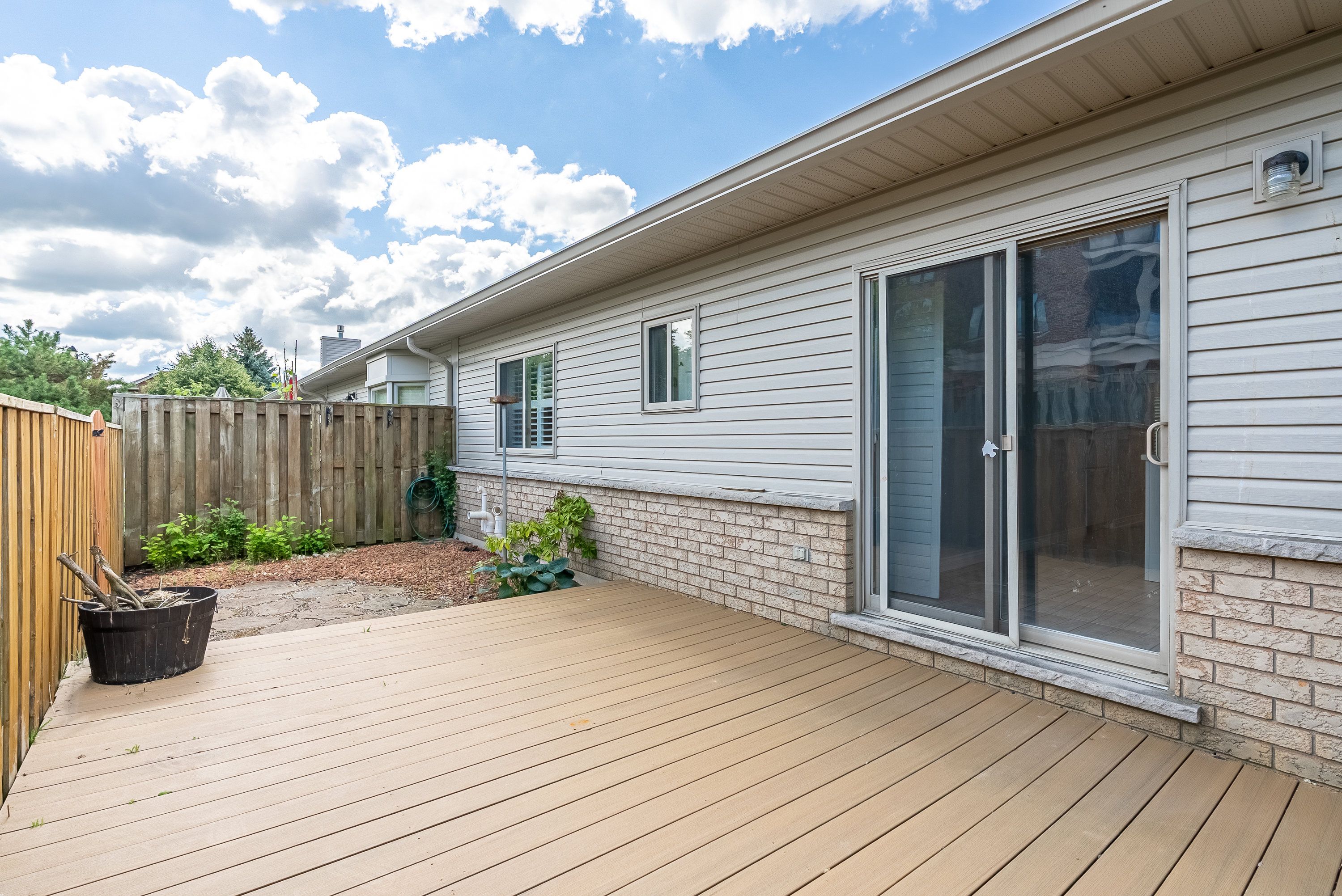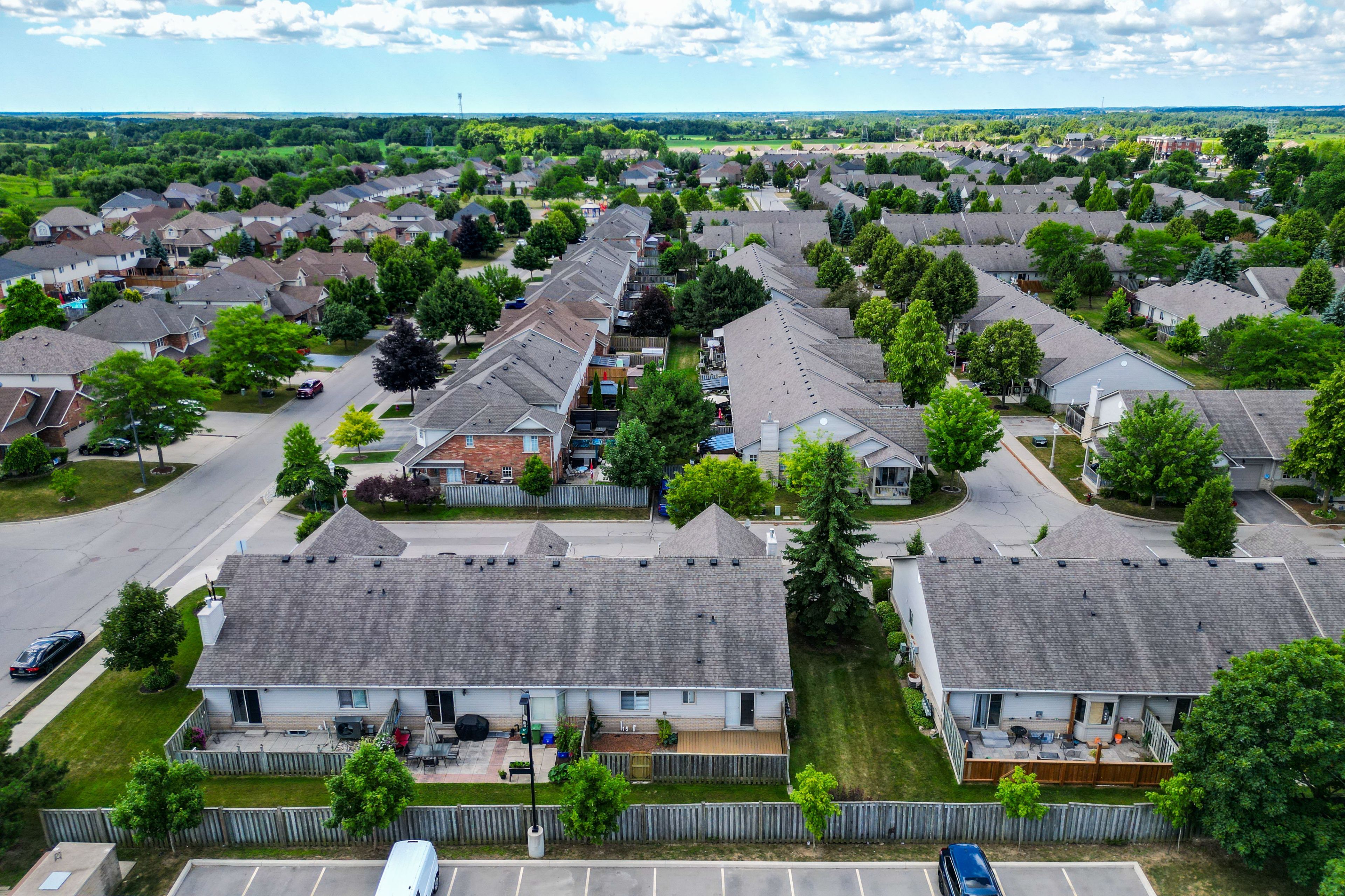 Welcome to this adult lifestyle complex. This well cared for property and spacious bungalow with over 1075 sq.ft. of main floor living space includes a bright, modern eat-in kitchen with walk-out to large deck and gardens, big living room dining room combo boasts elegant plank flooring, cozy gas fireplace and front foyer. Main floor bathroom plus big principal bedroom with walk-in closet and decidant 4 piece ensuite with soaker tub/shower. The basement includes a bedroom, bathroom, rec room, cold room, utilities and large workshop which could be easily converted. There is an attached garage with in-home access and storage shelves. Private driveway, a short walk to all amenities, shopping, pharmacy, Timmies, close to parks and recreation. Small town feel with all the necessities. Shows A+. Appliances, California shutters and more.