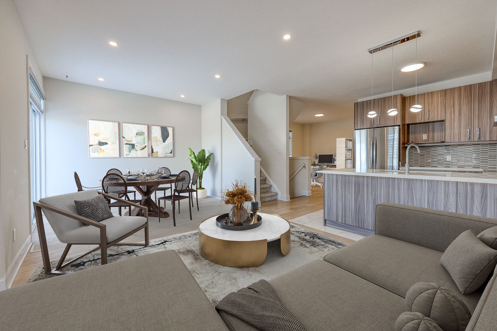 [[Welcome To This 2021 Built End Unit 3 Bedrooms & 4 Washrooms Townhouse]] | {{End Unit ThatFeels Just Like a Semi Detached}} | State of The Art Floor Plan With Ground Level Offers FlexRoom Offers Versatility For Home Based Office, Guest Room, Playroom, Home Gym | Ground Level2pc Powder & Access To The 1 Car Garage | Upper Floor Features Huge Living Room & DinningRoom and a Separate Family Room, Kitchen, Balcony, Laundry Room & 2pc Washroom | HighlyUpgraded Kitchen With Quartz Counter Tops, Stainless Steel Appliances, Taller Cabinets,Backsplash, Hanging Lights Over The Sink | Generous Size Family Room | Upper Level With 3Bedrooms and 2 Full Washrooms | Primary Bedroom With 4pc Ensuite and a Huge Walk-in Closet |Lots of Natural Light Throughout The House | 3 Parkings in Total, 2 On The Driveway and 1 CarGarage | Upgraded Zebra Window Covering Throughout The House |