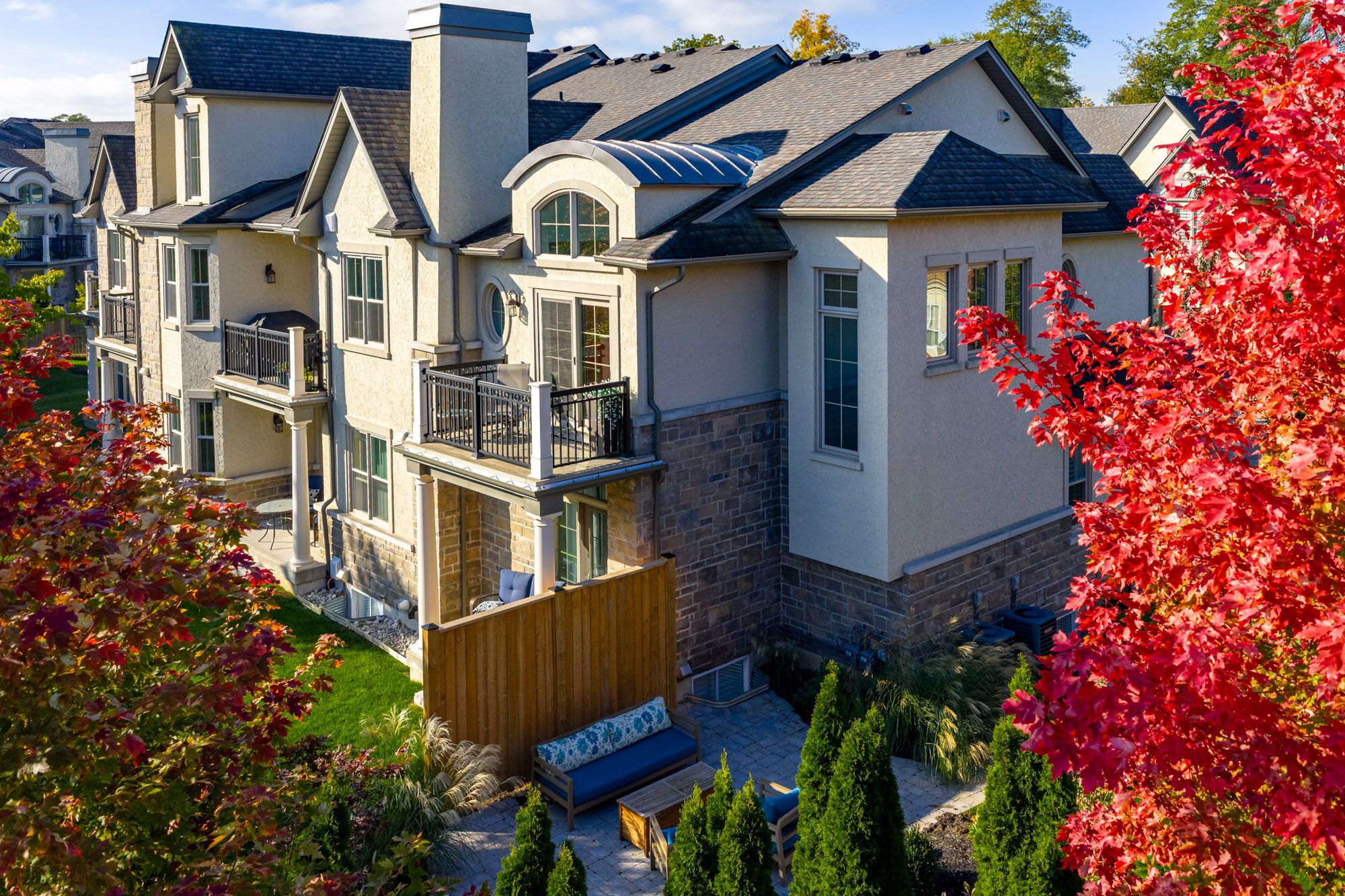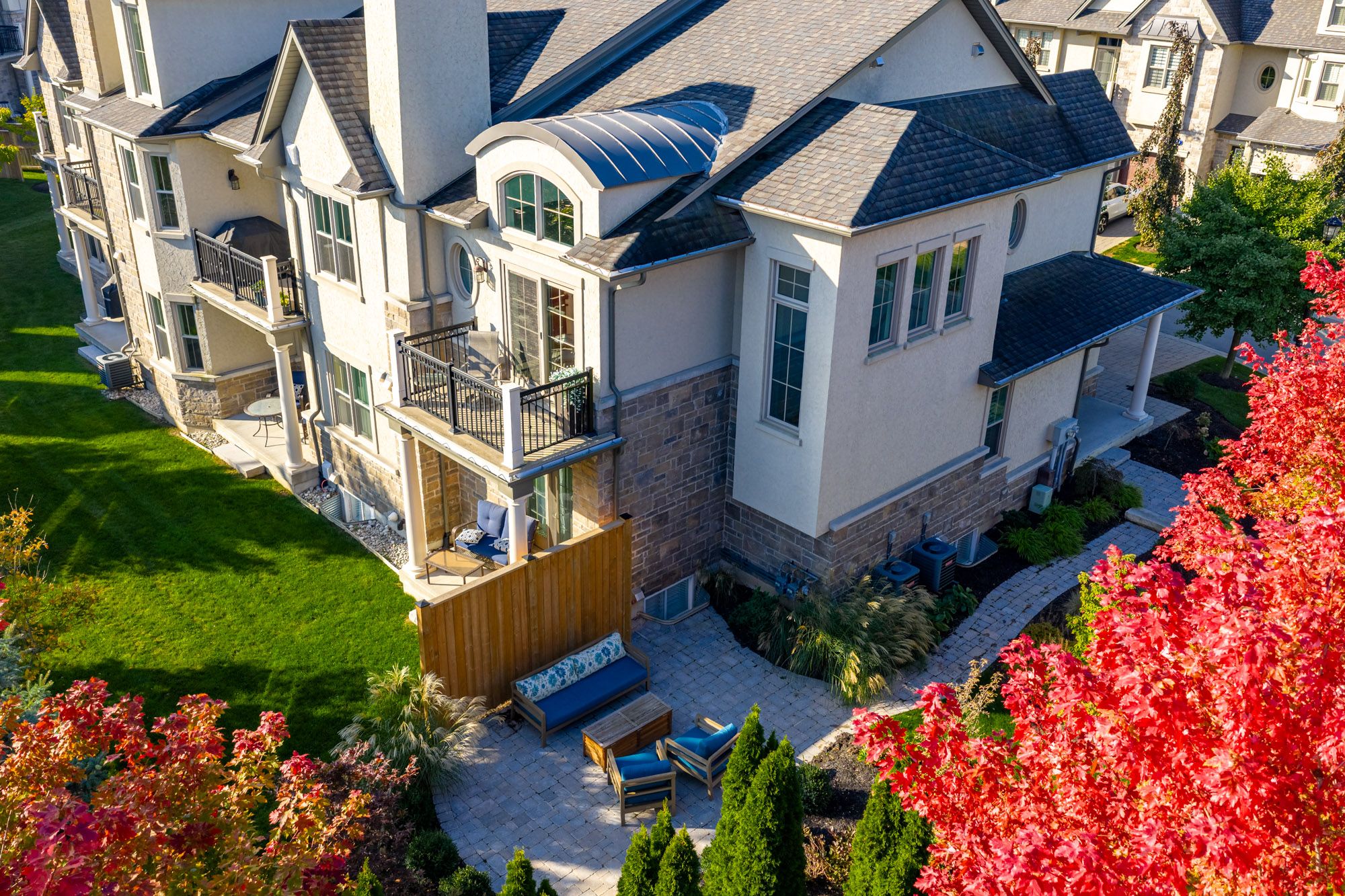Luxury Living in the Heart of Niagara-on-the-Lake! Welcome to 7 Aberdeen Lane S, an elegant executive townhome offering refined, low-maintenance living just steps from the charm of Old Town. Thoughtfully designed with timeless finishes and modern upgrades, this home delivers both style and convenience in one of Ontario's most sought-after communities.The bright open-concept main floor features hardwood flooring, high ceilings, and oversized windows that fill the space with natural light. The gourmet kitchen boasts premium cabinetry, quartz countertops, stainless-steel appliances, and a spacious island ideal for entertaining. Smart-home features, including automated blinds and lighting, add effortless comfort and everyday luxury. Upstairs, the generous primary suite offers a walk-in closet and spa-inspired ensuite with glass shower and double vanity. A second bedroom and full bathroom provide excellent space for guests or family. A truly standout feature is the expansive, private landscaped patio, the largest outdoor space in the complex and exclusive to this unit. Perfect for outdoor dining, entertaining, or relaxing in your own tranquil setting.The lower level offers flexible living space ideal for a home office, media room, or guest suite, complete with a full bathroom. Additional highlights include an in-home elevator, private garage with interior access, and low condo maintenance for easy living.All just steps from boutique shops, exceptional restaurants, world-class wineries, and the Shaw Festival Theatre.Experience sophisticated living and timeless Niagara-on-the-Lake charm at 7 Aberdeen Lane S.