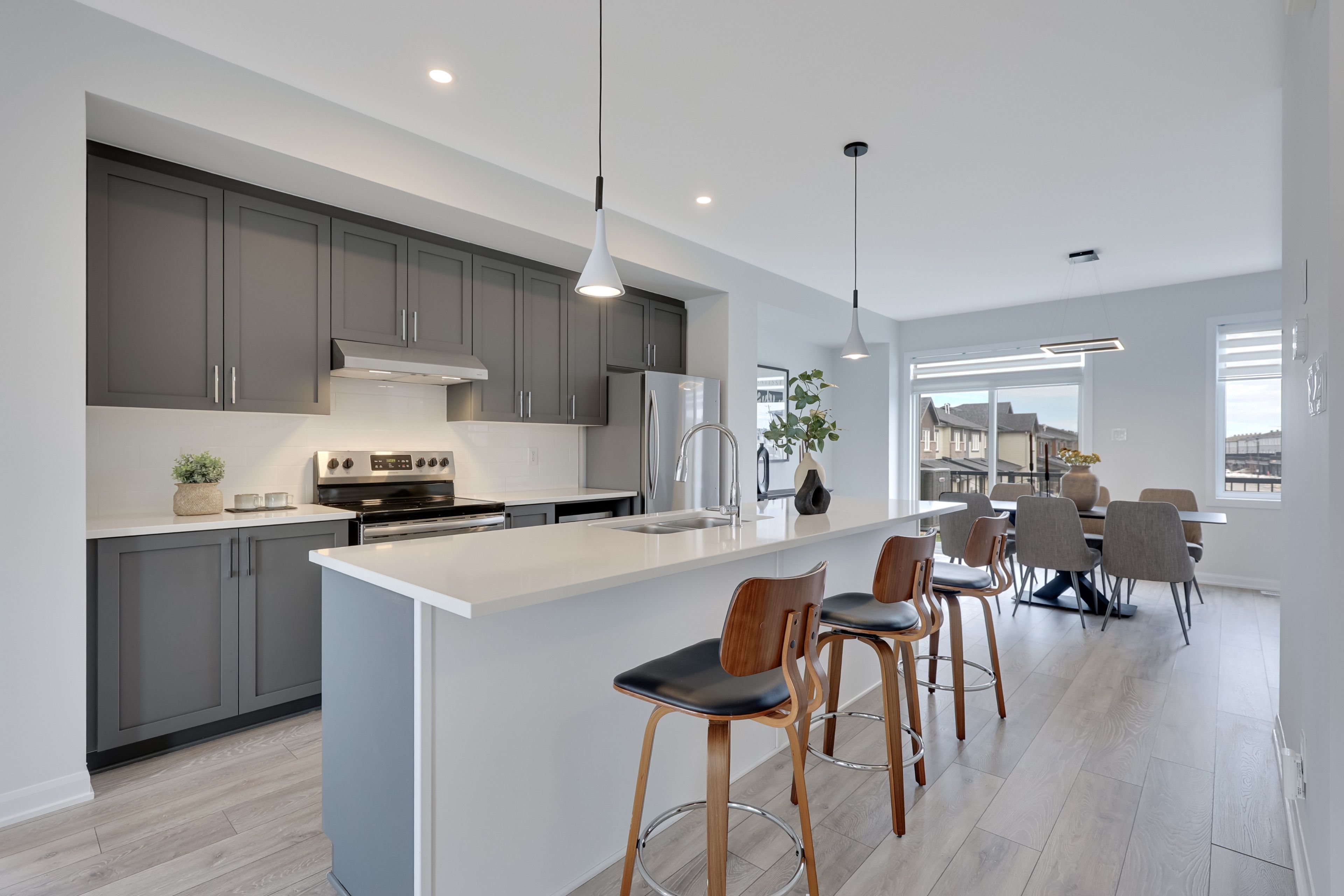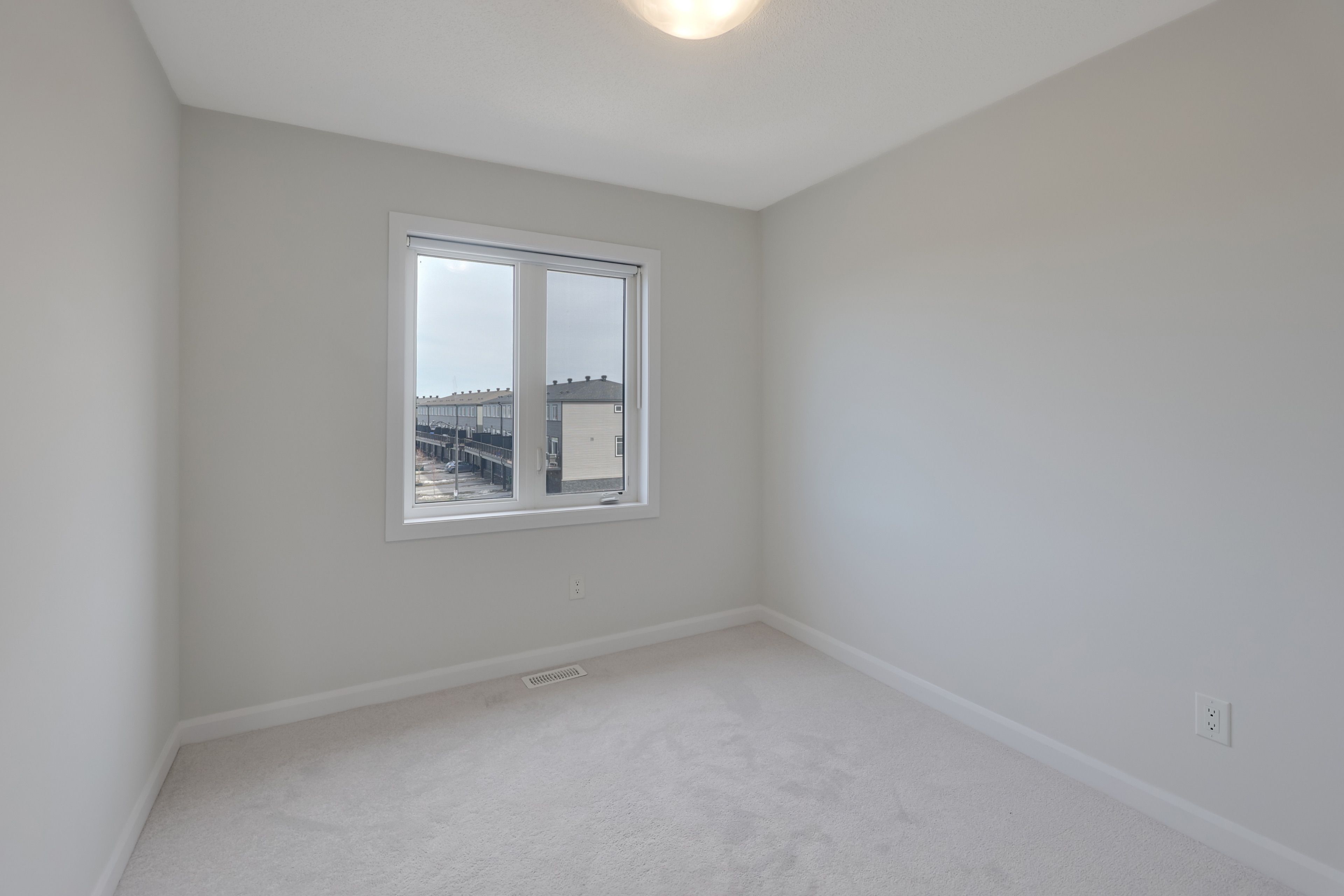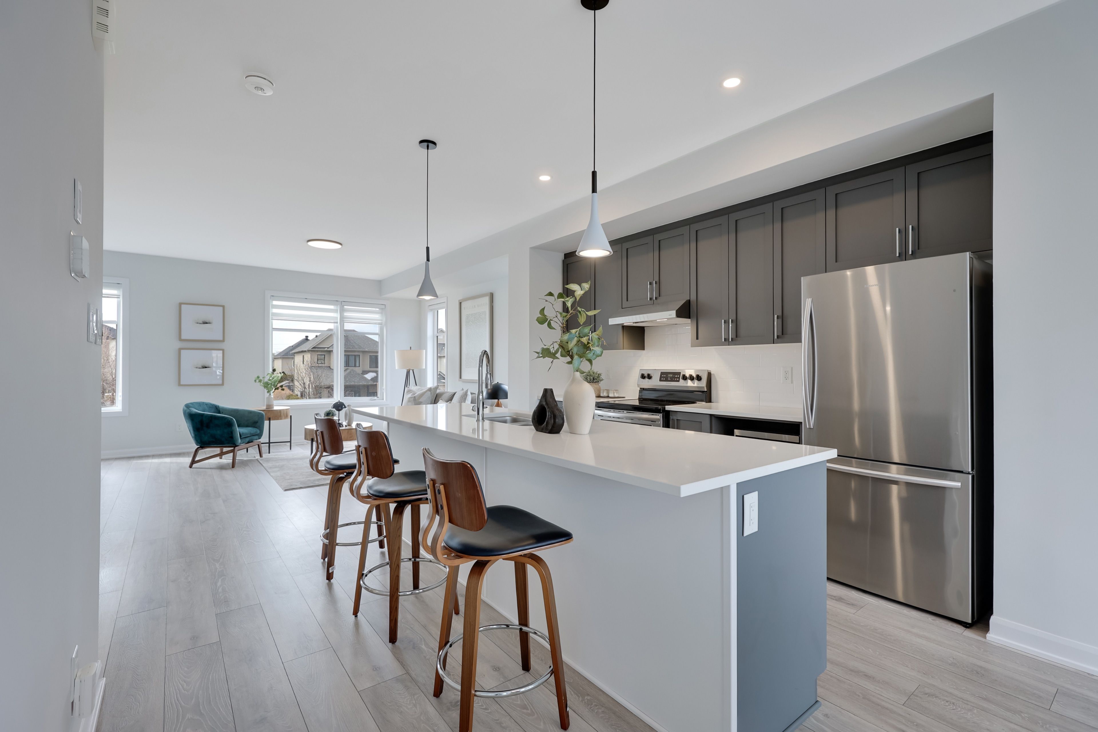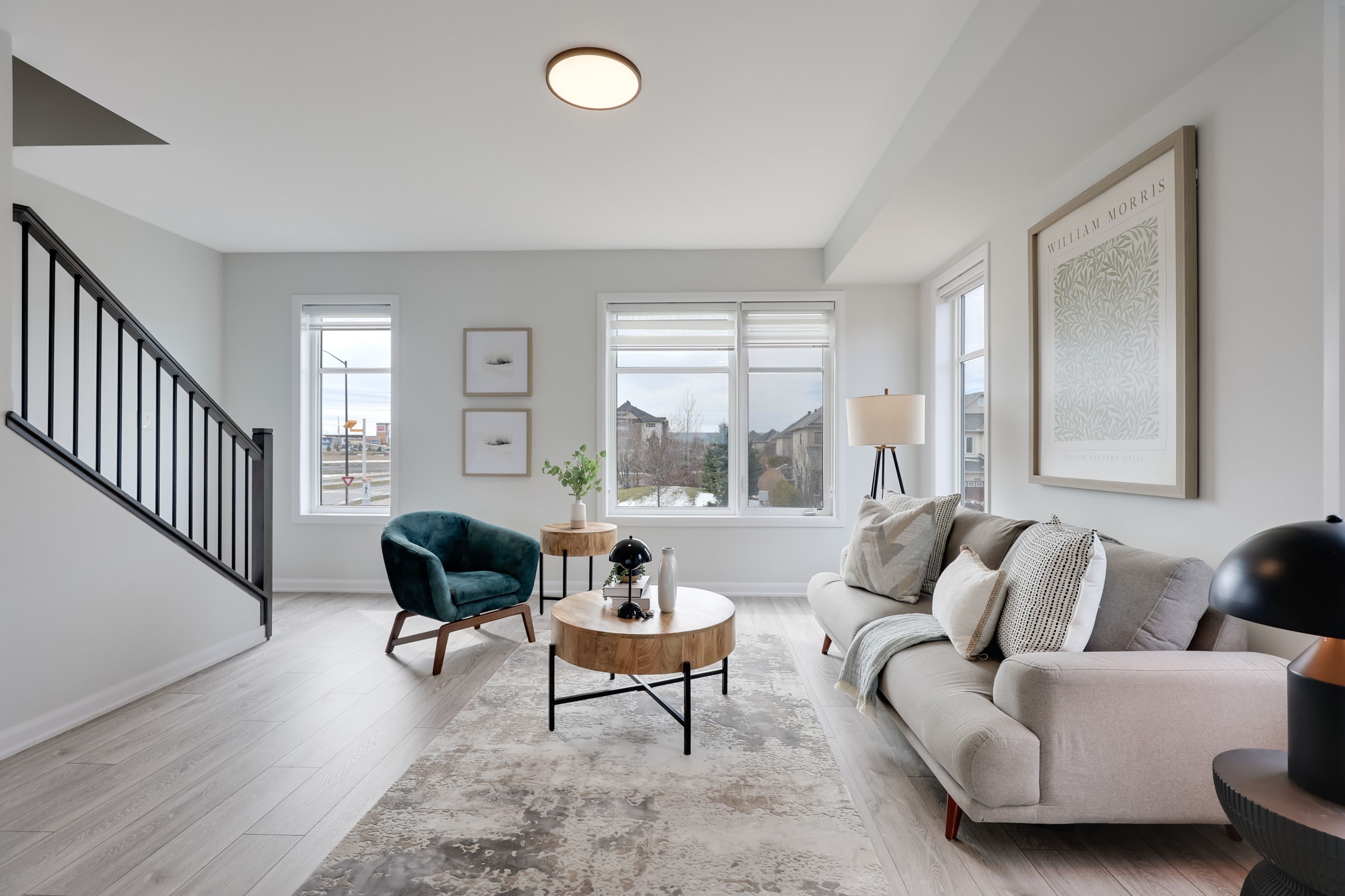 Discover a rare END-UNIT townhome with a DOUBLE GARAGE in one of Kanata's most desirable family communities. Offering over 1,800 sq ft of bright living space, this well-designed home features a rare through layout (NOT BACK-TO-BACK) that allows natural light to flow from both sides. The flexible 4 bedrooms design, ideal for growing families or those working from home. With dirveway parking for 4+ vehicles plus the double garage, this property offers convenience that is seldom found in townhomes. The home welcomes you with a wide front yard that adds curb appeal and usable outdoor space, with no private road fees or HVAC rental contracts. On the main level, the foyer leads to a bright and versatile bedroom with large windows, can also be used as a home business. The 2nd level features an open-concept living area designed for comfortable everyday living and entertaining. The spacious living and dining areas are filled with natural light and connect to a large private balcony, ideal for relaxing or hosting friends. The modern kitchen features quartz countertops, a large island with breakfast bar, and ample cabinetry for storage and functionality. Upstairs, the 3rd level offers 3 well-sized bedrooms, including a primary bedroom with a walk-in closet and a full ensuite, along with convenient an upper-level laundry room. At the back, the home enjoys its own green space (back width of 38.34 ft), offering more privacy and outdoor flexibility than many townhomes. Located in a quiet, family-friendly neighbourhood with excellent schools, the home is within walking distance to parks, transit, and cafés, and just minutes from shopping, recreation facilities, major tech employers, and Highway 417 for easy commuting.