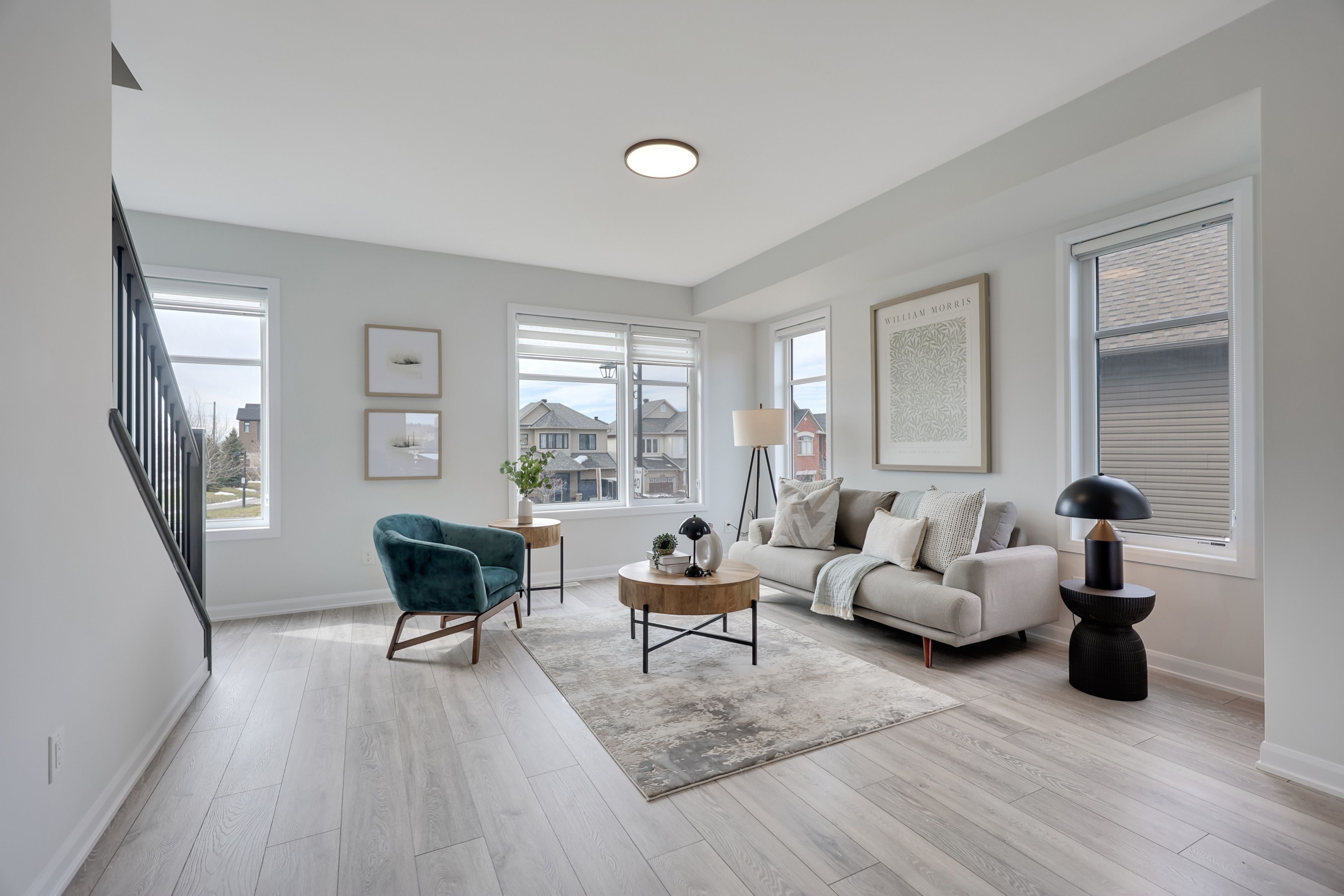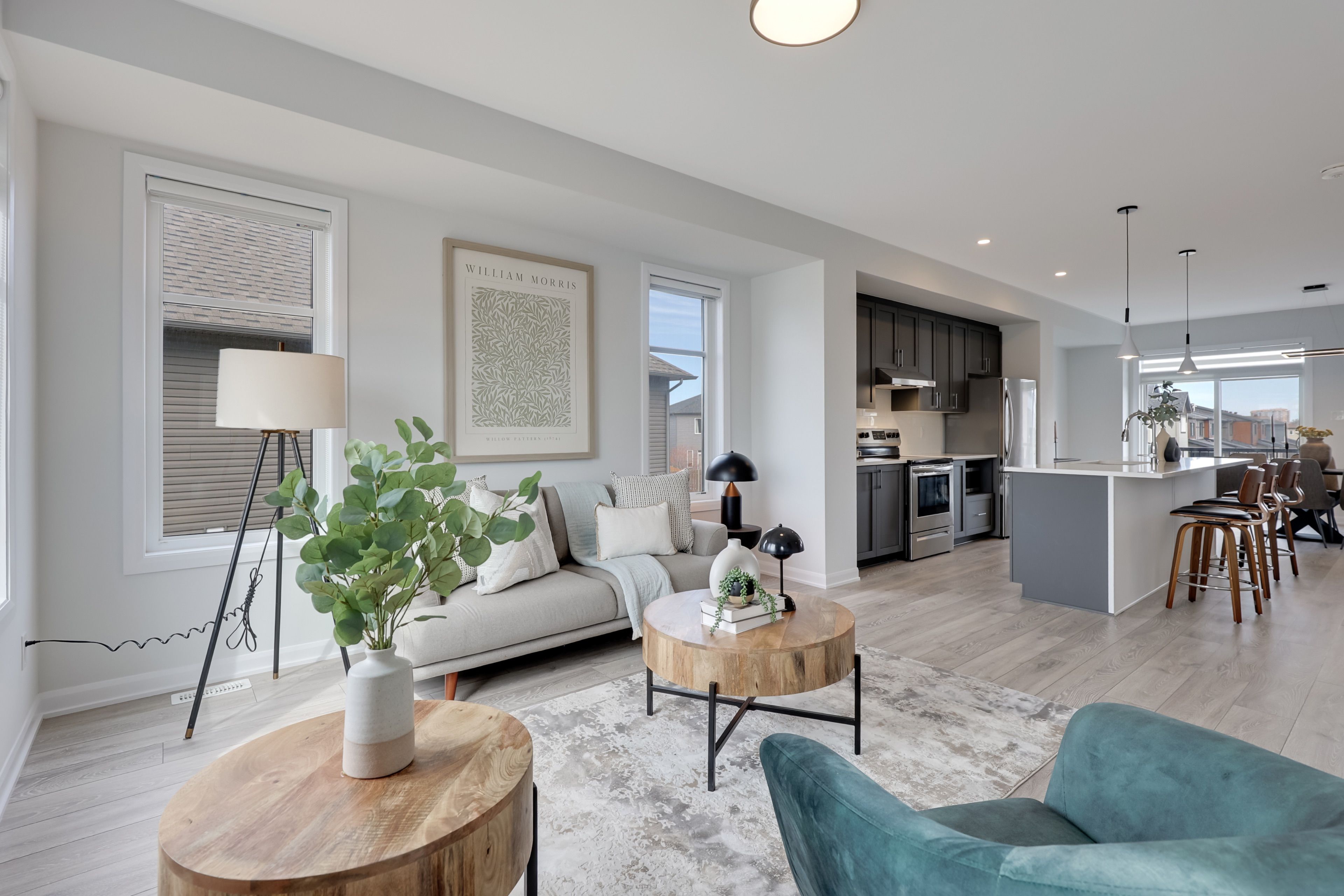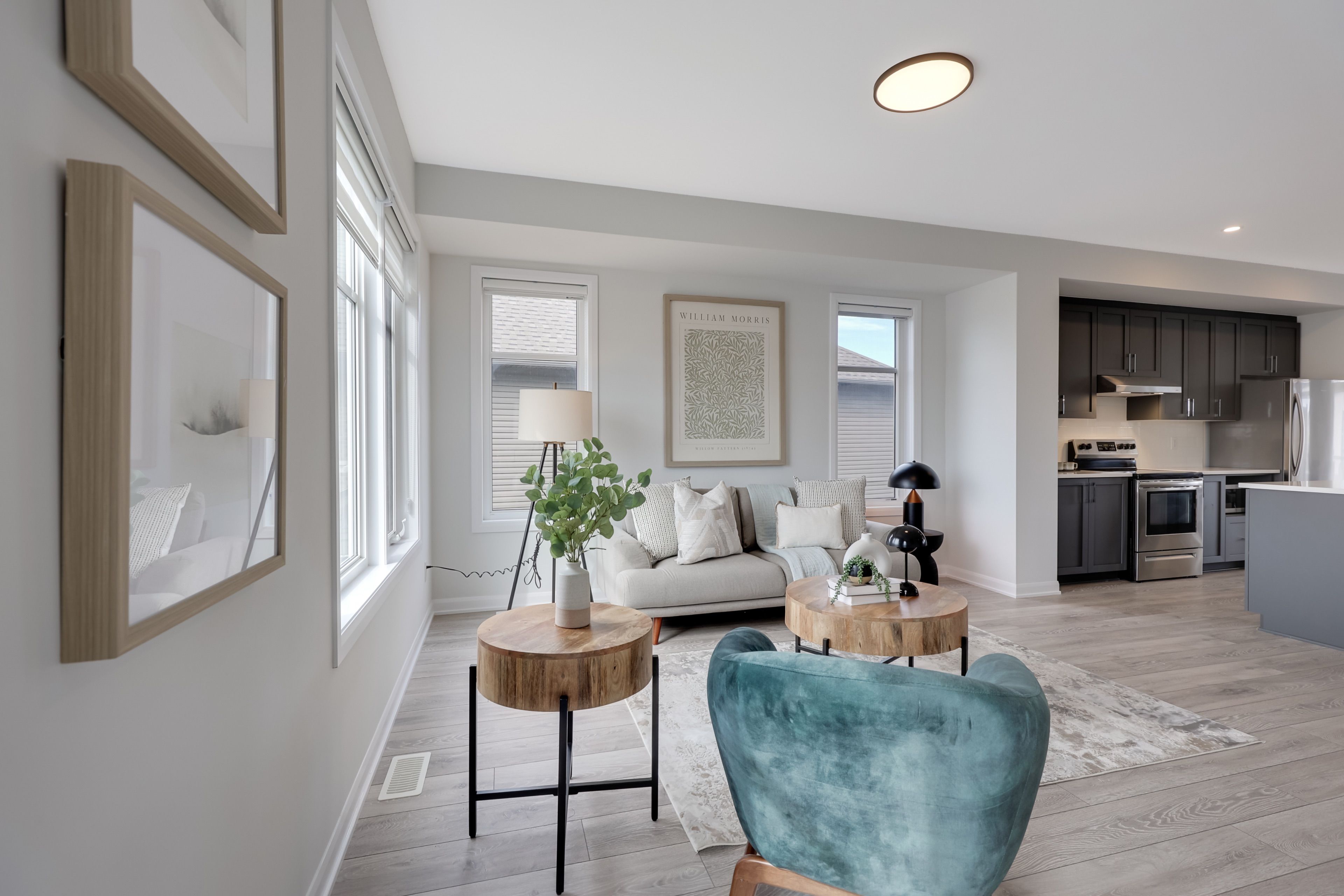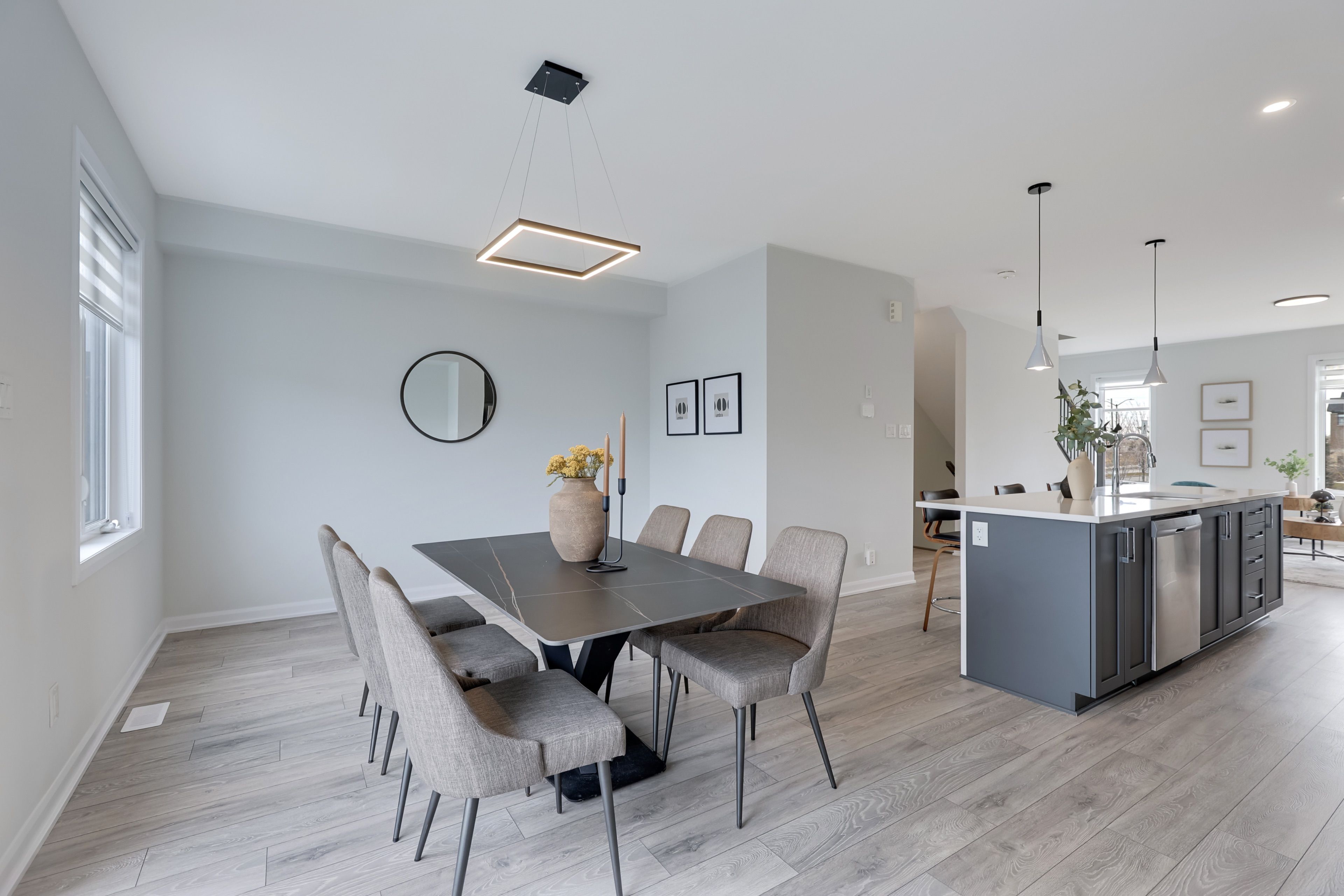 Discover a rare END-UNIT townhome with a DOUBLE GARAGE in one of Kanata's most desirable family communities. Offering over 1,800 sq ft of bright living space, this well-designed home features a rare through layout (NOT BACK-TO-BACK) that allows natural light to flow from both sides. The flexible 4 bedrooms design, ideal for growing families or those working from home. With dirveway parking for 4+ vehicles plus the double garage, this property offers convenience that is seldom found in townhomes. The home welcomes you with a wide front yard that adds curb appeal and usable outdoor space, with no private road fees or HVAC rental contracts. On the main level, the foyer leads to a bright and versatile bedroom with large windows, can also be used as a home business. The 2nd level features an open-concept living area designed for comfortable everyday living and entertaining. The spacious living and dining areas are filled with natural light and connect to a large private balcony, ideal for relaxing or hosting friends. The modern kitchen features quartz countertops, a large island with breakfast bar, and ample cabinetry for storage and functionality. Upstairs, the 3rd level offers 3 well-sized bedrooms, including a primary bedroom with a walk-in closet and a full ensuite, along with convenient an upper-level laundry room. At the back, the home enjoys its own green space (back width of 38.34 ft), offering more privacy and outdoor flexibility than many townhomes. Located in a quiet, family-friendly neighbourhood with excellent schools, the home is within walking distance to parks, transit, and cafés, and just minutes from shopping, recreation facilities, major tech employers, and Highway 417 for easy commuting.