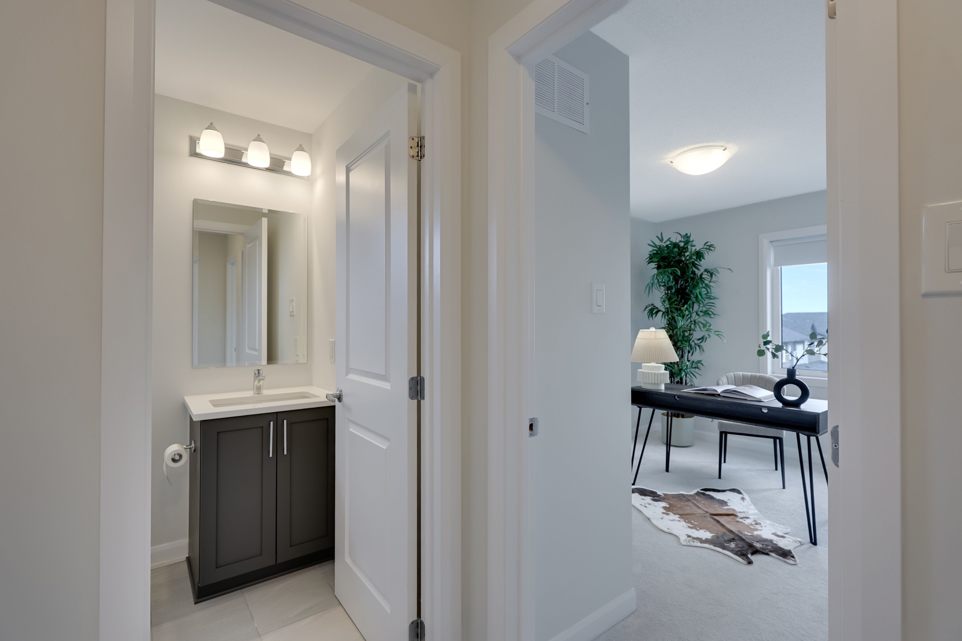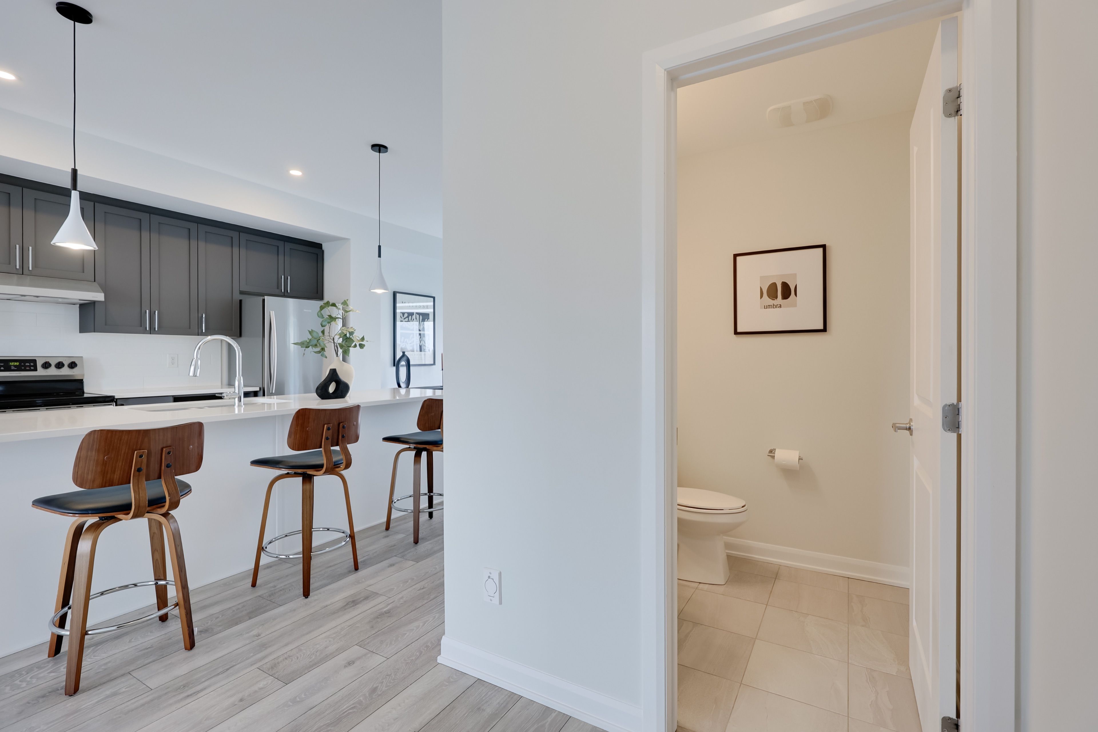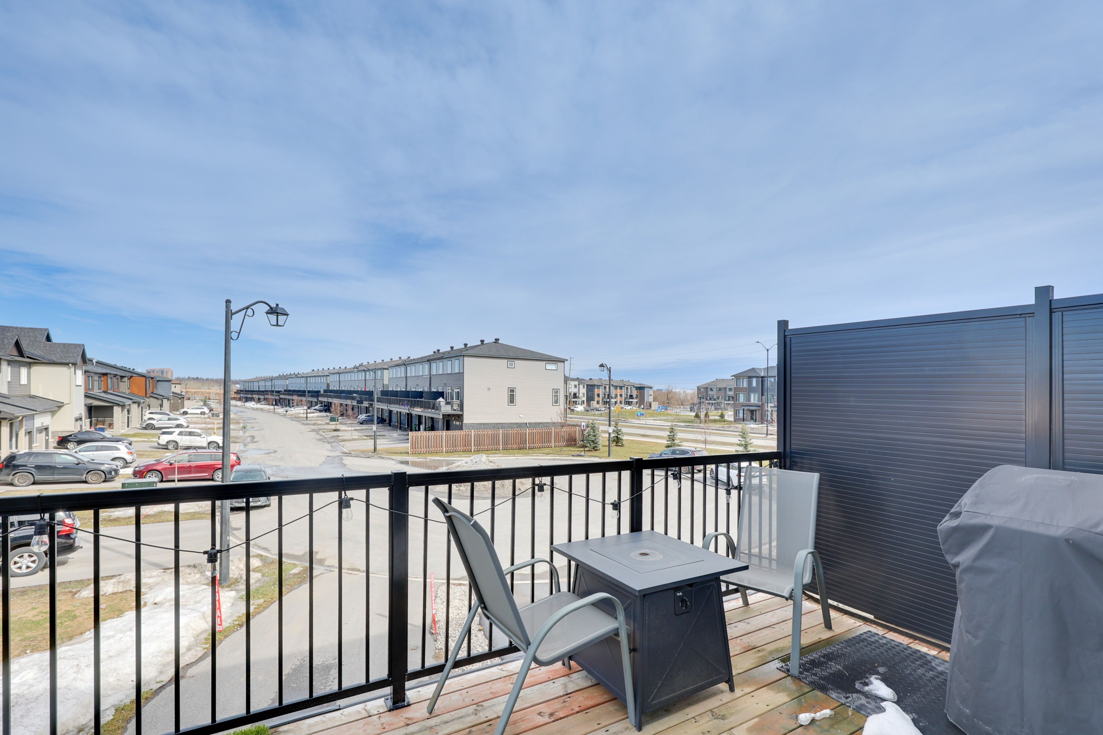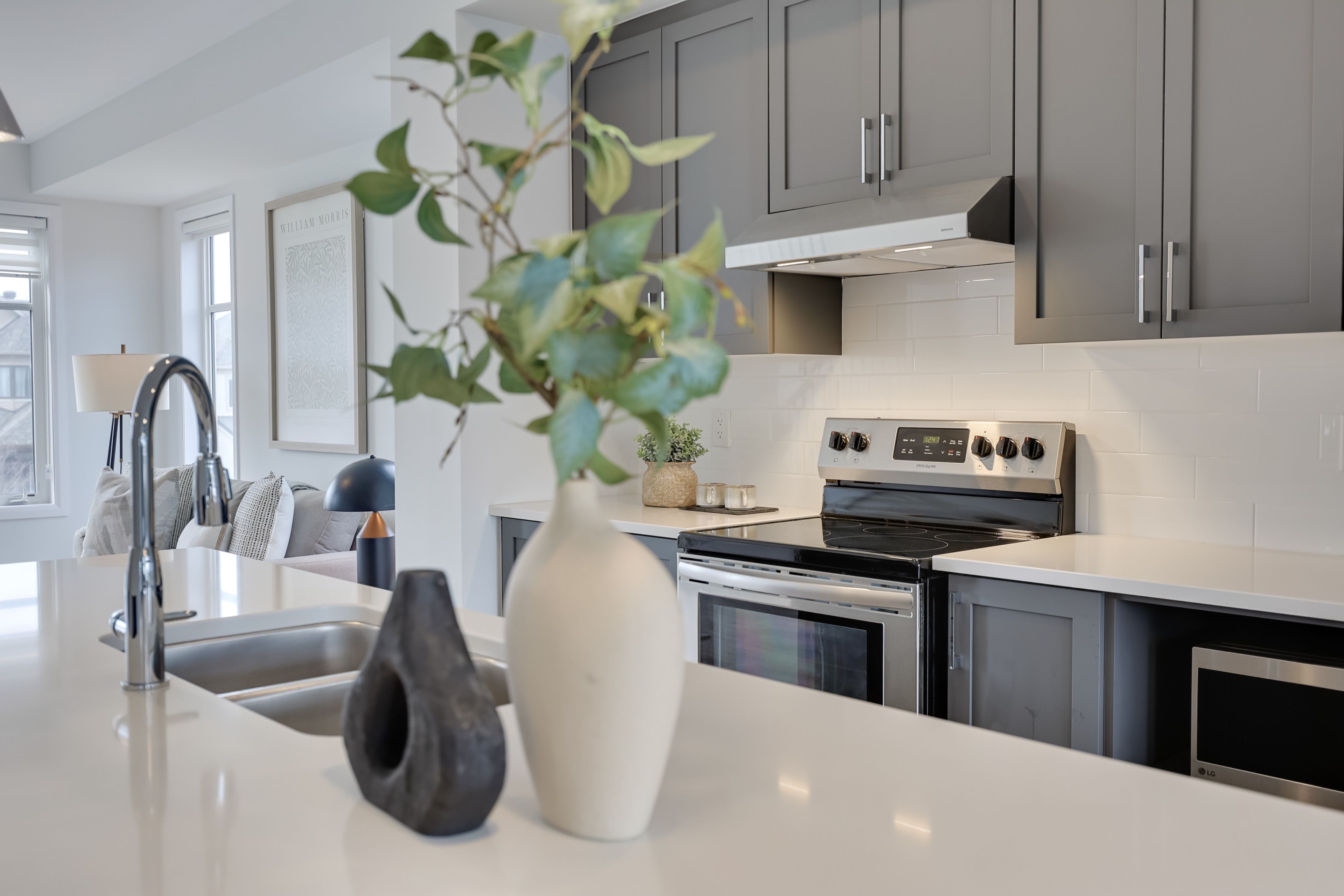 Discover a rare END-UNIT townhome with a DOUBLE GARAGE in one of Kanata's most desirable family communities. Offering over 1,800 sq ft of bright living space, this well-designed home features a rare through layout (NOT BACK-TO-BACK) that allows natural light to flow from both sides. The flexible 4 bedrooms design, ideal for growing families or those working from home. With dirveway parking for 4+ vehicles plus the double garage, this property offers convenience that is seldom found in townhomes. The home welcomes you with a wide front yard that adds curb appeal and usable outdoor space, with no private road fees or HVAC rental contracts. On the main level, the foyer leads to a bright and versatile bedroom with large windows, can also be used as a home business. The 2nd level features an open-concept living area designed for comfortable everyday living and entertaining. The spacious living and dining areas are filled with natural light and connect to a large private balcony, ideal for relaxing or hosting friends. The modern kitchen features quartz countertops, a large island with breakfast bar, and ample cabinetry for storage and functionality. Upstairs, the 3rd level offers 3 well-sized bedrooms, including a primary bedroom with a walk-in closet and a full ensuite, along with convenient an upper-level laundry room. At the back, the home enjoys its own green space (back width of 38.34 ft), offering more privacy and outdoor flexibility than many townhomes. Located in a quiet, family-friendly neighbourhood with excellent schools, the home is within walking distance to parks, transit, and cafés, and just minutes from shopping, recreation facilities, major tech employers, and Highway 417 for easy commuting.