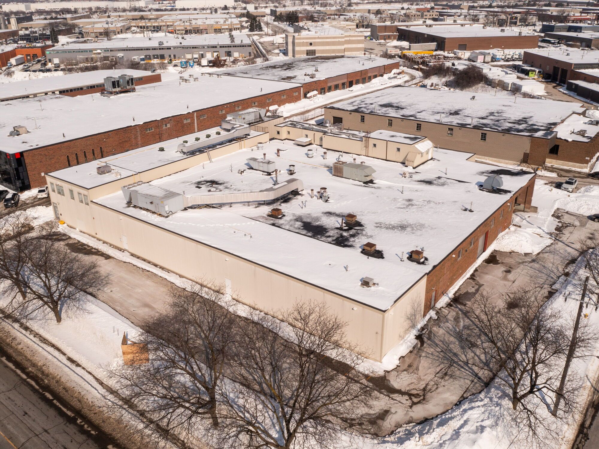 This freestanding industrial building is BRC & HACCP certified with notable food-grade upgrades such as epoxy floors, drains, a QA Lab, and a small cooler. Ideally located with easy access to numerous amenities and transit options and conveniently close to Highways 407 & 400, situated on a corner lot with multiple access points. The building offers a clear height ranging from 16' to 22', with 3 truck-level doors equipped with levelers and 1 drive-in door. The roof is only 2 years old, and the asphalt is in excellent condition equipped with 32 parking stalls. The facility includes approximately 37,592 Total SF, 2,700 SF of wheelchair-accessible office space and approximately 33,179 SF warehouse area. The power supply is 800 amps.