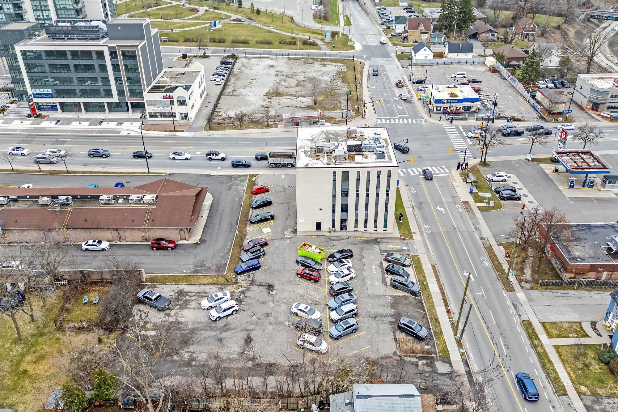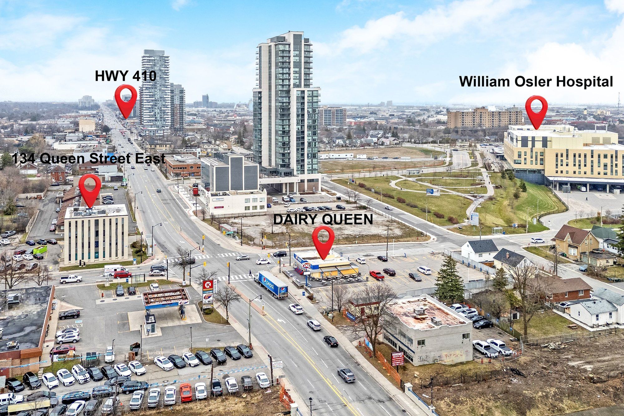 - Directions: NE corner of Queen St E & Centre St N/West of Kennedy Rd/East of Main St