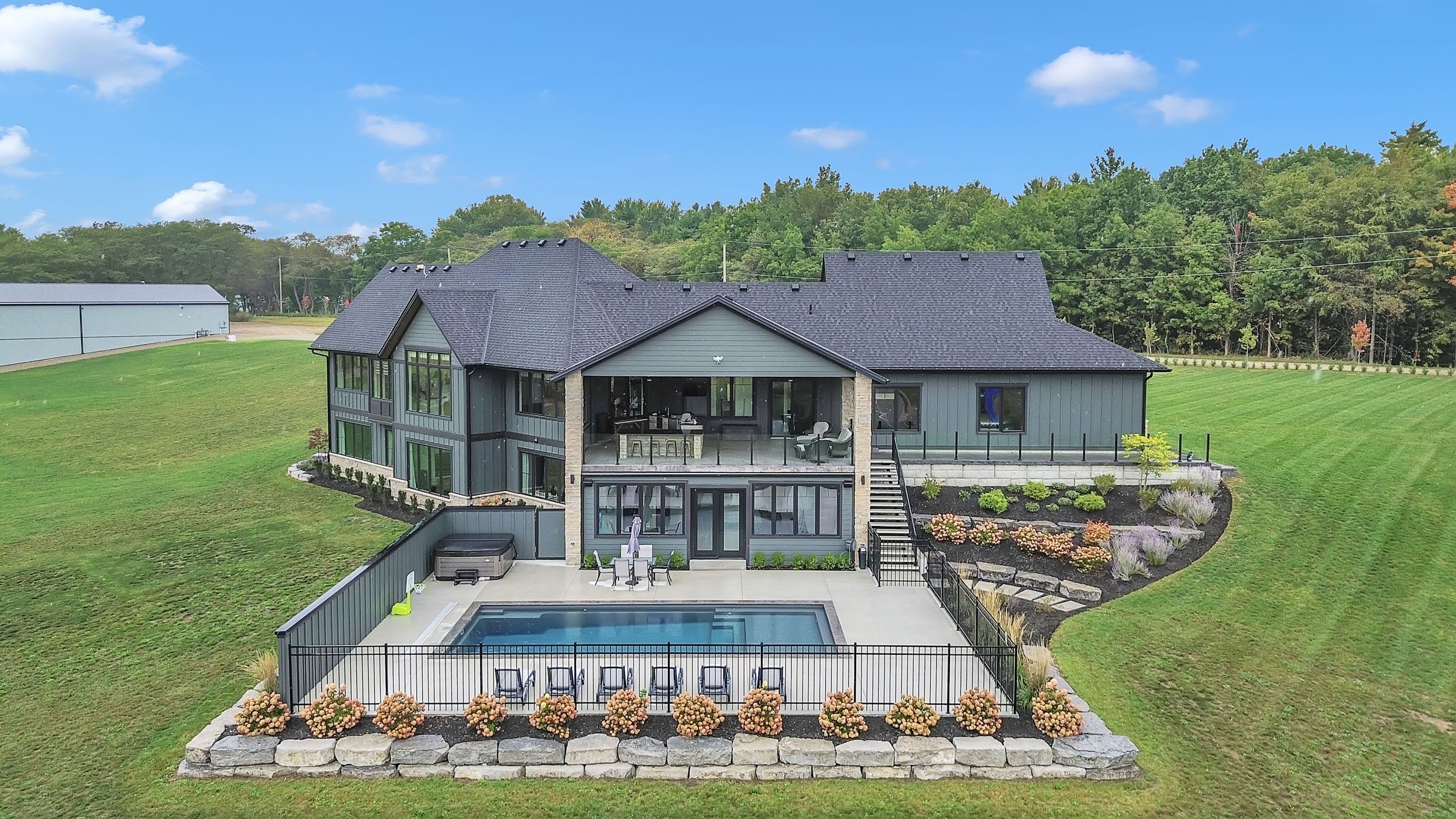 Rare opportunity to own 203.54 acres in Bayham, including a custom 2022-built 2,500 sq. ft. home, full walk-out basement, main-floor primary wing with 6-piece ensuite, and three kids bedrooms with scenic bush and field views. Resort-style amenities include a heated saltwater pool, 8-person hot tub, and outdoor kitchen. The 120 x 50 steel shop up & down, features 3 roll-up doors, 12,000sq/ft total space, in-floor heat, and 400-amp service. The farm offers systematically tiled workable fields, mixed sandy loam and clay soils, and kilometers of quad/hiking trails through the bush and open areas. Fiber internet, stocked pond, and backup generator complete this multi-use property ideal for luxury living, farming, and recreational pursuits.