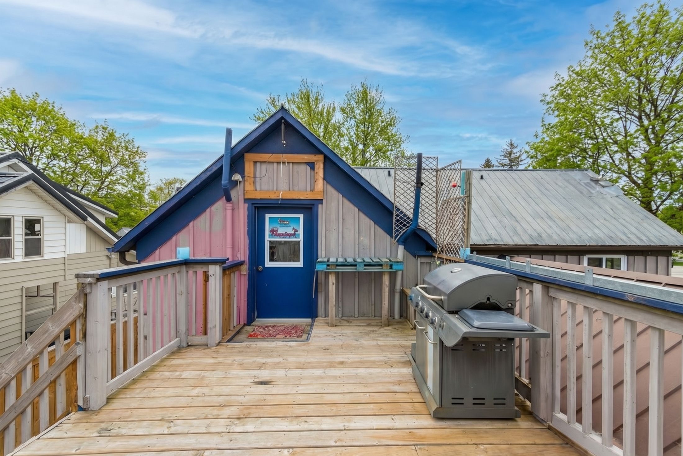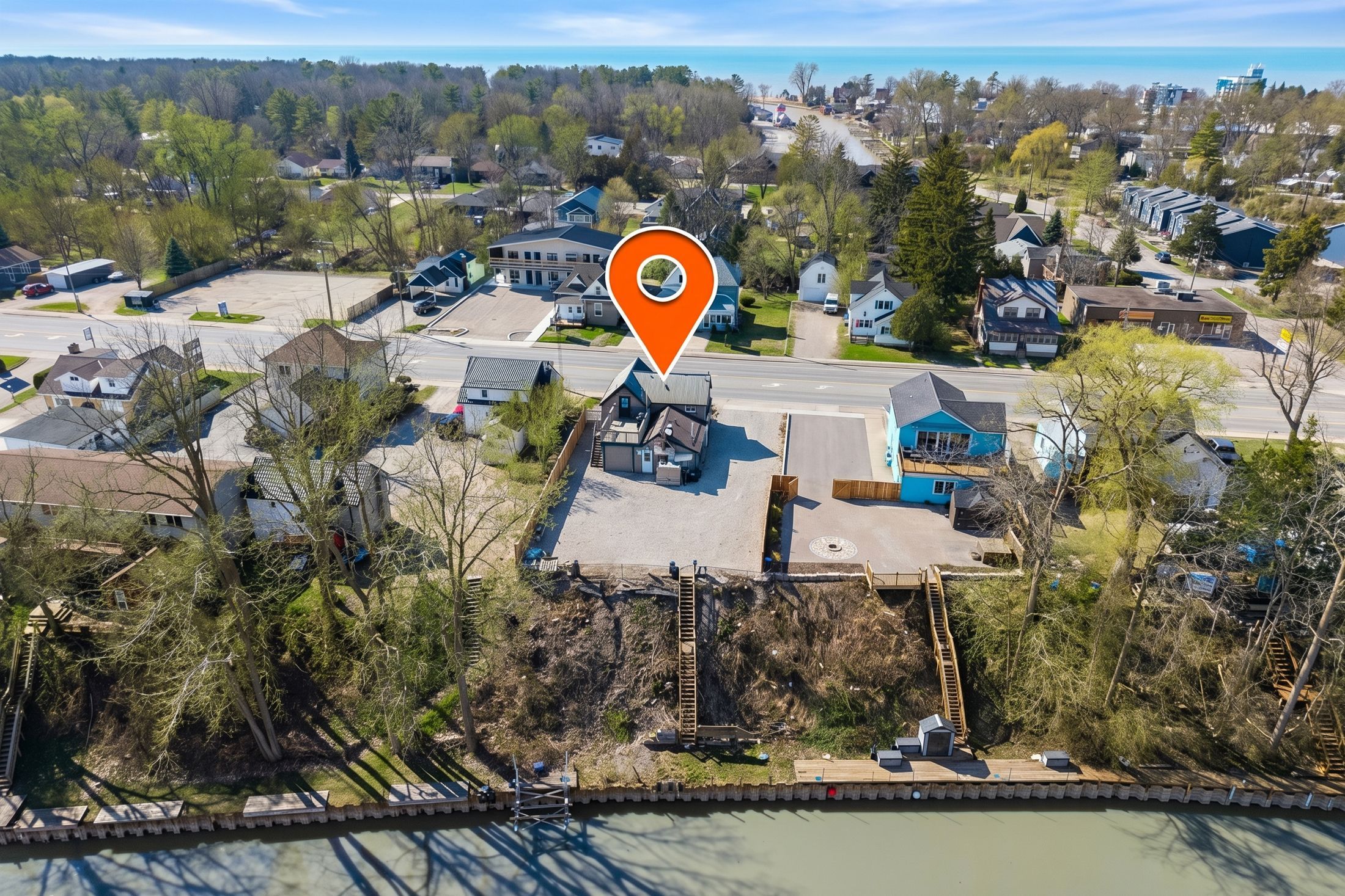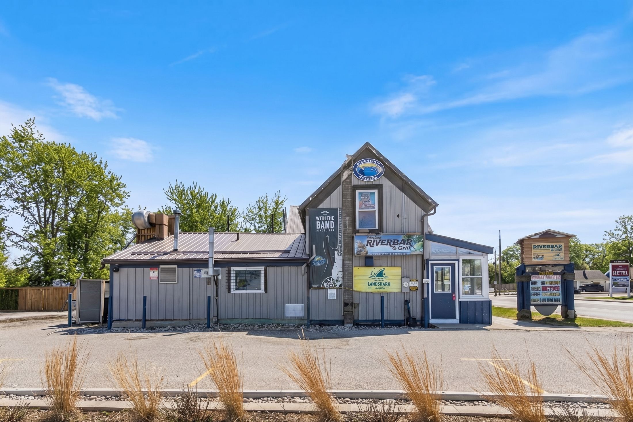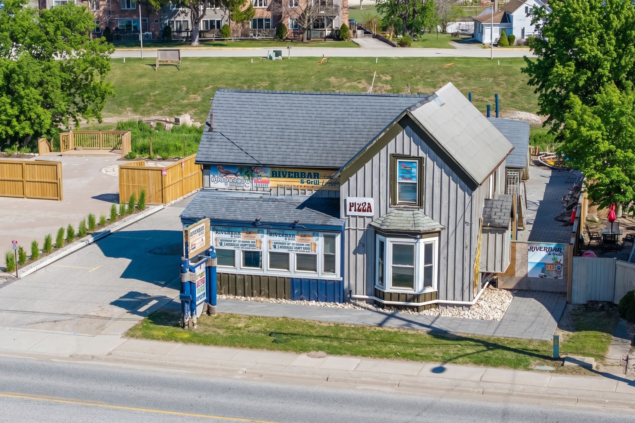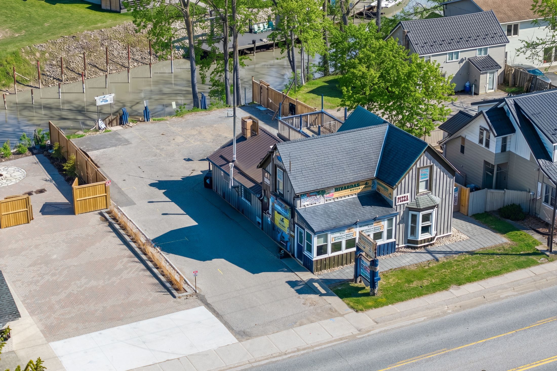 RARE RIVERFRONT COMMERCIAL OPPORTUNITY IN THE HEART OF GRAND BEND | 68.4 FT OF BOAT PRIVATE DOCKAGE | RESTAURANT/RETAIL SPACE + RESIDENTIAL APARTMENT! Welcome to 26 Ontario Street South, a truly exceptional mixed-use property in one of Ontario's fastest growing year round beach destinations. Perfectly positioned just steps from the beach with approximately 68+ feet of private river frontage and boat docking, this is your chance to establish-or expand-your dream business in an iconic, high-traffic location. The main level offers approximately 620 sq ft of restaurant / bar / retail space, previously licensed for 40 patrons, complete with men's and women's washrooms and a commercial kitchen (equipment included AS-IS). The kitchen was updated in 2018, featuring a NEW walk-in cooler and a new 5.5-ton A/C & heat pump, with forced-air gas heating on the restaurant level. There's also a partially completed outdoor patio, plus additional exterior space presenting an untapped opportunity for future expansion and enhanced patio licensing. Above the commercial space is a self-contained residential apartment or office, with its own private entrance, full residential kitchen, 3-piece bathroom, and an outstanding 21' x 11' sun deck overlooking the river. This would be an inspiring place to live, work, or host & could offer some premium AirBnB / short term rental income. The upper unit is heated with a newer A/C & heat pump, & the 360 virtual tour will show you the apartment (for restaurant, just refer to photos). Whether you envision a bar, restaurant, café, retail boutique, or a live-work waterfront business, this established location offers visibility, lifestyle appeal, and long-term upside in a community that continues to thrive beyond the summer months. With on site parking + enough dockage for 2 boats & a jet ski + the residential unit, this site can earn! PROPERTY IS BEING SOLD AS-IS / WHERE-IS: Inquire with your Realtor for further details and viewing opportunities.