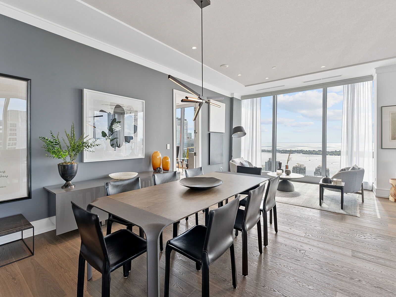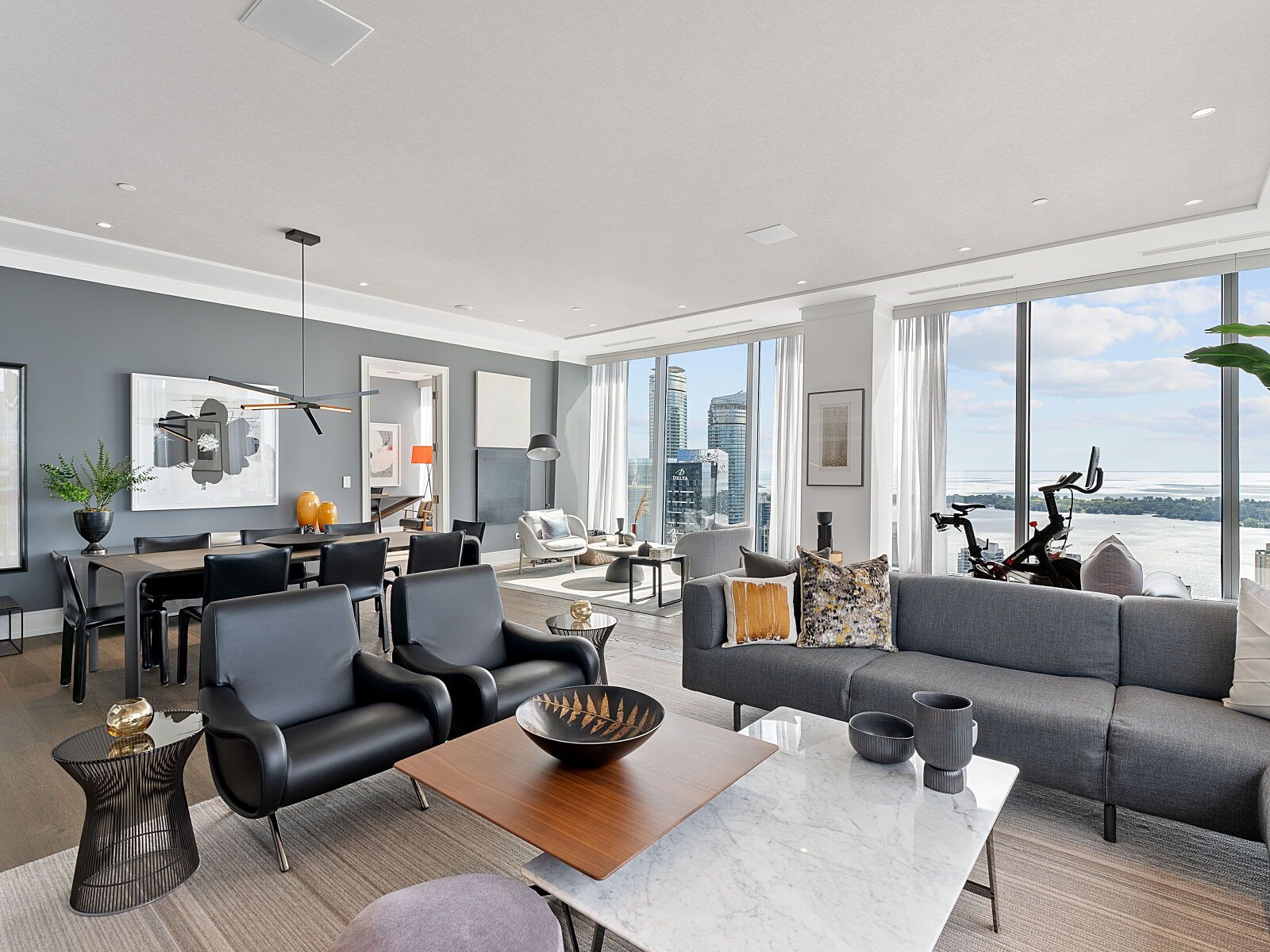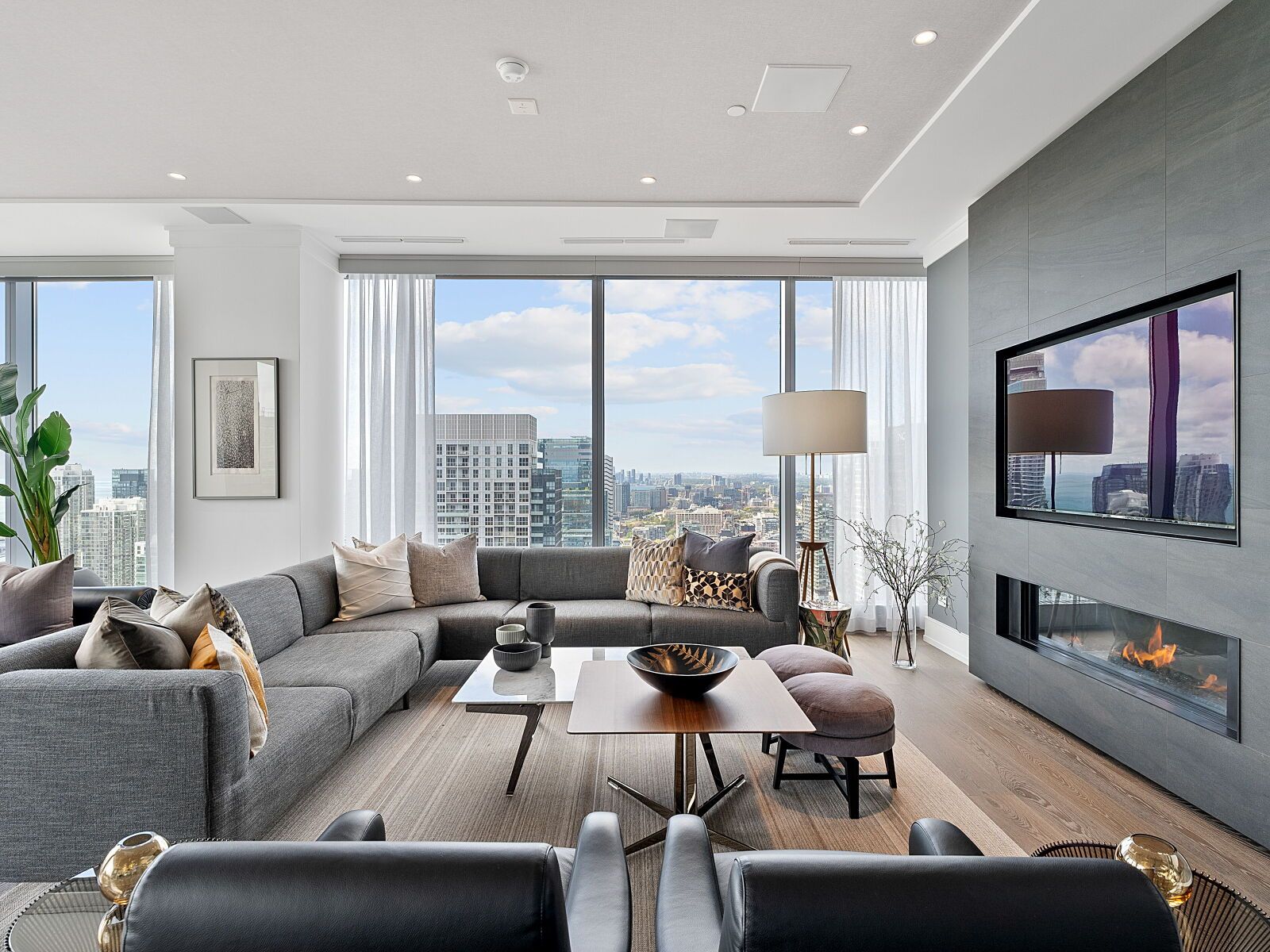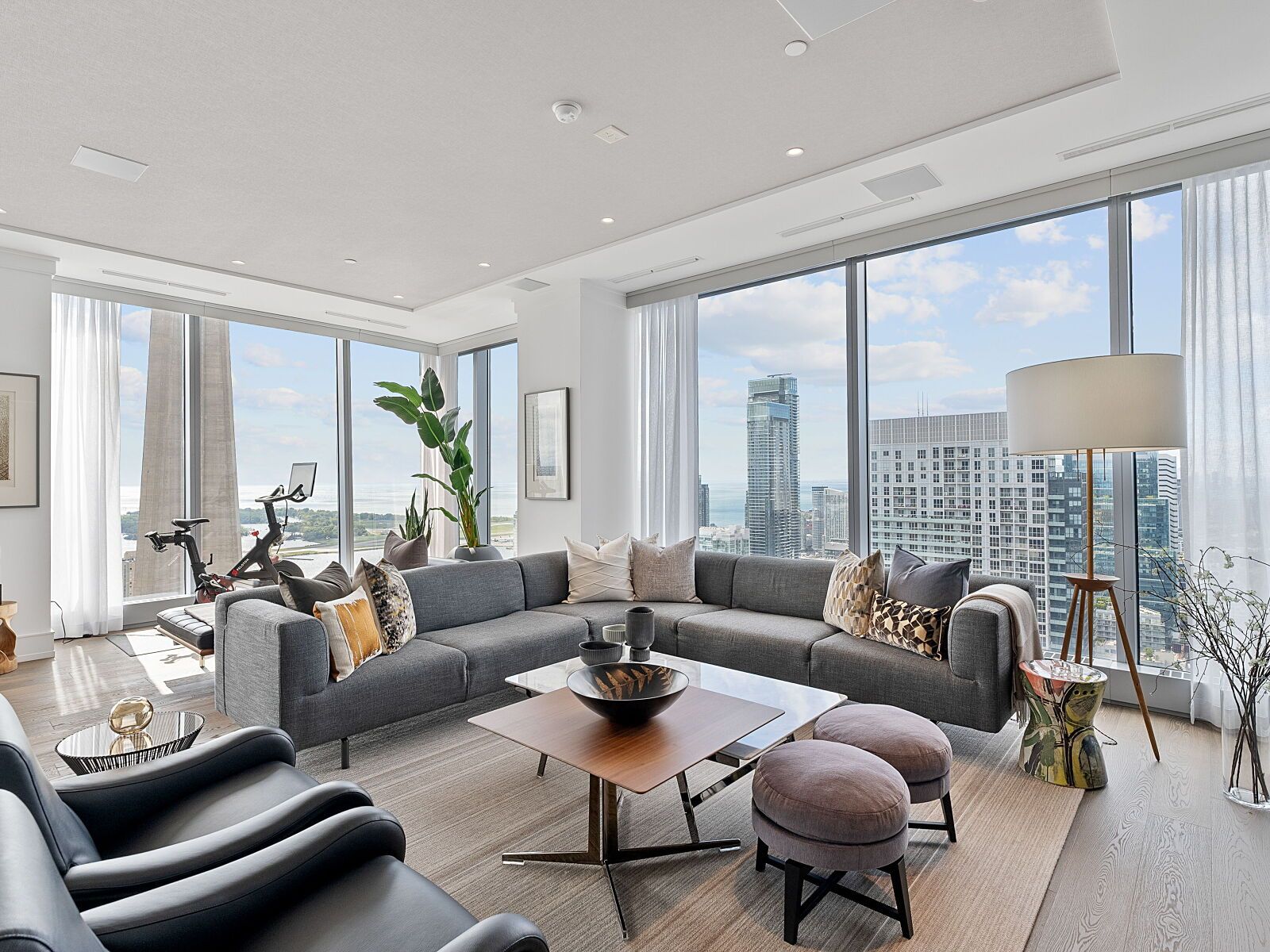 The Residences at the Ritz-Carlton Suite 4006 is a complete Turn Key custom built suite by Battiston Construction & Interior Designed by Michael Lamble with the highest quality finishes & profiency. Elegant Downsview kitchen showcases B/I Meile appliances: Panel Fridge, Panel Freezer, Induction stove/range, Miele Microwave, Oven & Wine Bar & extensive B/I cabinetry. Solid wood 4-hinge doors throught, beautiful moldings, with textured ceilings in foyer & living/dining rooms, Slate flooring in foyer, Slate panelled fireplace & Flat Screen TV in living room & 7" 3/4" Oak hardwood floors throughout. No expense spared creates this elegant/opulent dream home in the sky/unobstructed panoramic views from every room. Elegantly finished Zen like flow will leave your client speechless. Property is being sold including all furniture, light fixtures, floor covering, window covering, SAVANT system: powers blinds, audio & Lutron lighting. (2) B/I flat panel TVs, Miele W/D. All B/I appliances in kitchen. Exclusions: All personal/decorative accessories on/and about the suite, all art on walls and (1) lamp in living room (next to F/P)