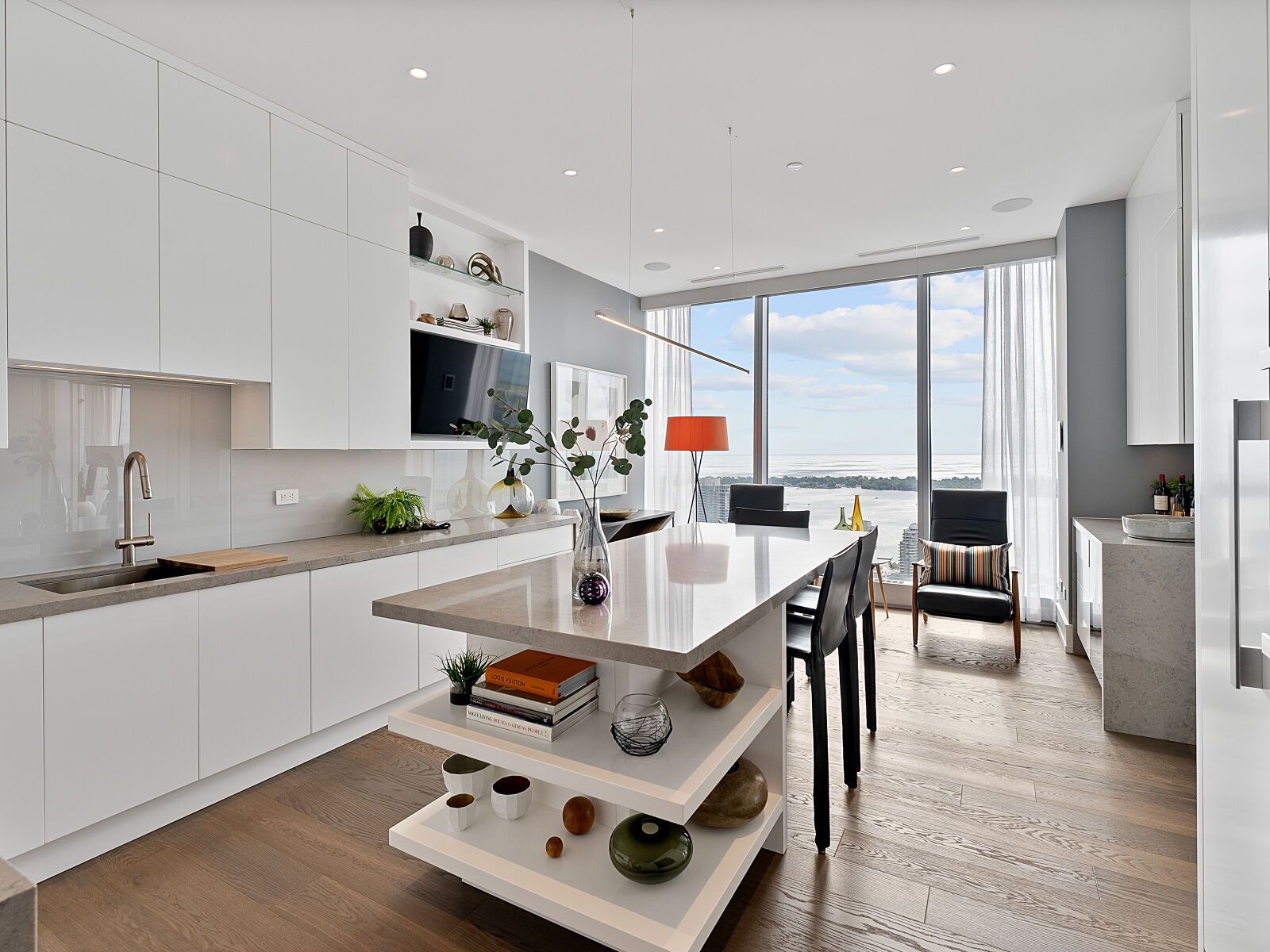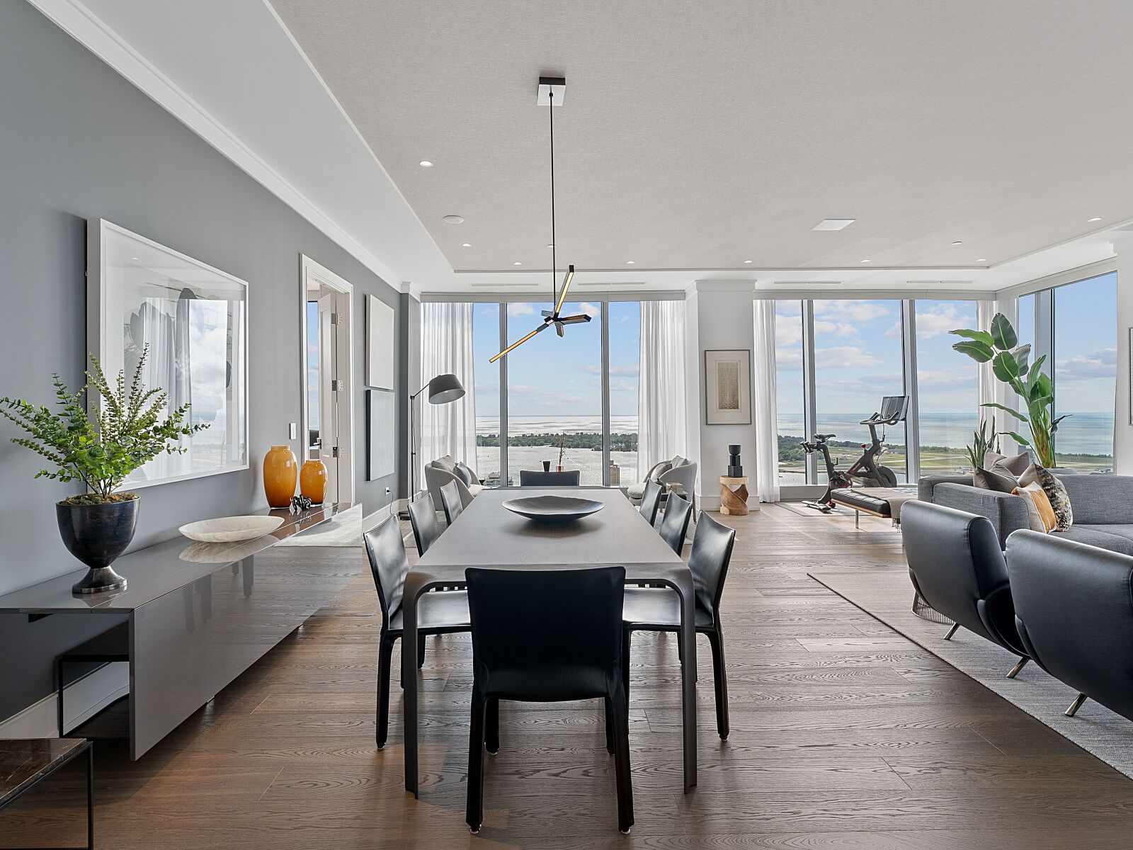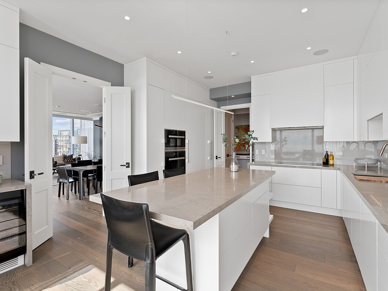 The Residences at the Ritz-Carlton Suite 4006 is a complete Turn Key custom built suite by Battiston Construction & Interior Designed by Michael Lamble with the highest quality finishes & profiency. Elegant Downsview kitchen showcases B/I Meile appliances: Panel Fridge, Panel Freezer, Induction stove/range, Miele Microwave, Oven & Wine Bar & extensive B/I cabinetry. Solid wood 4-hinge doors throught, beautiful moldings, with textured ceilings in foyer & living/dining rooms, Slate flooring in foyer, Slate panelled fireplace & Flat Screen TV in living room & 7" 3/4" Oak hardwood floors throughout. No expense spared creates this elegant/opulent dream home in the sky/unobstructed panoramic views from every room. Elegantly finished Zen like flow will leave your client speechless. Property is being sold including all furniture, light fixtures, floor covering, window covering, SAVANT system: powers blinds, audio & Lutron lighting. (2) B/I flat panel TVs, Miele W/D. All B/I appliances in kitchen. Exclusions: All personal/decorative accessories on/and about the suite, all art on walls and (1) lamp in living room (next to F/P)