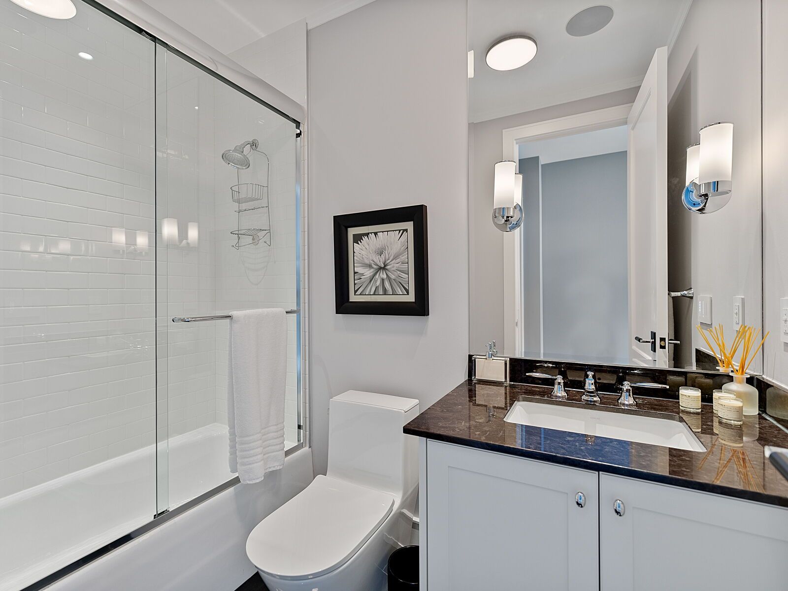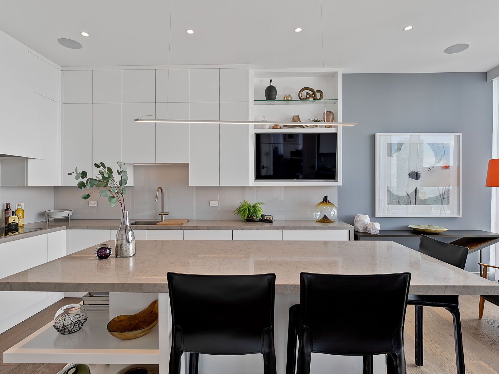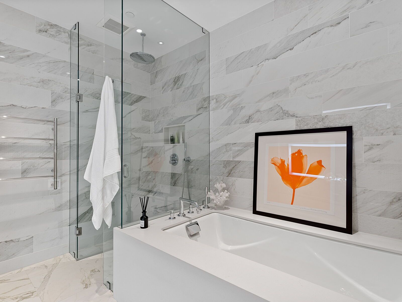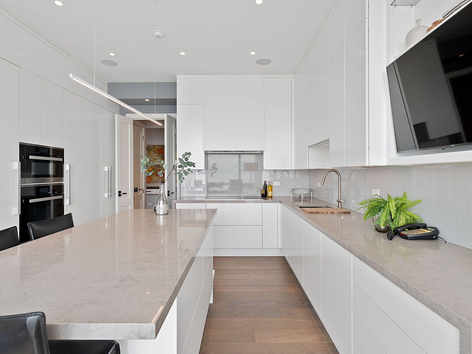 The Residences at the Ritz-Carlton Suite 4006 is a complete Turn Key custom built suite by Battiston Construction & Interior Designed by Michael Lamble with the highest quality finishes & profiency. Elegant Downsview kitchen showcases B/I Meile appliances: Panel Fridge, Panel Freezer, Induction stove/range, Miele Microwave, Oven & Wine Bar & extensive B/I cabinetry. Solid wood 4-hinge doors throught, beautiful moldings, with textured ceilings in foyer & living/dining rooms, Slate flooring in foyer, Slate panelled fireplace & Flat Screen TV in living room & 7" 3/4" Oak hardwood floors throughout. No expense spared creates this elegant/opulent dream home in the sky/unobstructed panoramic views from every room. Elegantly finished Zen like flow will leave your client speechless. Property is being sold including all furniture, light fixtures, floor covering, window covering, SAVANT system: powers blinds, audio & Lutron lighting. (2) B/I flat panel TVs, Miele W/D. All B/I appliances in kitchen. Exclusions: All personal/decorative accessories on/and about the suite, all art on walls and (1) lamp in living room (next to F/P)