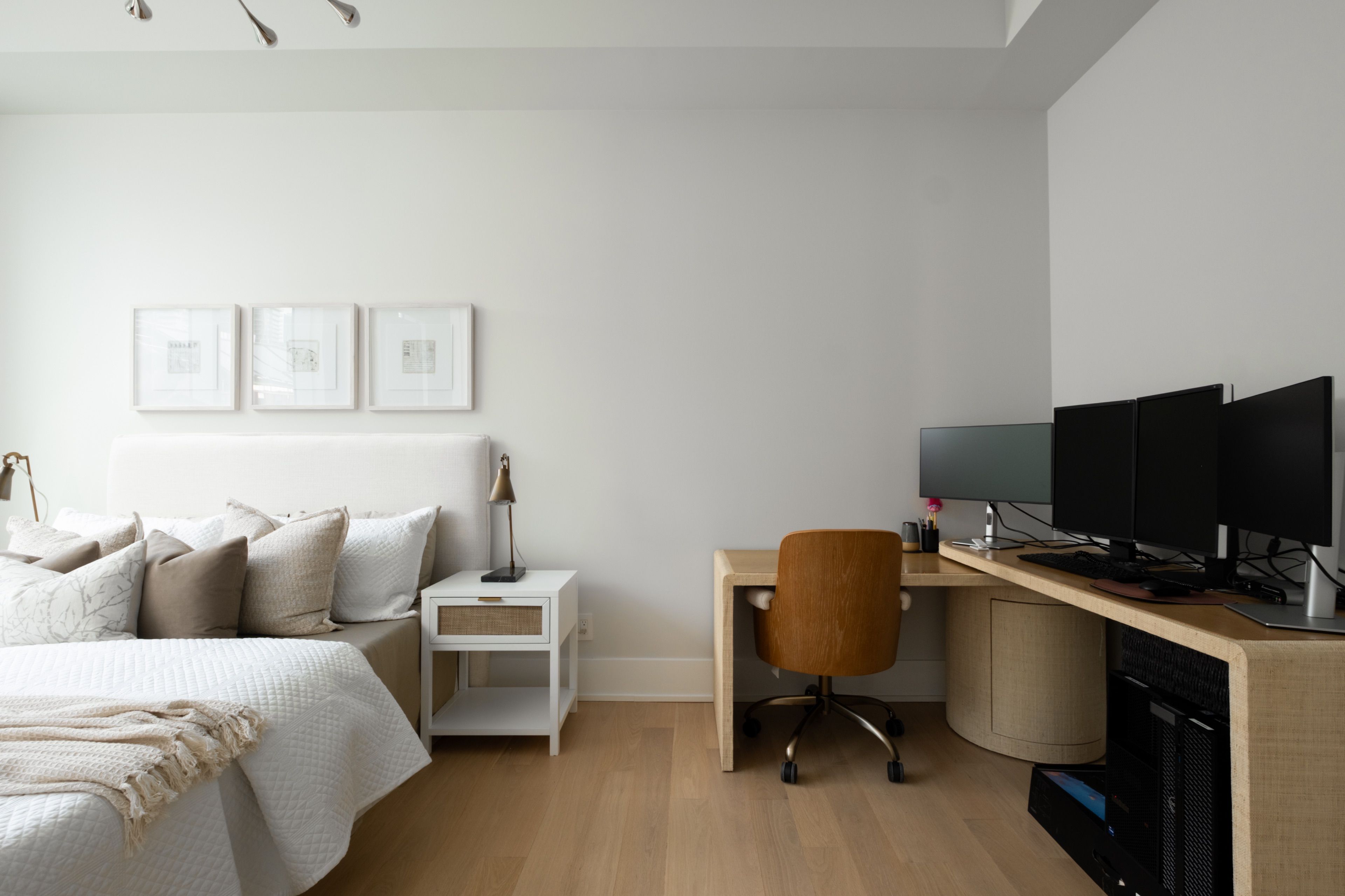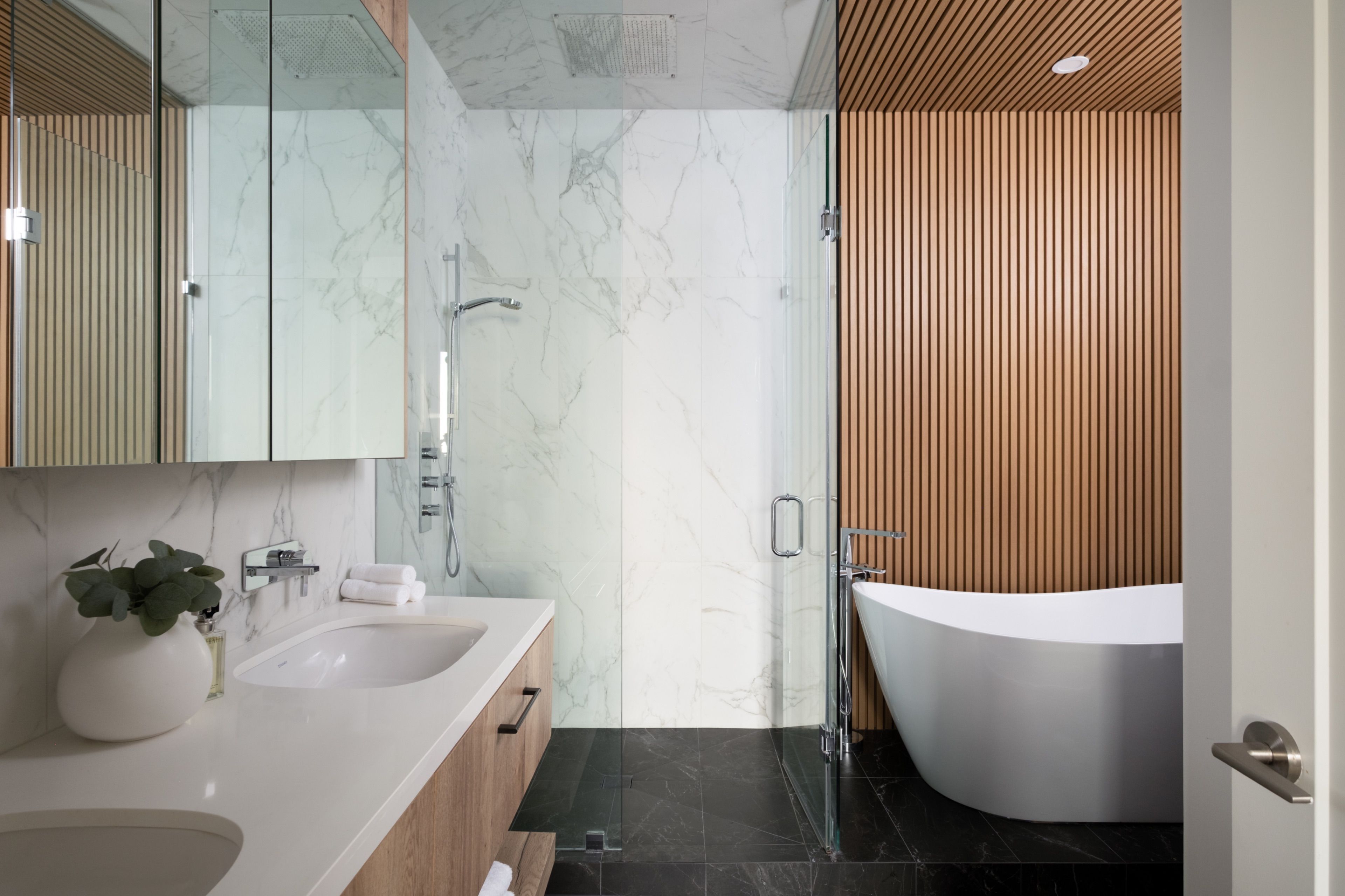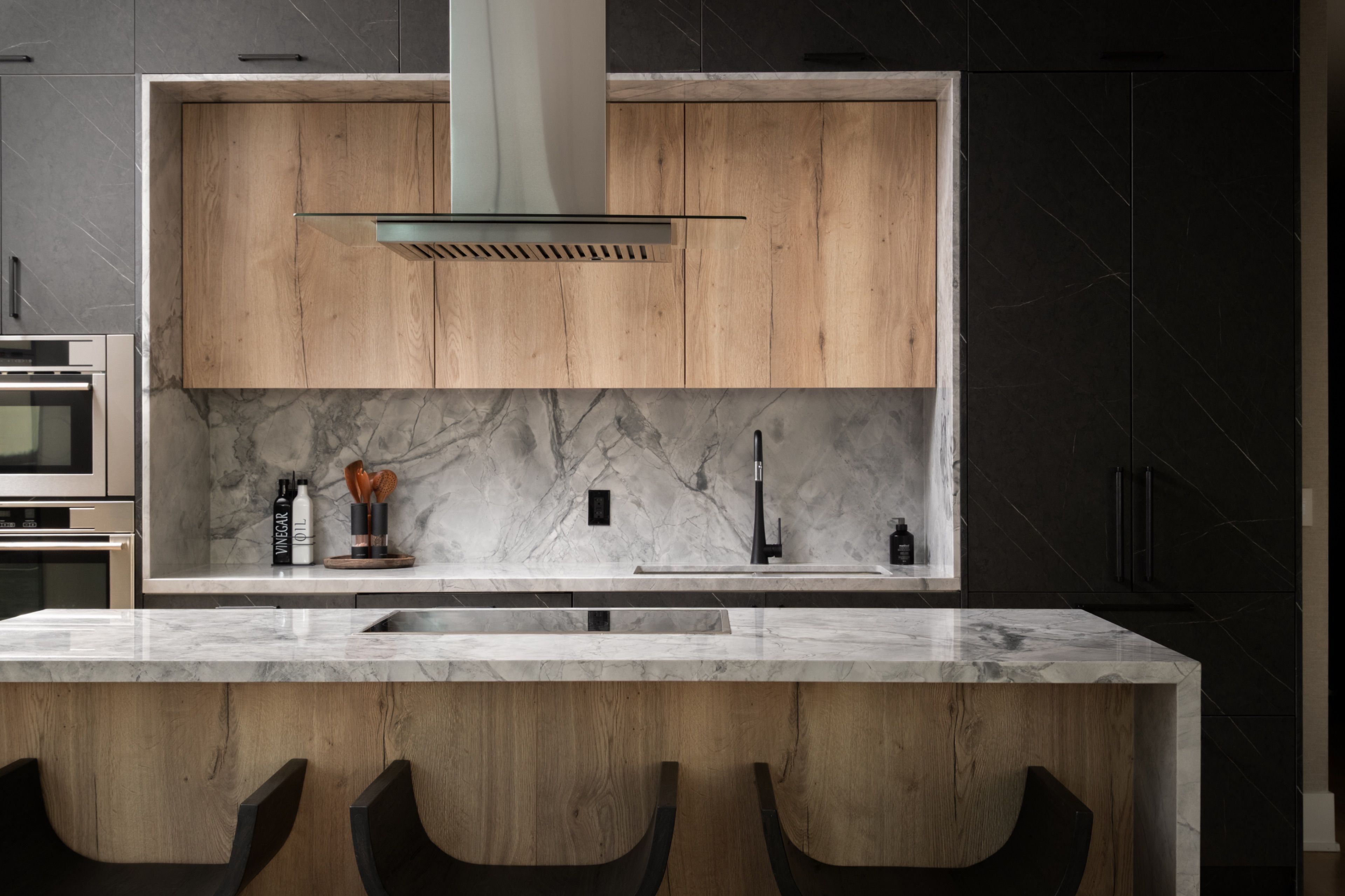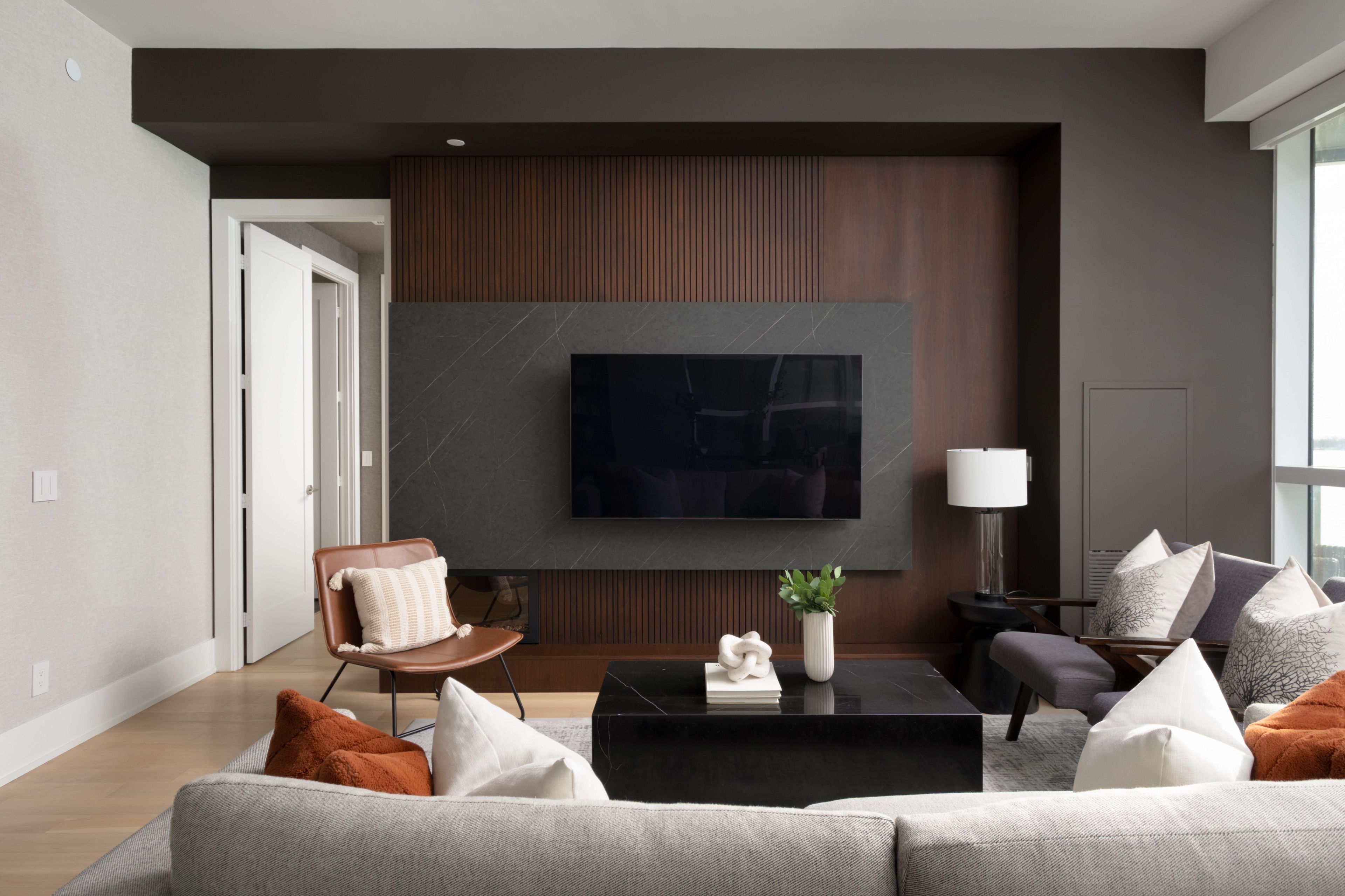 Welcome to 55 Merchants' Wharf, an exceptional waterfront residence where sophisticated design, bespoke finishes, and sweeping lake and city views define elevated downtown living. Thoughtfully curated throughout, this home offers a seamless blend of modern elegance and timeless craftsmanship.The expansive open-concept living space is anchored by a dramatic custom wood-slat feature wall with integrated ambient lighting and a sleek wall-mounted TV, creating an architectural focal point ideal for both refined entertaining and everyday living. Floor-to-ceiling windows bathe the interior in natural light and frame tranquil water views, while neutral tones, clean lines, and premium finishes create a calm, upscale atmosphere that flows effortlessly into the chef-inspired kitchen featuring a dramatic waterfall island, integrated appliances, bespoke cabinetry and striking architectural details that blend warmth with modern sophistication. The dining area is perfectly positioned beside expansive windows, offering an ever-changing urban and waterfront backdrop for memorable meals and gatherings.he primary bedroom is a serene, hotel-inspired retreat with floor-to-ceiling windows, wide-plank hardwood flooring, designer lighting and detailing. The spa-like ensuite offers a freestanding soaker tub, glass-enclosed rainfall shower, double vanity with stone countertops, and elegant wood and marble finishes.A generously sized second bedroom provides flexibility as a guest suite or executive home office complemented by a private ensuite with sleek modern finishes. Step onto the private balcony and enjoy unobstructed views of Lake Ontario-perfect for morning coffee or sunset relaxation. Ideally located steps from the waterfront boardwalk and minutes from the Financial District, St. Lawrence Market, and Toronto's premier dining and cultural destinations, this residence delivers a rare opportunity for luxury waterfront living in one of the city's most sought-after addresses.