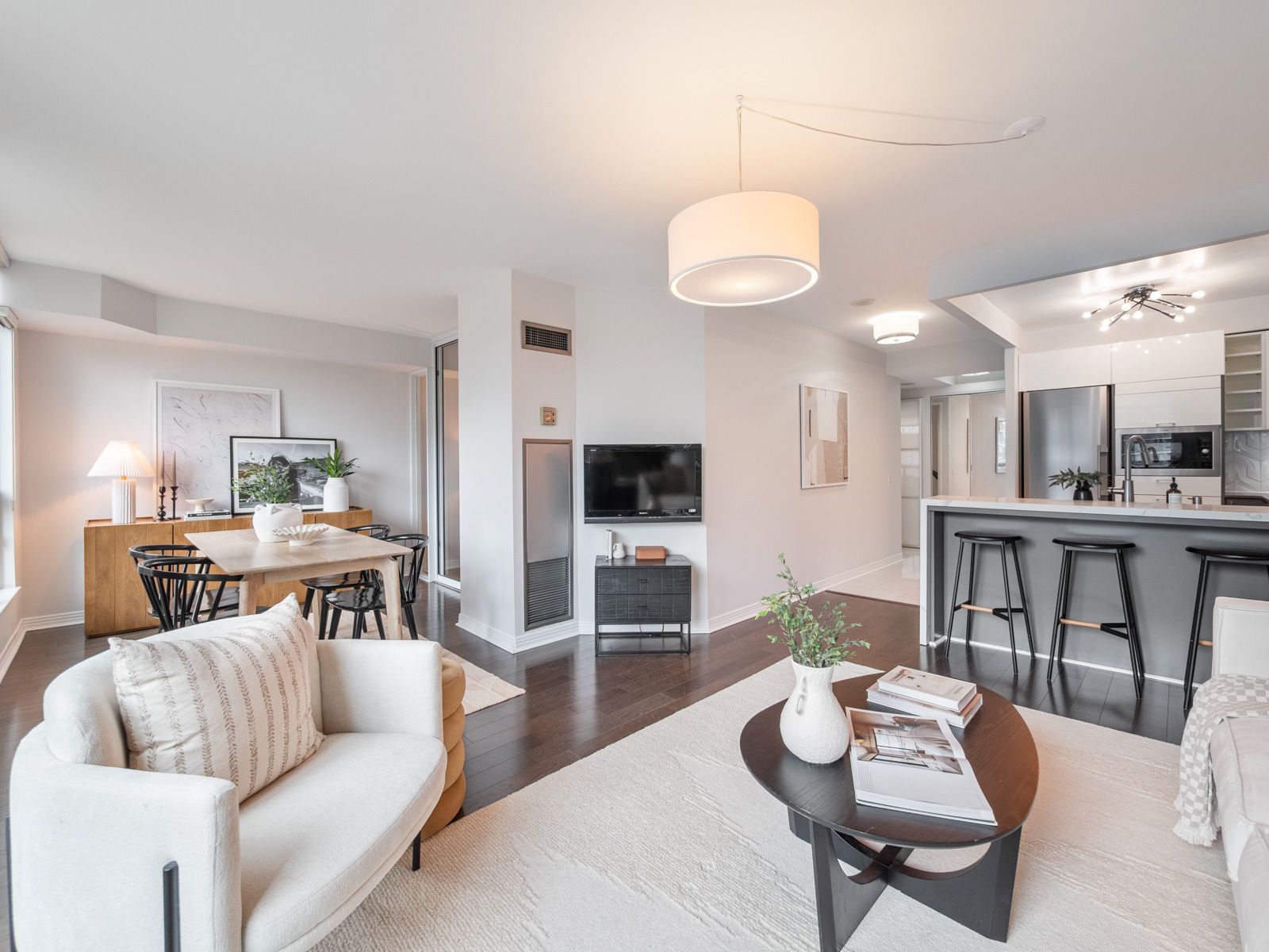 Welcome to The Memphis - a quiet, beautifully maintained oasis perfectly positioned between Yorkville and Rosedale. This fully renovated 1 bedroom + den suite offers 707 sq ft of bright, thoughtfully designed living space with large south-facing windows that fill the home with natural light and provide a calm courtyard view. A true turnkey opportunity in one of Toronto's most coveted neighbourhoods.The suite has been meticulously upgraded throughout. The bespoke kitchen features custom cabinetry, quartz counters, a breakfast bar, and stainless-steel appliances - ideal for cooking, entertaining, or enjoying a quiet morning coffee. The renovated spa-inspired bathroom feels fresh and modern, while the engineered wood flooring and high baseboards add a crisp, elegant finish. The spacious primary bedroom easily accommodates a king-size bed, and the large den offers versatility as a dining room or dedicated home office.The Memphis is known for its exceptional care and peaceful atmosphere, all while being steps to the best of Yorkville - shops, bars, restaurants, Whole Foods, City Market, Eataly, lush parks, transit, and both subway lines. Building amenities include a 24-hour concierge, gym, sauna, party/meeting room, billiards room, visitors parking, and a stunning rooftop terrace. All utilities are included in the maintenance fees, adding convenience and value. A beautifully renovated, move-in-ready home in the heart of the city - this is the one you've been waiting for.