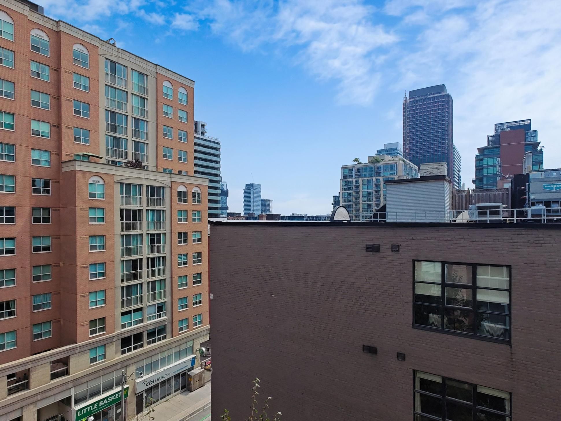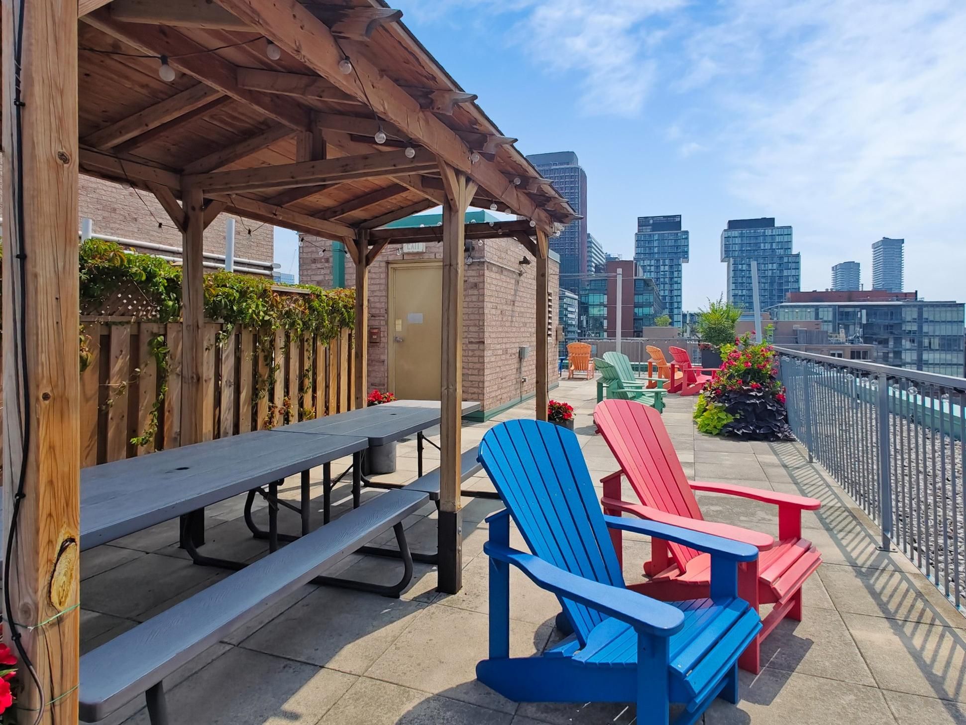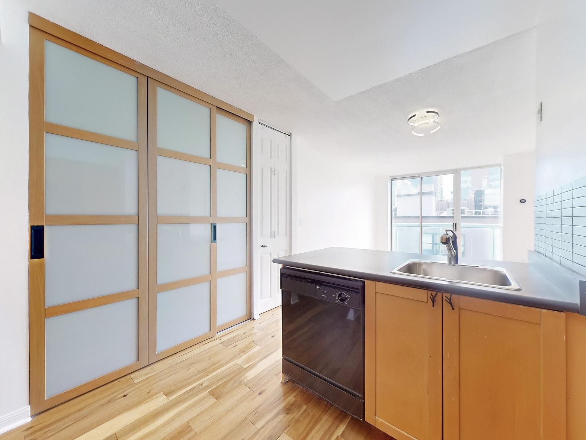 Welcome to 311 Richmond Street East, Suite 809, where downtown energy meets serene comfort. This bright and inviting 1-bedroom, 1-bathroom suite offers 489 sq. ft. of thoughtfully designed living space with wheelchair accessibility and a walk-in shower for added ease and comfort. Sunlight pours through south-facing windows, illuminating sleek laminate flooring in the main living area and cozy carpet in the bedroom. A Juliette balcony adds a touch of fresh air and city charm. The well-appointed kitchen features full-size appliances and a smooth breakfast bar, perfect for morning coffee or casual dinners with friends. Enjoy the convenience of a full-size washer and dryer, along with ample in-suite storage and an included locker. Residents enjoy access to an amazing state-of-the-art fitness facility and a rooftop patio, ideal for relaxing or entertaining. Unbeatable location just steps to TTC transit and the subway, and minutes from St. Lawrence Market, the Distillery District, the Financial District, hospitals, theatres, shopping, and Lake Ontario. Everything you need is right at your doorstep.