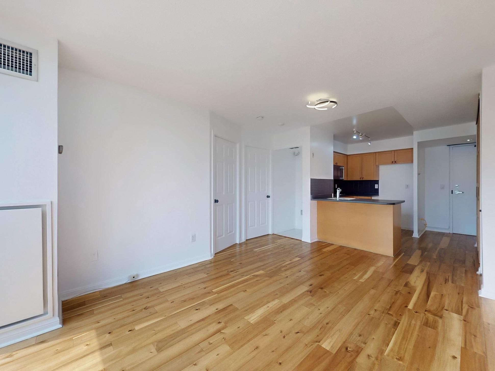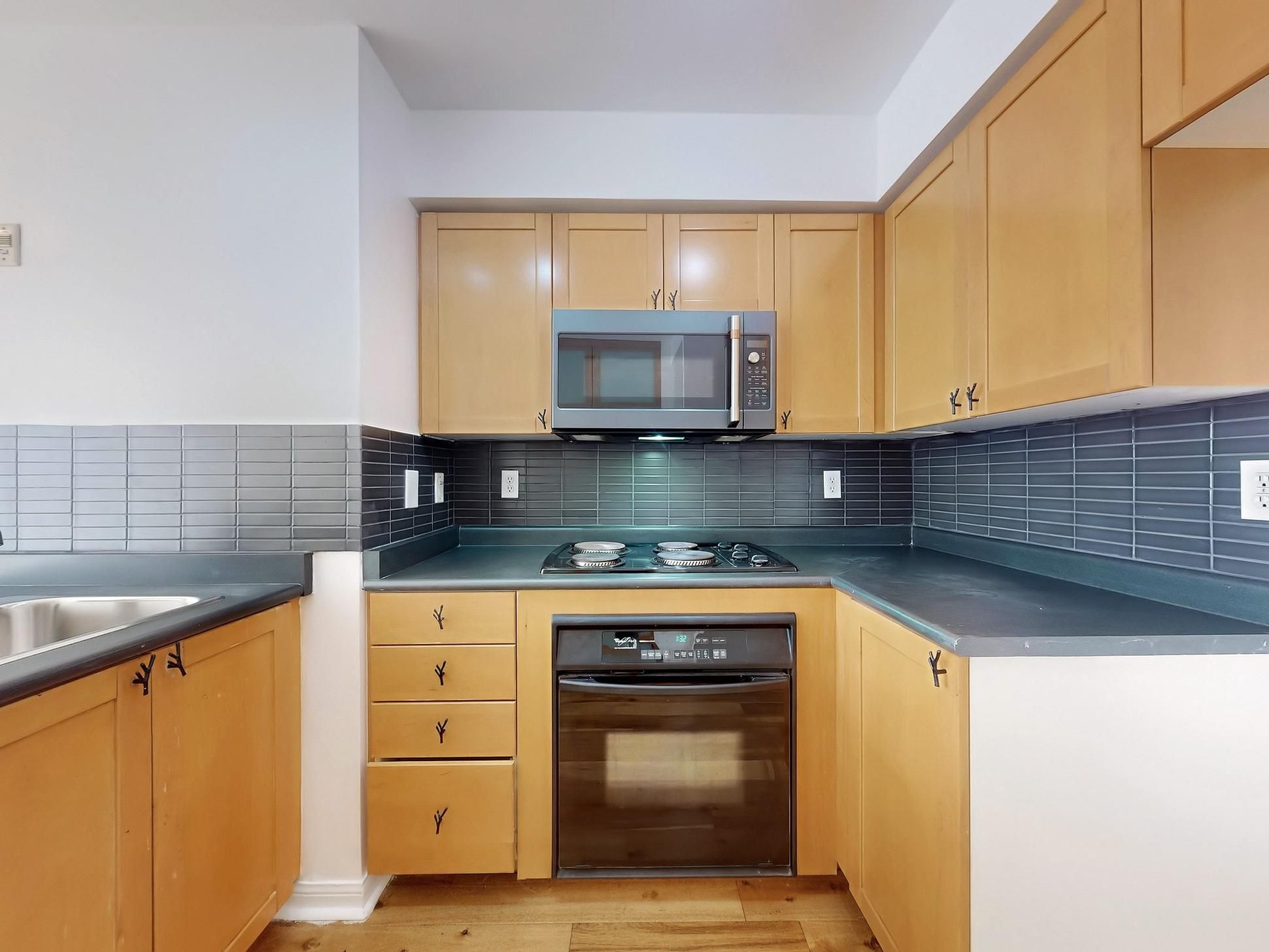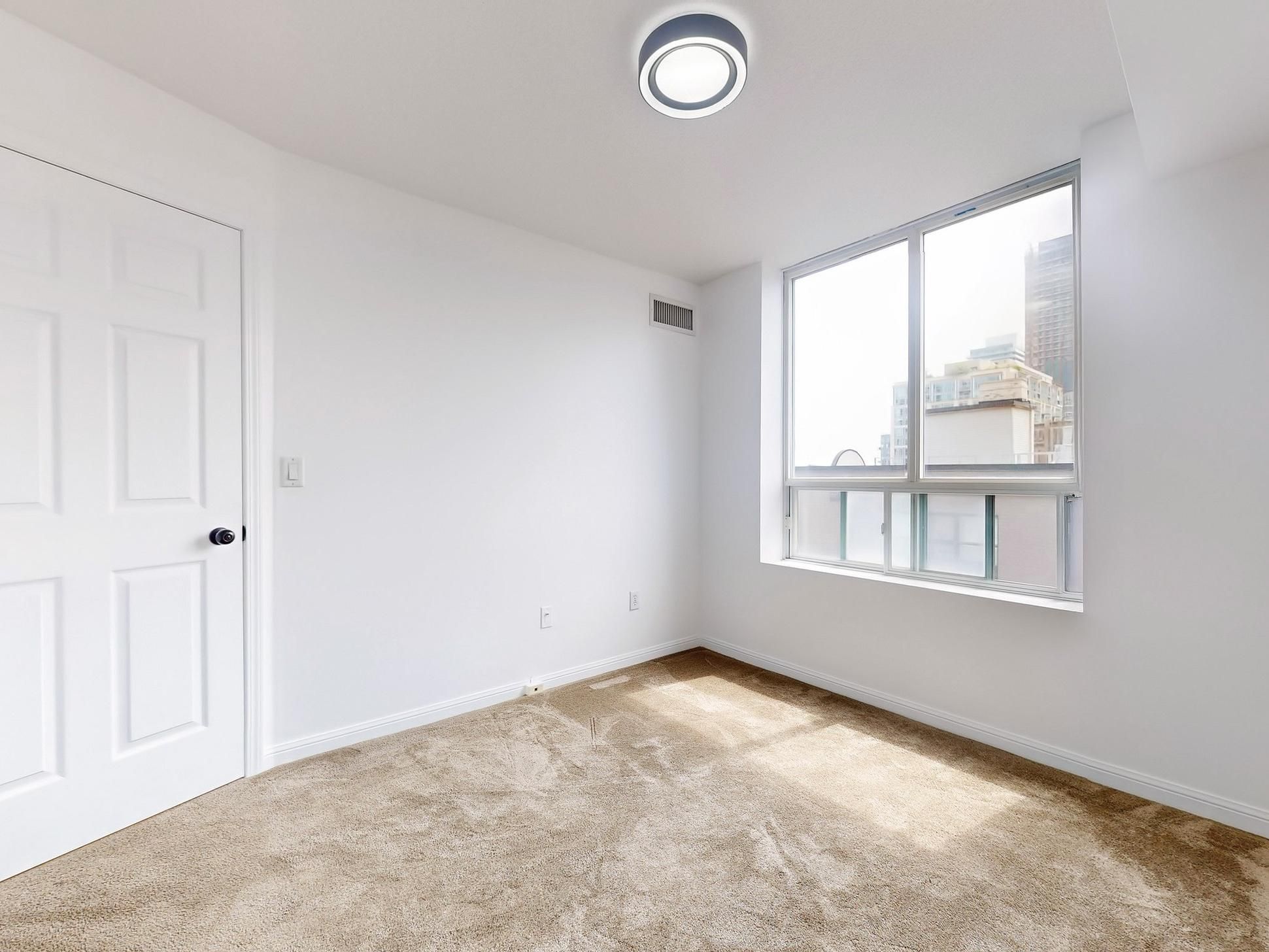 Welcome to 311 Richmond Street East, Suite 809, where downtown energy meets serene comfort. This bright and inviting 1-bedroom, 1-bathroom suite offers 489 sq. ft. of thoughtfully designed living space with wheelchair accessibility and a walk-in shower for added ease and comfort. Sunlight pours through south-facing windows, illuminating sleek laminate flooring in the main living area and cozy carpet in the bedroom. A Juliette balcony adds a touch of fresh air and city charm. The well-appointed kitchen features full-size appliances and a smooth breakfast bar, perfect for morning coffee or casual dinners with friends. Enjoy the convenience of a full-size washer and dryer, along with ample in-suite storage and an included locker. Residents enjoy access to an amazing state-of-the-art fitness facility and a rooftop patio, ideal for relaxing or entertaining. Unbeatable location just steps to TTC transit and the subway, and minutes from St. Lawrence Market, the Distillery District, the Financial District, hospitals, theatres, shopping, and Lake Ontario. Everything you need is right at your doorstep.