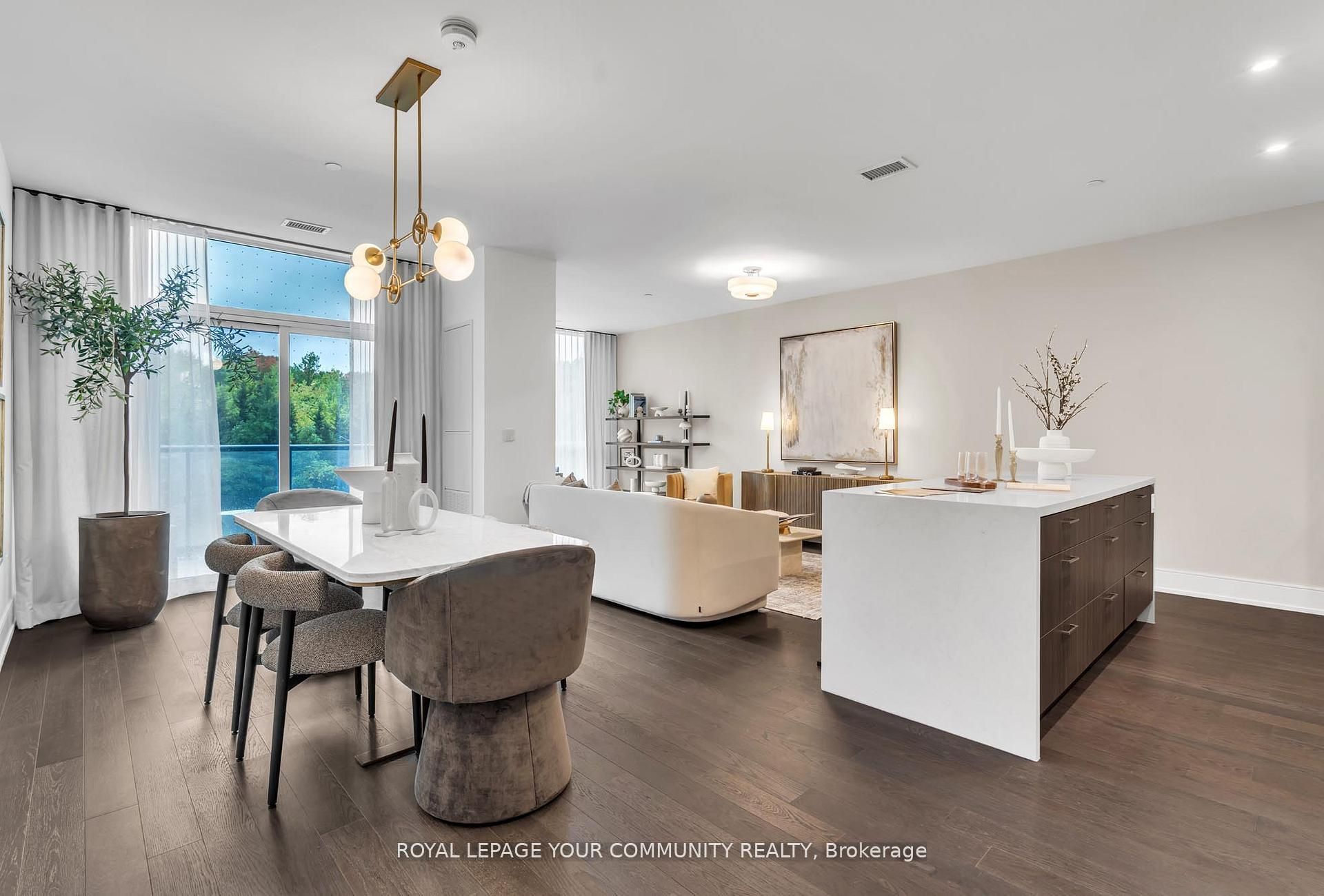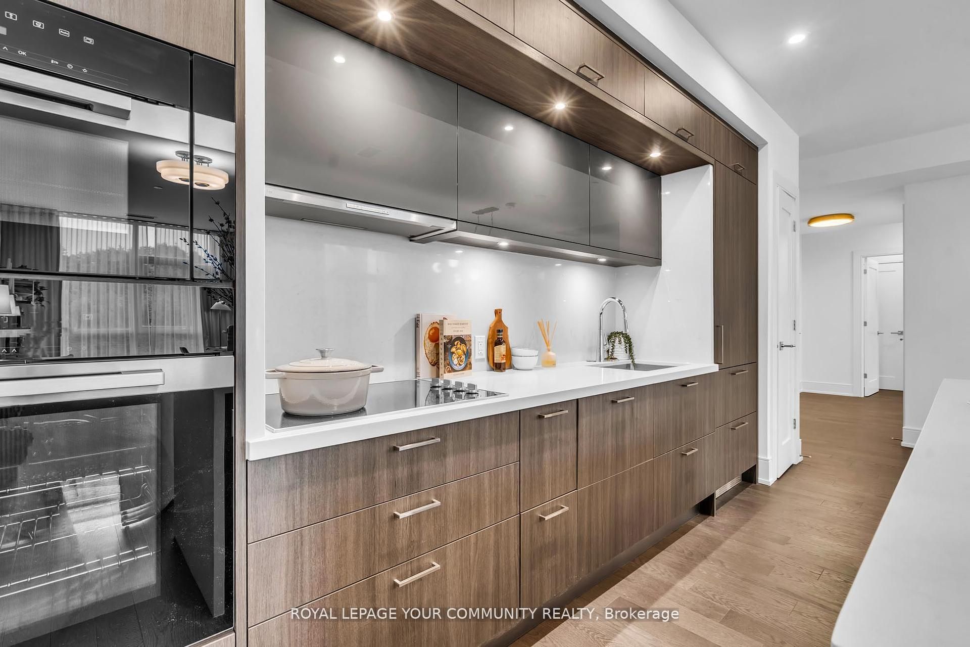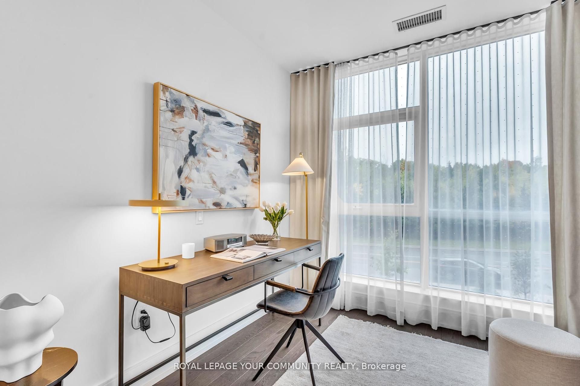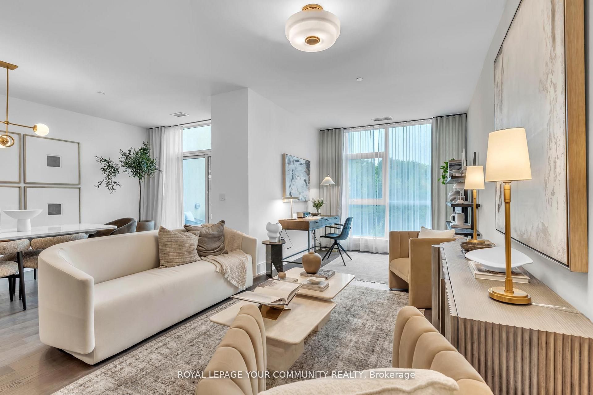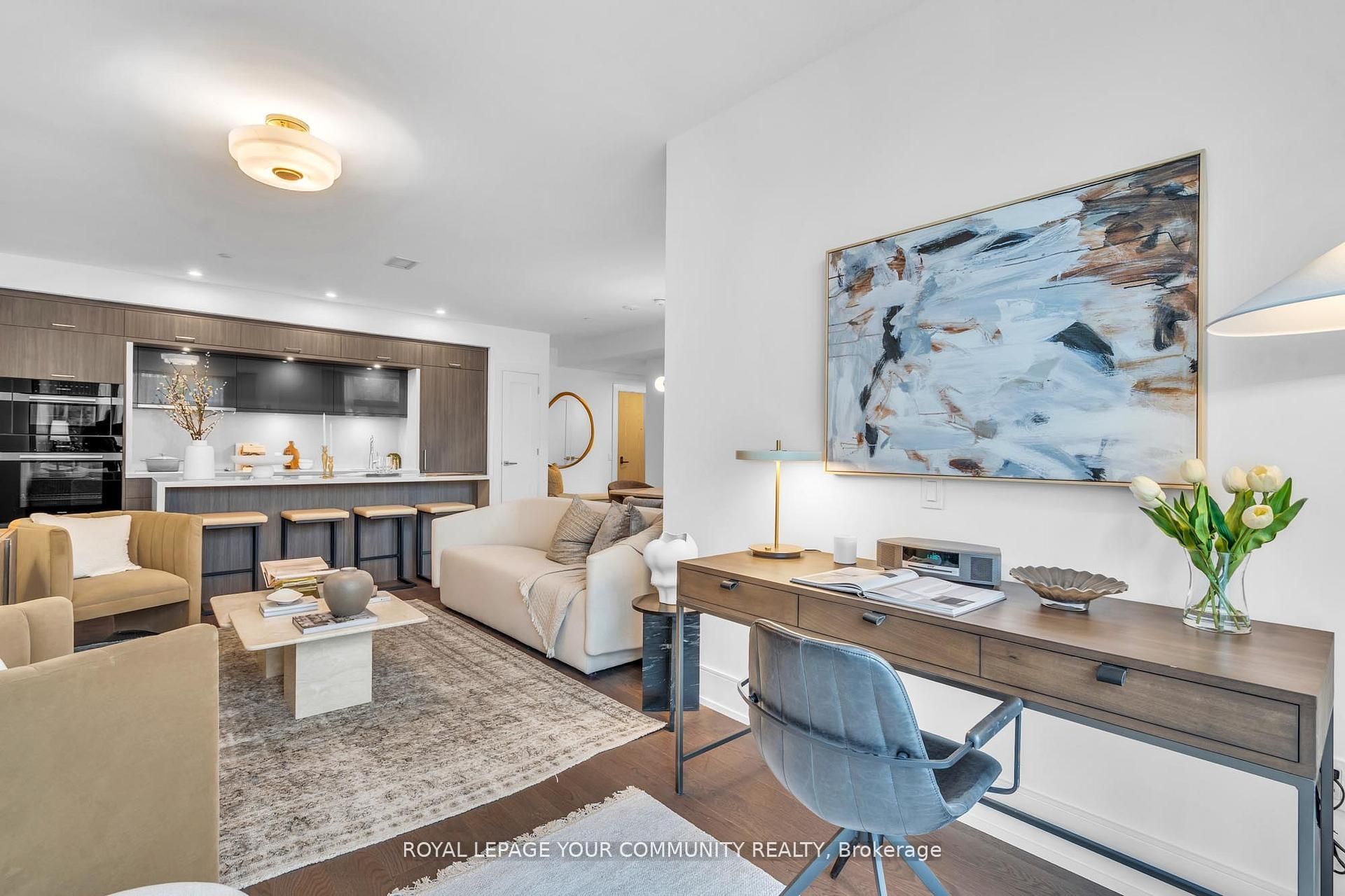 Welcome to Suite 101 at Chateau Auberge on the Park, where classic elegance blends seamlessly with modern design. This beautifully appointed 2-bedroom plus den, 2-bath residence enjoys direct park-facing views, creating a serene, nature-filled backdrop throughout the home. Inside, thoughtful upgrades define the space, including 9-foot smooth ceilings, engineered hardwood flooring, enhanced lighting, and premium California Closets organizers-striking the perfect balance between luxury and practicality. The open-concept living and dining area extends effortlessly to a private balcony, an ideal setting for morning coffee or unwinding in the evening while overlooking lush greenery. The chef-inspired kitchen is refined with Tridel's 400 Series upgrades, featuring fully integrated Miele appliances, custom cabinetry, stone countertops, and a sleek slab backsplash-perfect for both everyday living and entertaining. Both bedrooms are designed for comfort and functionality, complete with custom closet organizers. The primary suite offers a spa-like ensuite with a frameless glass shower, while the versatile den can easily serve as a home office or guest space. Additional features include one parking space, one locker, in-suite laundry, and a smart home system with digital door lock and wall-mounted control pad-enhancing convenience and modem living. Residents enjoy an exceptional collection of amenities, including 24-hour concierge service, a fully equipped fitness centre, indoor pool, party lounge, outdoor terrace with BBQs, guest suites, and secure parcel lockers. Ideally located just steps from Sunnybrook Park, close to top-rated schools, the upcoming Eglinton Crosstown LRT, and with quick access to major highways and downtown Toronto, this residence offers a rare blend of nature, luxury, and connectivity. Suite 101 is an exceptional opportunity to experience refined living at Chateau Auberge on the Park.