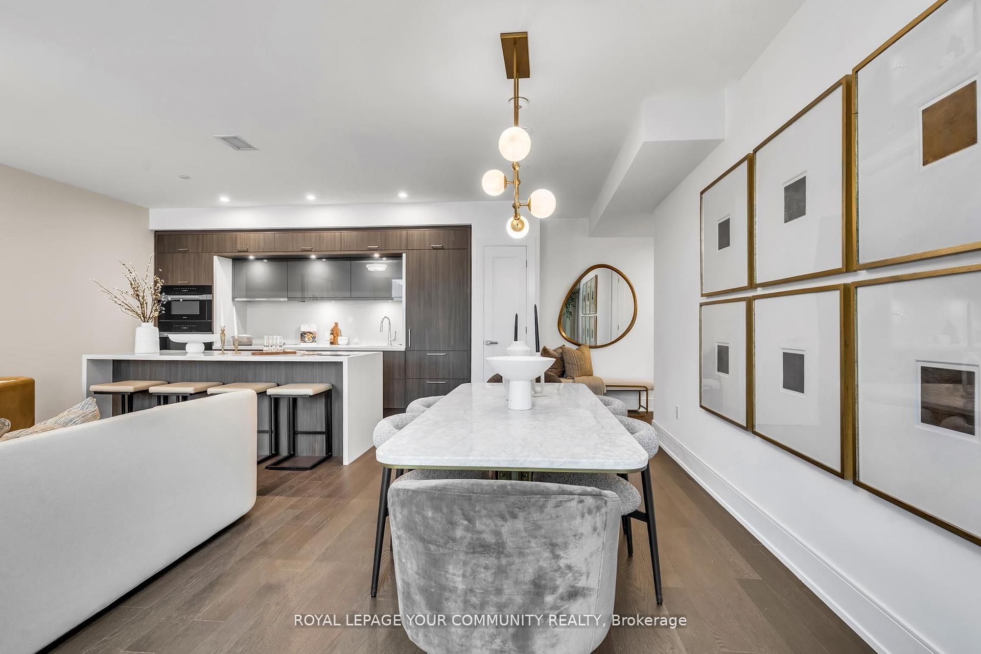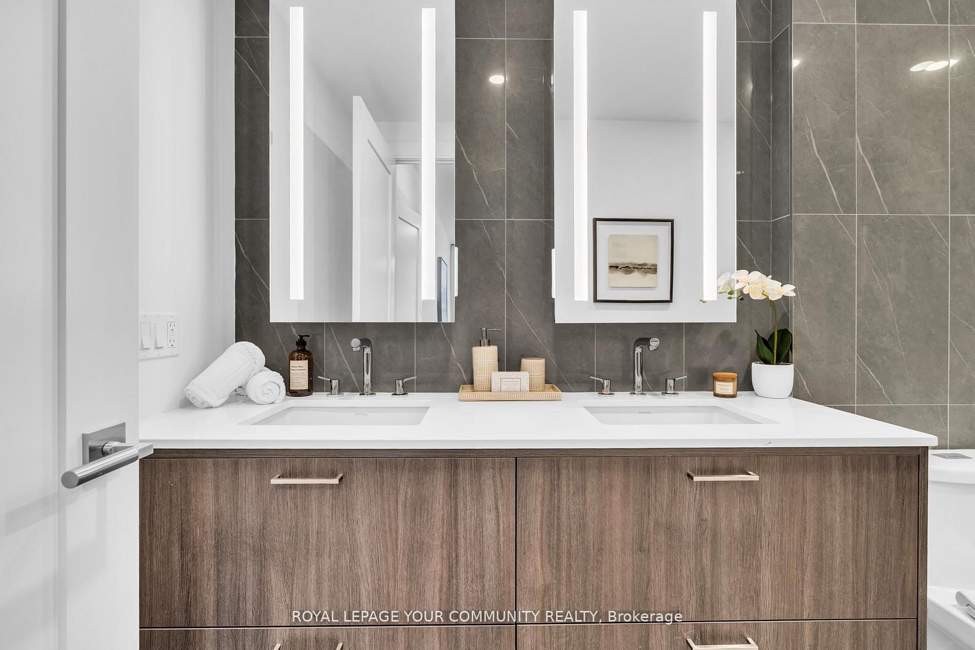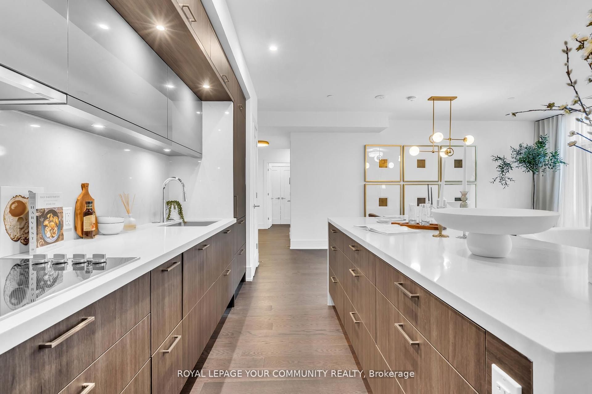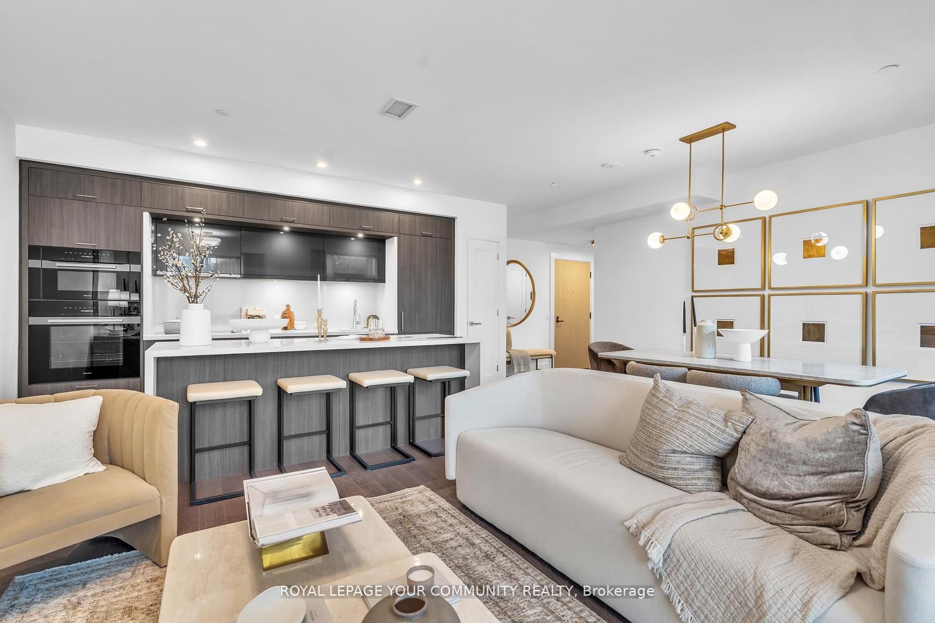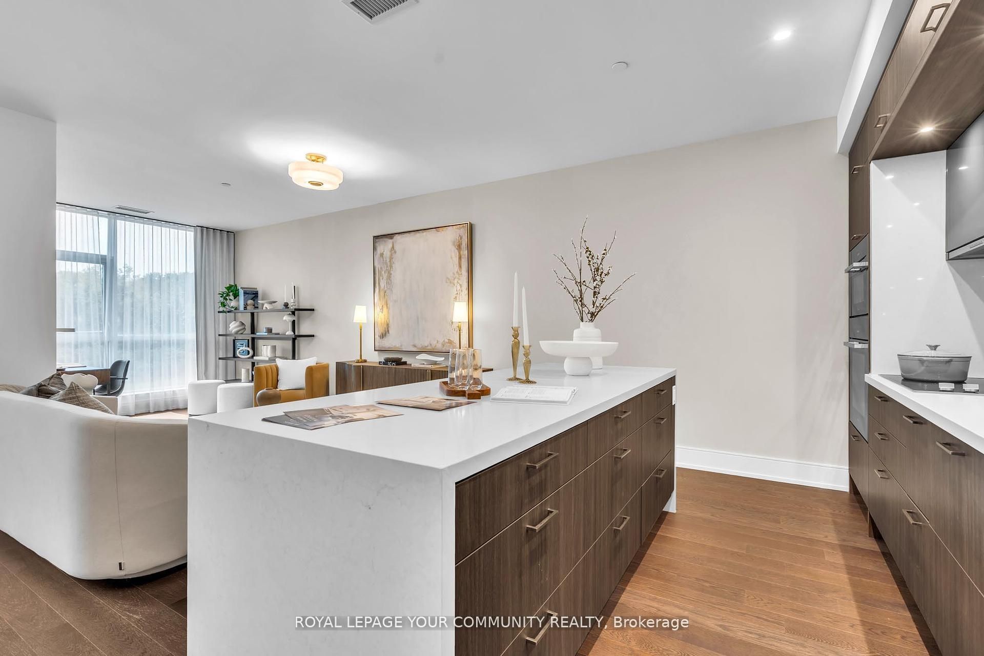 Welcome to Suite 101 at Chateau Auberge on the Park, where classic elegance blends seamlessly with modern design. This beautifully appointed 2-bedroom plus den, 2-bath residence enjoys direct park-facing views, creating a serene, nature-filled backdrop throughout the home. Inside, thoughtful upgrades define the space, including 9-foot smooth ceilings, engineered hardwood flooring, enhanced lighting, and premium California Closets organizers-striking the perfect balance between luxury and practicality. The open-concept living and dining area extends effortlessly to a private balcony, an ideal setting for morning coffee or unwinding in the evening while overlooking lush greenery. The chef-inspired kitchen is refined with Tridel's 400 Series upgrades, featuring fully integrated Miele appliances, custom cabinetry, stone countertops, and a sleek slab backsplash-perfect for both everyday living and entertaining. Both bedrooms are designed for comfort and functionality, complete with custom closet organizers. The primary suite offers a spa-like ensuite with a frameless glass shower, while the versatile den can easily serve as a home office or guest space. Additional features include one parking space, one locker, in-suite laundry, and a smart home system with digital door lock and wall-mounted control pad-enhancing convenience and modem living. Residents enjoy an exceptional collection of amenities, including 24-hour concierge service, a fully equipped fitness centre, indoor pool, party lounge, outdoor terrace with BBQs, guest suites, and secure parcel lockers. Ideally located just steps from Sunnybrook Park, close to top-rated schools, the upcoming Eglinton Crosstown LRT, and with quick access to major highways and downtown Toronto, this residence offers a rare blend of nature, luxury, and connectivity. Suite 101 is an exceptional opportunity to experience refined living at Chateau Auberge on the Park.