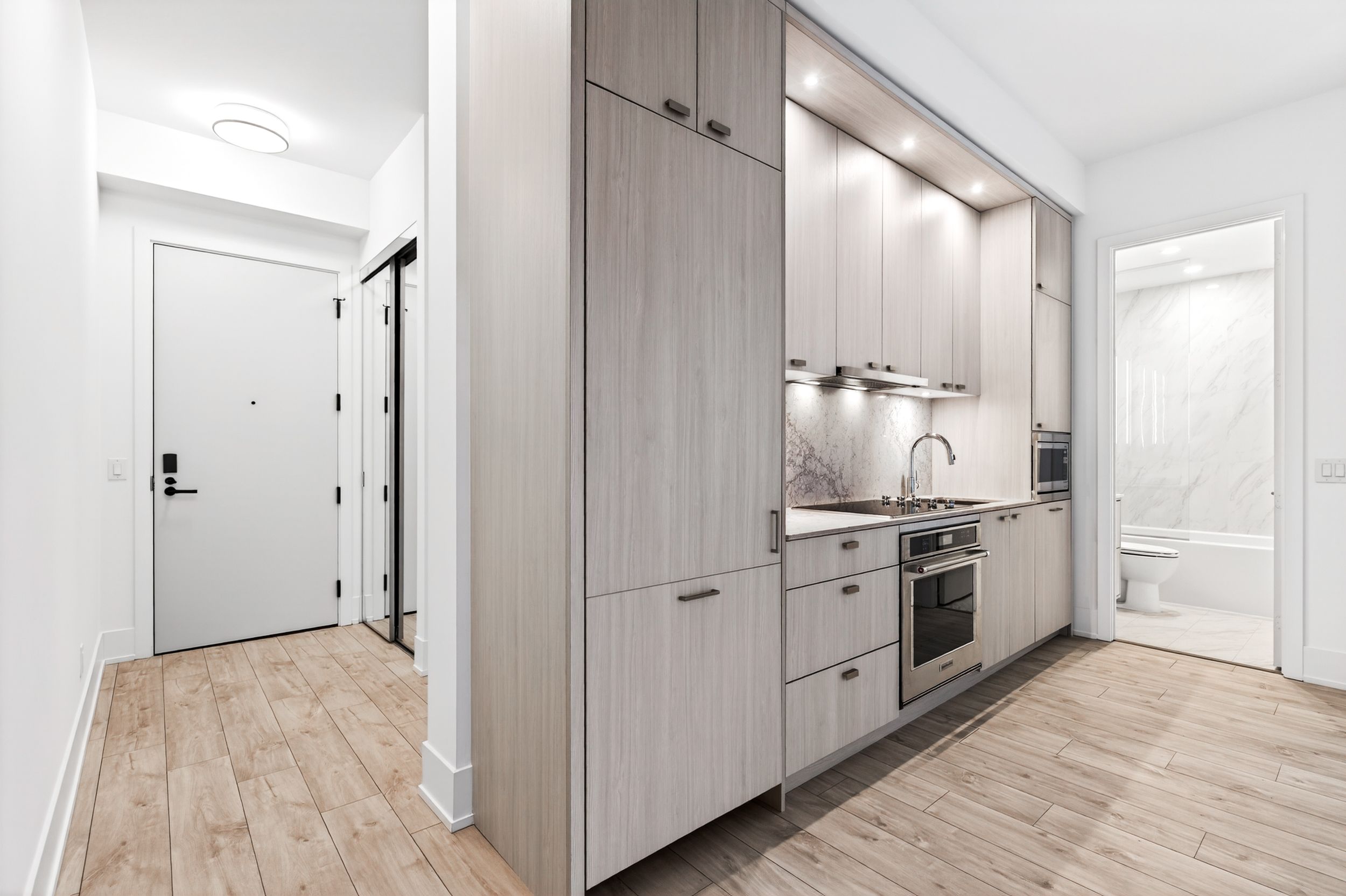 Upgraded 2-bedroom + den suite with an excellent layout, complete with parking and a storage locker. Be among the first to call Tridel's newest MRKT Condominiums home, offering refined living in the heart of downtown Toronto. This suite boasts a spacious primary bedroom, a sleek modern kitchen with built-in full-size appliances, stone counters, and a seamless stone backsplash. Enjoy a large balcony and a dedicated laundry room with generous storage.Residents have access to impressive resort-inspired amenities, including a multi-level fitness centre, rooftop pool with lounge and BBQ terrace, co-working and meeting areas, a children's game room, private courtyard playground, and more. Experience the best of urban living with Toronto's energy right outside your door - steps to streetcars, St. Patrick station, Kensington Market, Queen West, and countless conveniences.