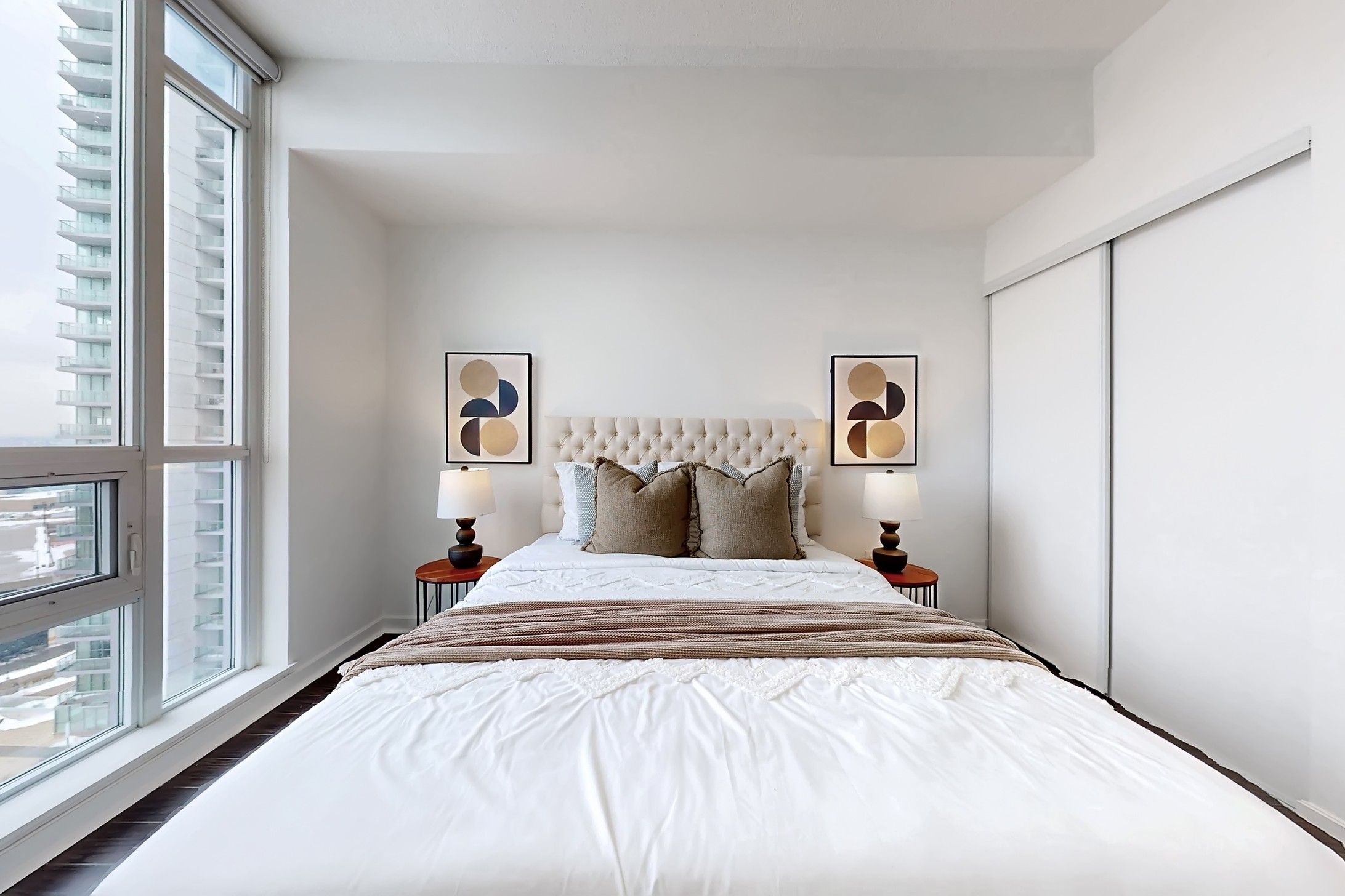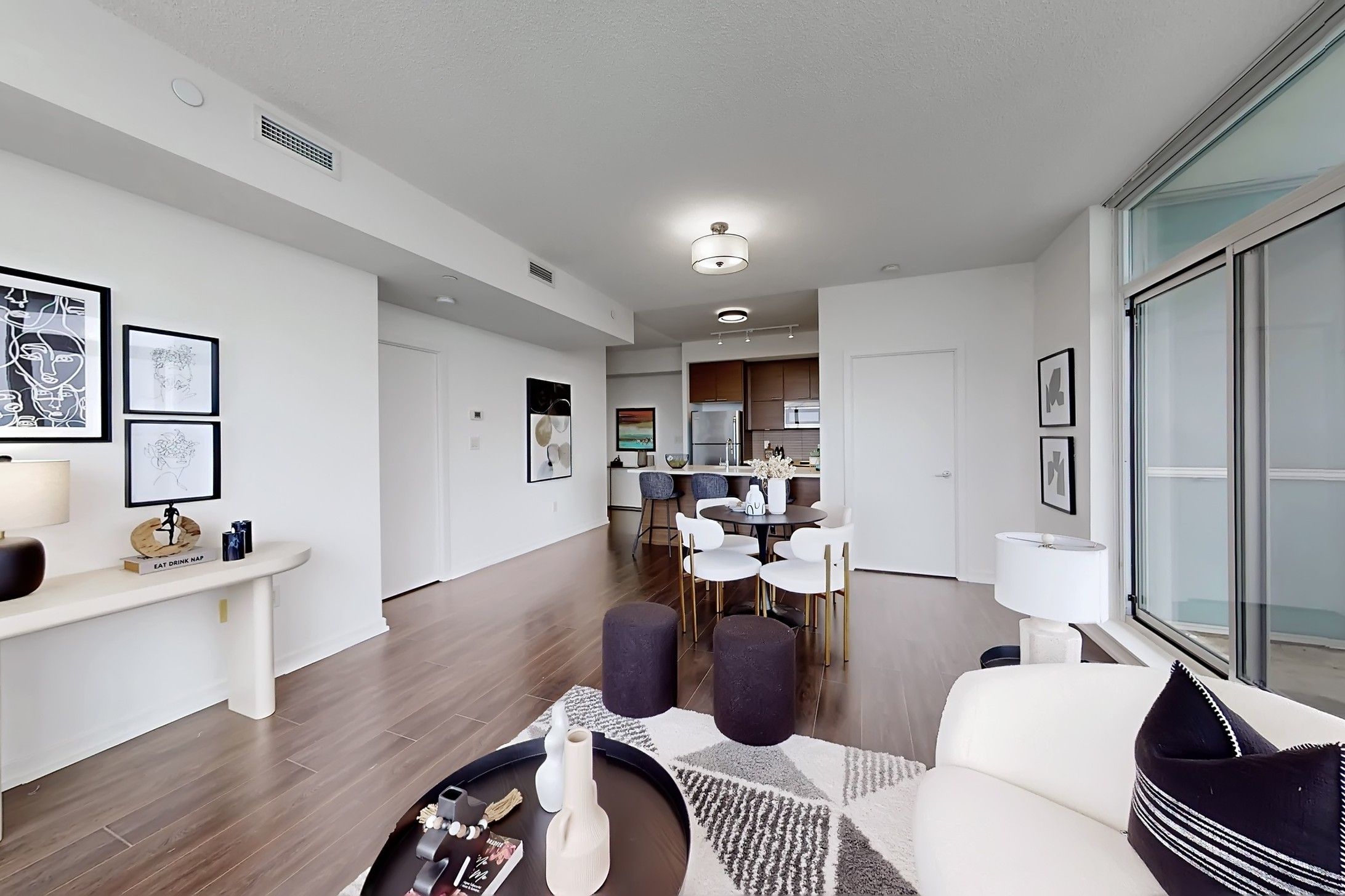 Welcome to the prestigious EMERALD Condos, ideally located at the heart of Don Mills & Sheppard in North York. This prime location offers unbeatable convenience with direct access to the subway, Highways 401 & 404, and multiple public transit options, making commuting effortless. This well-designed suite features two split bedrooms, providing excellent privacy, along with two full bathrooms, both equipped with showers. The unit also includes one parking space and one locker. The open-concept layout is spacious and filled with natural light, offering unobstructed city views. The unit boasts hardwood flooring throughout, freshly painted interiors, and newly installed modern light fixtures. Residents enjoy access to luxury amenities, including a fully equipped fitness centre, indoor swimming pool, party room, and 24-hour concierge and security. Located directly across from Fairview Mall, with T&T Supermarket, restaurants, and shops just steps away, this is a rare opportunity to own a premium condo in one of North York's most desirable neighborhoods.