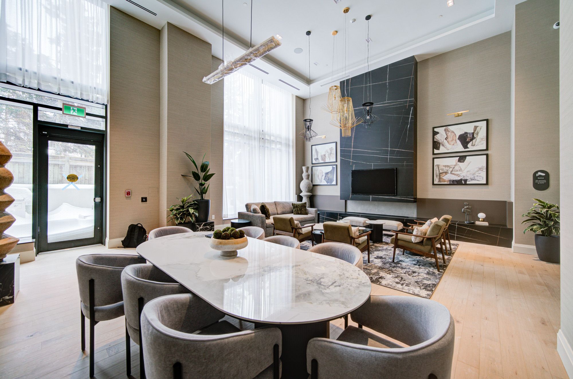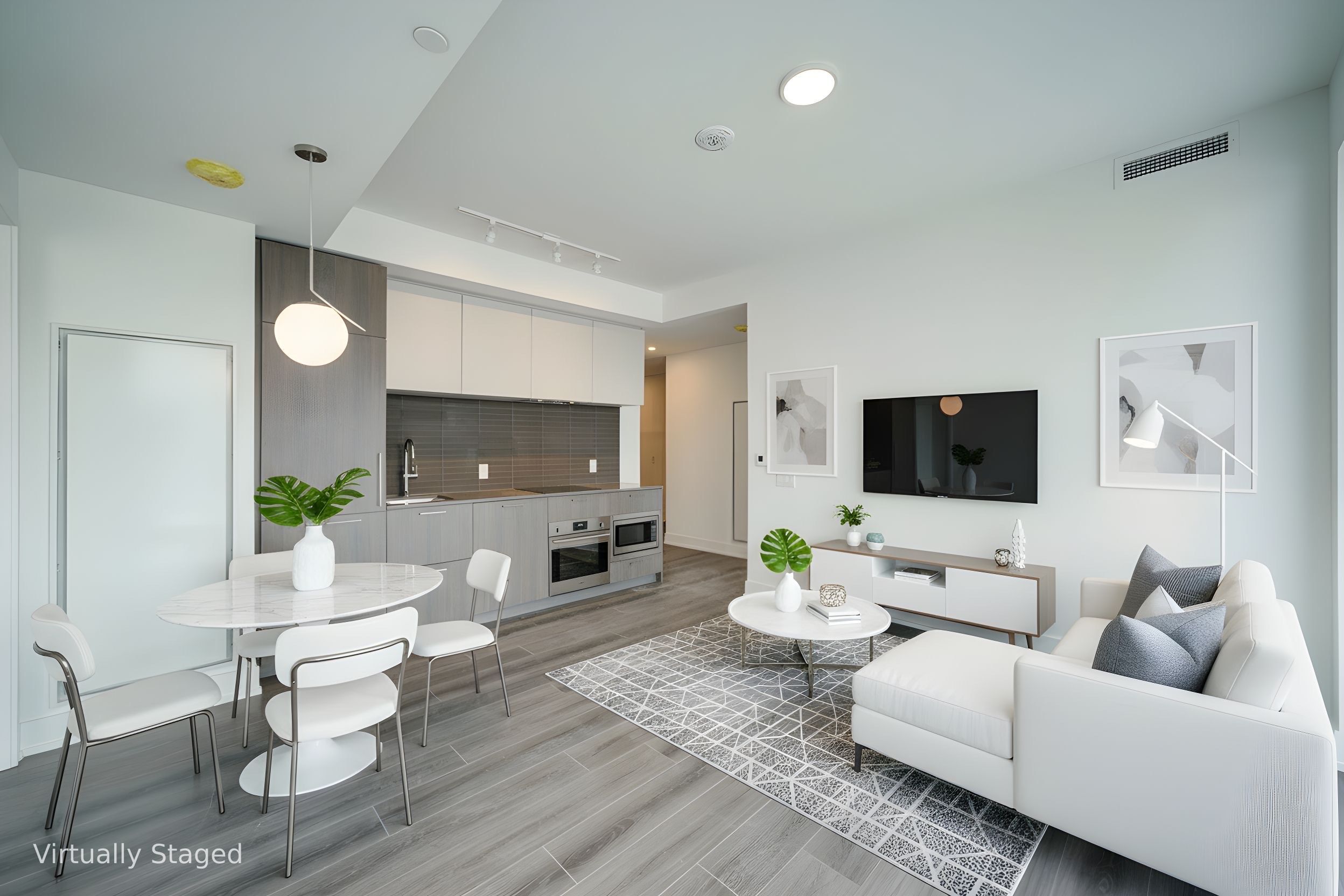 Welcome to Olive Residences, where modern design meets refined urban living in the heart of North York. Perfectly positioned just steps from Finch Subway Station, this brand-new corner suite delivers exceptional convenience, seamless connectivity, and an unobstructed panoramic view from a stunning wrap-around balcony. Residents enjoy approximately 11,000 sq. ft. of thoughtfully curated indoor and outdoor amenities, including a private catering kitchen, stylish social lounge, collaboration and meeting spaces, state-of-the-art fitness and yoga studios, children's playroom, virtual sports room, and expansive outdoor terraces. This brand-new two-bedroom, two-bathroom residence showcases a bright, open-concept layout with a contemporary kitchen featuring premium integrated appliances, Kohler fixtures, and high-end countertops. Upgraded luxury vinyl flooring, floor-to-ceiling windows, and the expansive wrap-around balcony flood the home with natural light and create an elevated living experience. Superior finishes, breathtaking views, and an impressive suite of amenities come together to offer sophisticated, modern urban living at its finest. Two images have been virtually staged and are intended to showcase potential layout and furnishings.