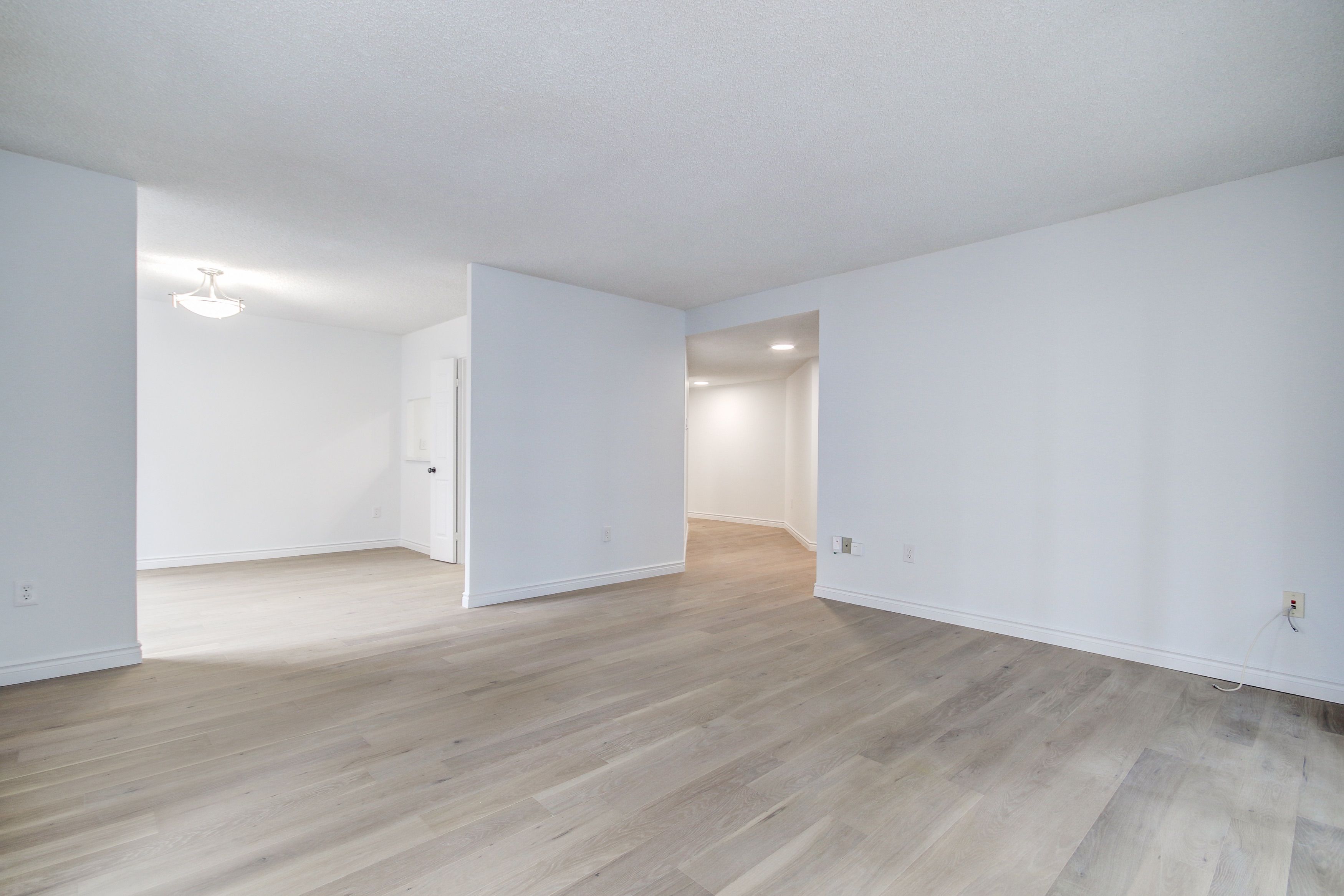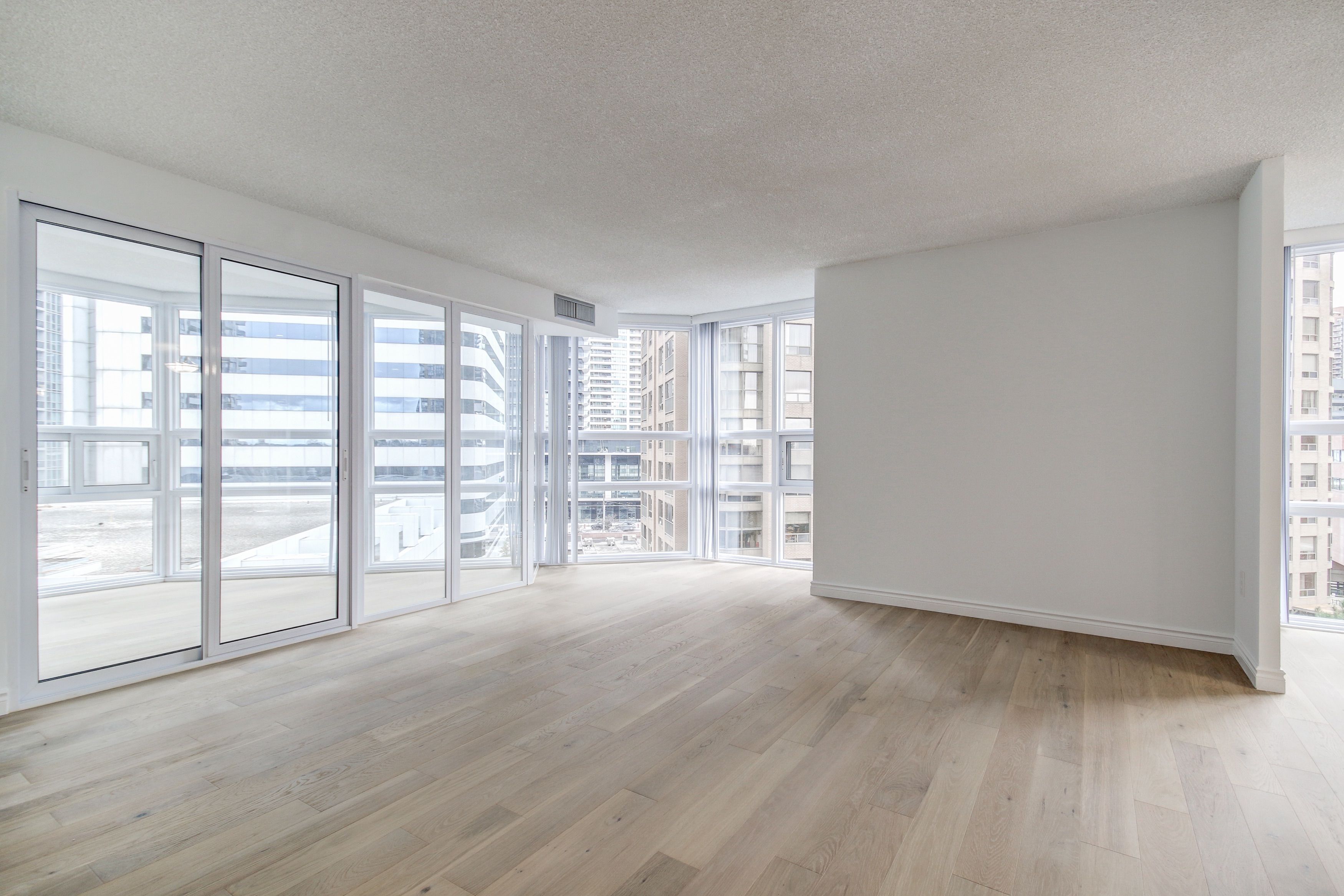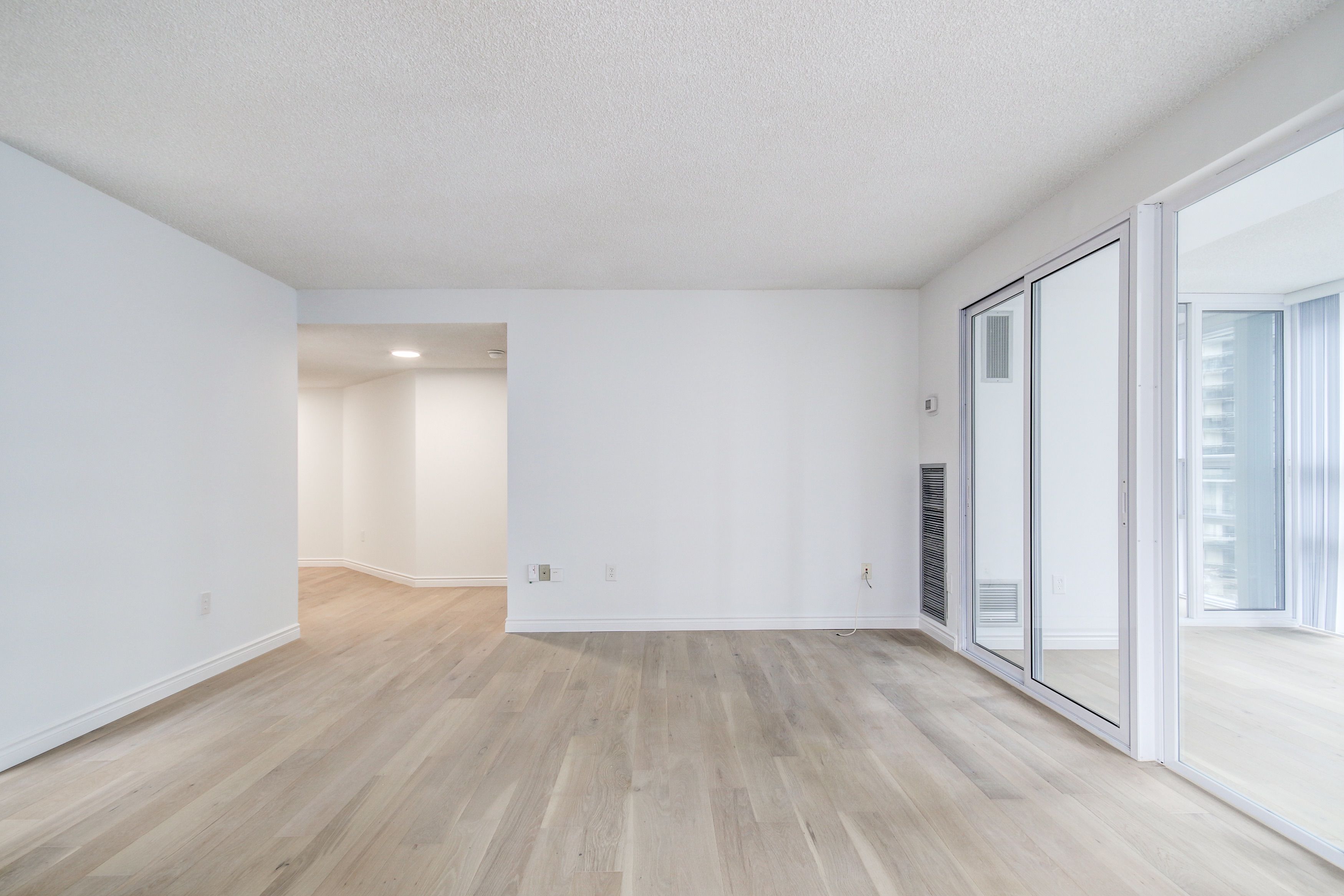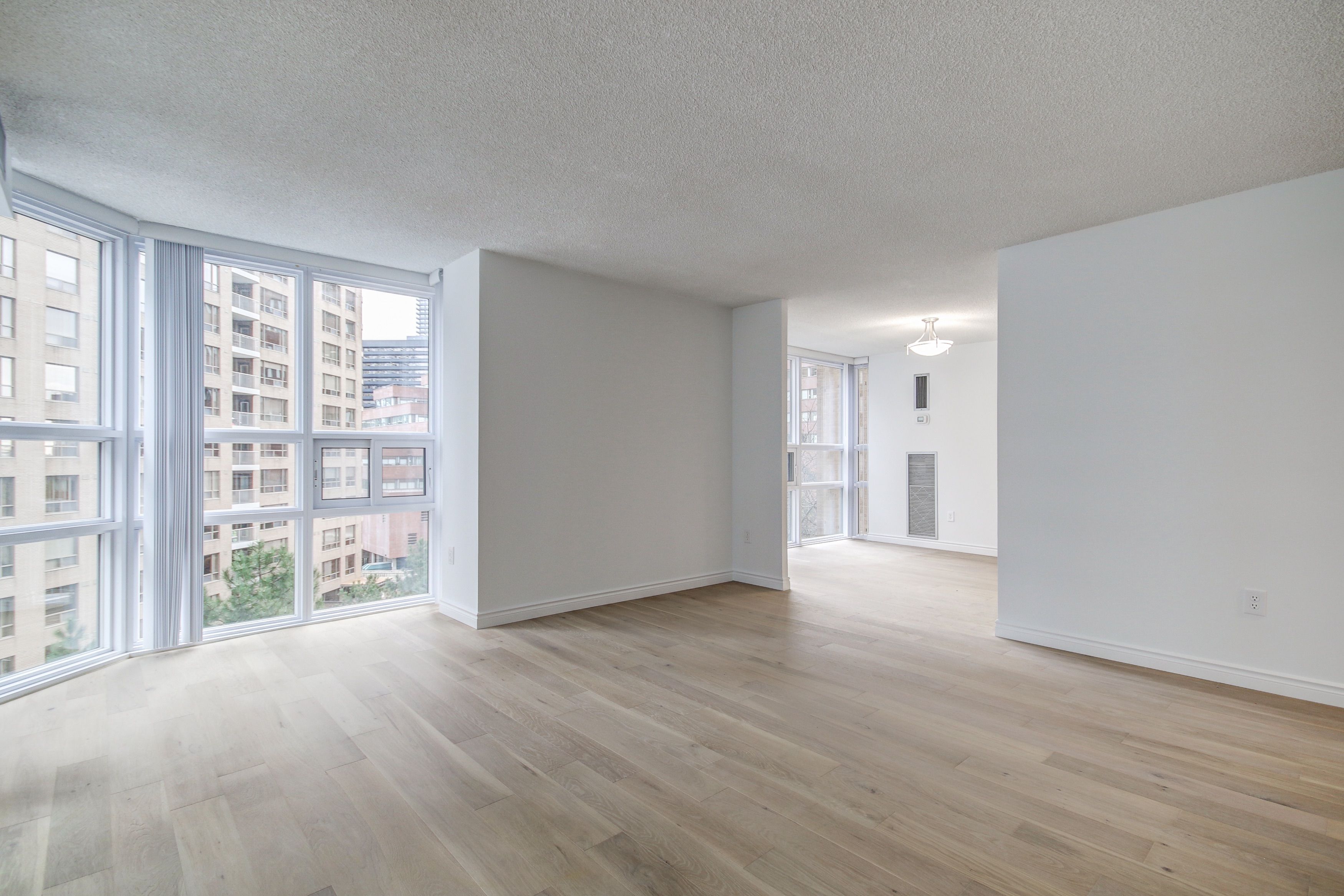 This may be the one you have been waiting for. Freshly completed, this major renovation of the 1,623 square foot Rockefeller layout delivers a rare opportunity for refined, resort style living within a superb condominium residence. Offering the generous proportions of a traditional Toronto home without stairs or maintenance, this exceptional suite is ideal for those seeking space, comfort, and timeless elegance. A gracious formal foyer welcomes you in, providing a sense of arrival and thoughtful separation between the hallway and main living areas. Generous room dimensions are enjoyed throughout, beginning with a brand new luxury eat in kitchen featuring full size stainless steel appliances, stone countertops, excellent pantry storage, and LED pot lighting. The kitchen overlooks the formal dining room, highlighted by floor to ceiling windows and rich hardwood flooring, creating an inviting setting for both everyday living and entertaining. Further into the suite, a large separate den/sunroom or family room offers remarkable flexibility, also enhanced by floor to ceiling, all new windows. This space is perfectly suited as a home office, media room, or multi purpose retreat tailored to your lifestyle. The desirable split bedroom layout provides excellent privacy. The primary bedroom is truly impressive, comfortably accommodating a king size bed and traditional furnishings, and featuring a generous walk in closet, a five piece ensuite, new floor to ceiling windows, and hardwood flooring. The second bedroom is equally spacious and refined, offering a double closet, floor to ceiling windows, and brand new hardwood flooring. A rare blend of scale, style, and turnkey living in an exceptional condominium setting.