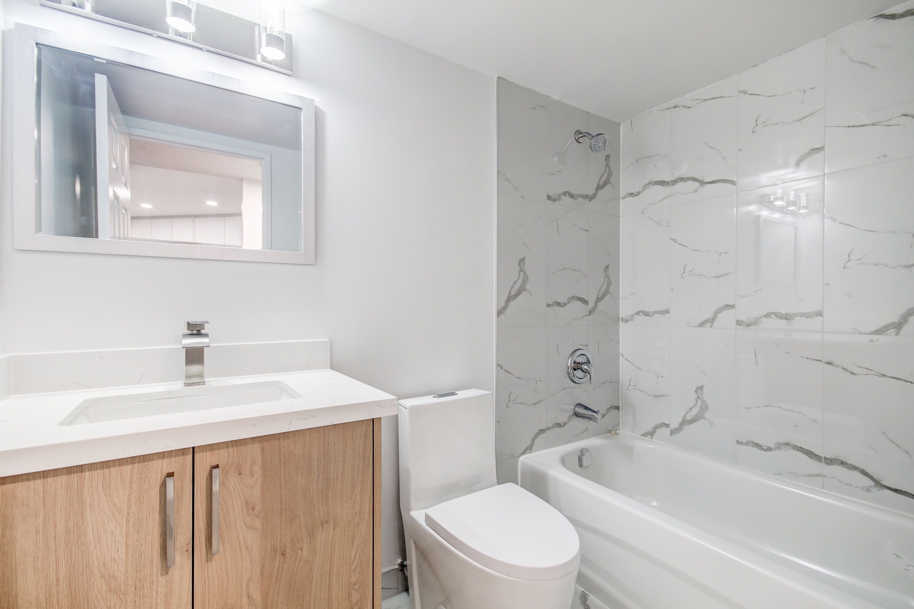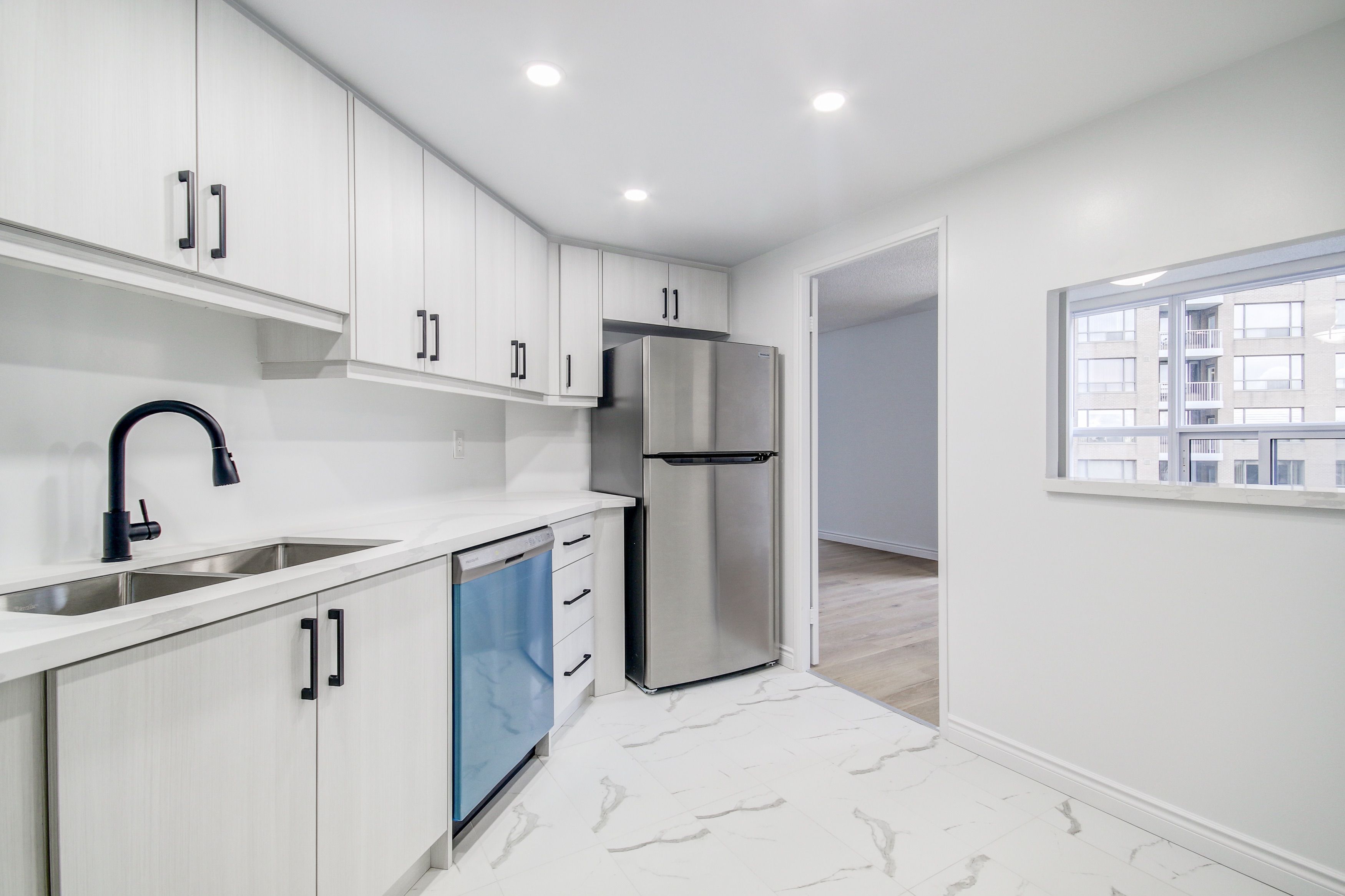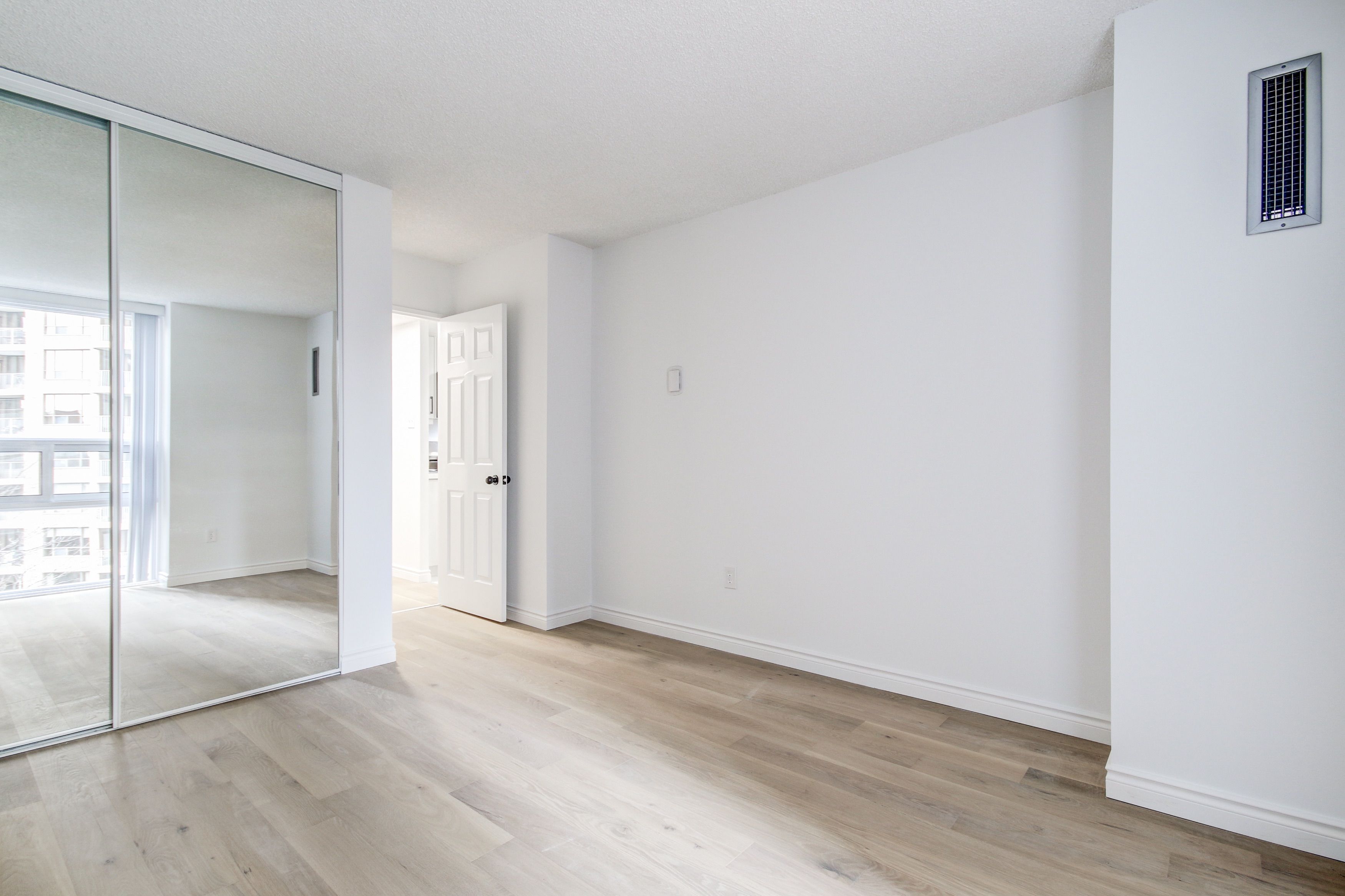 This may be the one you have been waiting for. Freshly completed, this major renovation of the 1,623 square foot Rockefeller layout delivers a rare opportunity for refined, resort style living within a superb condominium residence. Offering the generous proportions of a traditional Toronto home without stairs or maintenance, this exceptional suite is ideal for those seeking space, comfort, and timeless elegance. A gracious formal foyer welcomes you in, providing a sense of arrival and thoughtful separation between the hallway and main living areas. Generous room dimensions are enjoyed throughout, beginning with a brand new luxury eat in kitchen featuring full size stainless steel appliances, stone countertops, excellent pantry storage, and LED pot lighting. The kitchen overlooks the formal dining room, highlighted by floor to ceiling windows and rich hardwood flooring, creating an inviting setting for both everyday living and entertaining. Further into the suite, a large separate den/sunroom or family room offers remarkable flexibility, also enhanced by floor to ceiling, all new windows. This space is perfectly suited as a home office, media room, or multi purpose retreat tailored to your lifestyle. The desirable split bedroom layout provides excellent privacy. The primary bedroom is truly impressive, comfortably accommodating a king size bed and traditional furnishings, and featuring a generous walk in closet, a five piece ensuite, new floor to ceiling windows, and hardwood flooring. The second bedroom is equally spacious and refined, offering a double closet, floor to ceiling windows, and brand new hardwood flooring. A rare blend of scale, style, and turnkey living in an exceptional condominium setting.