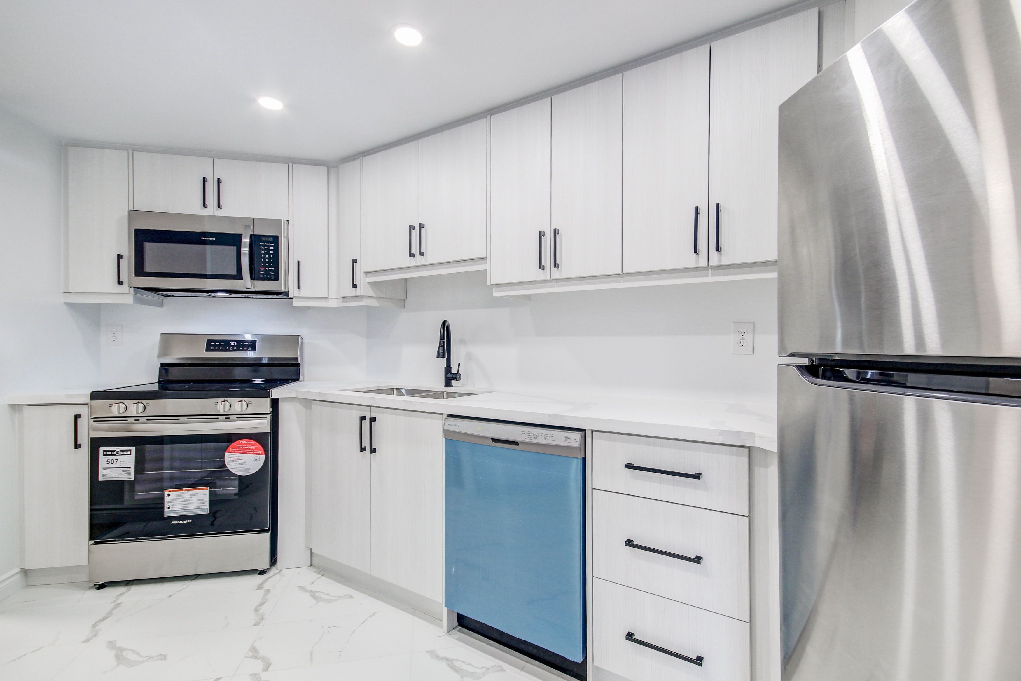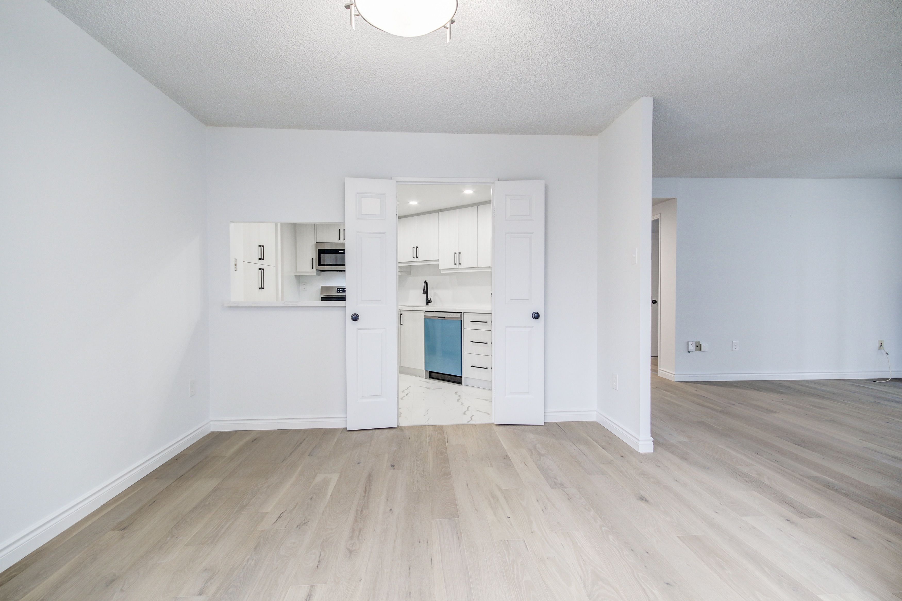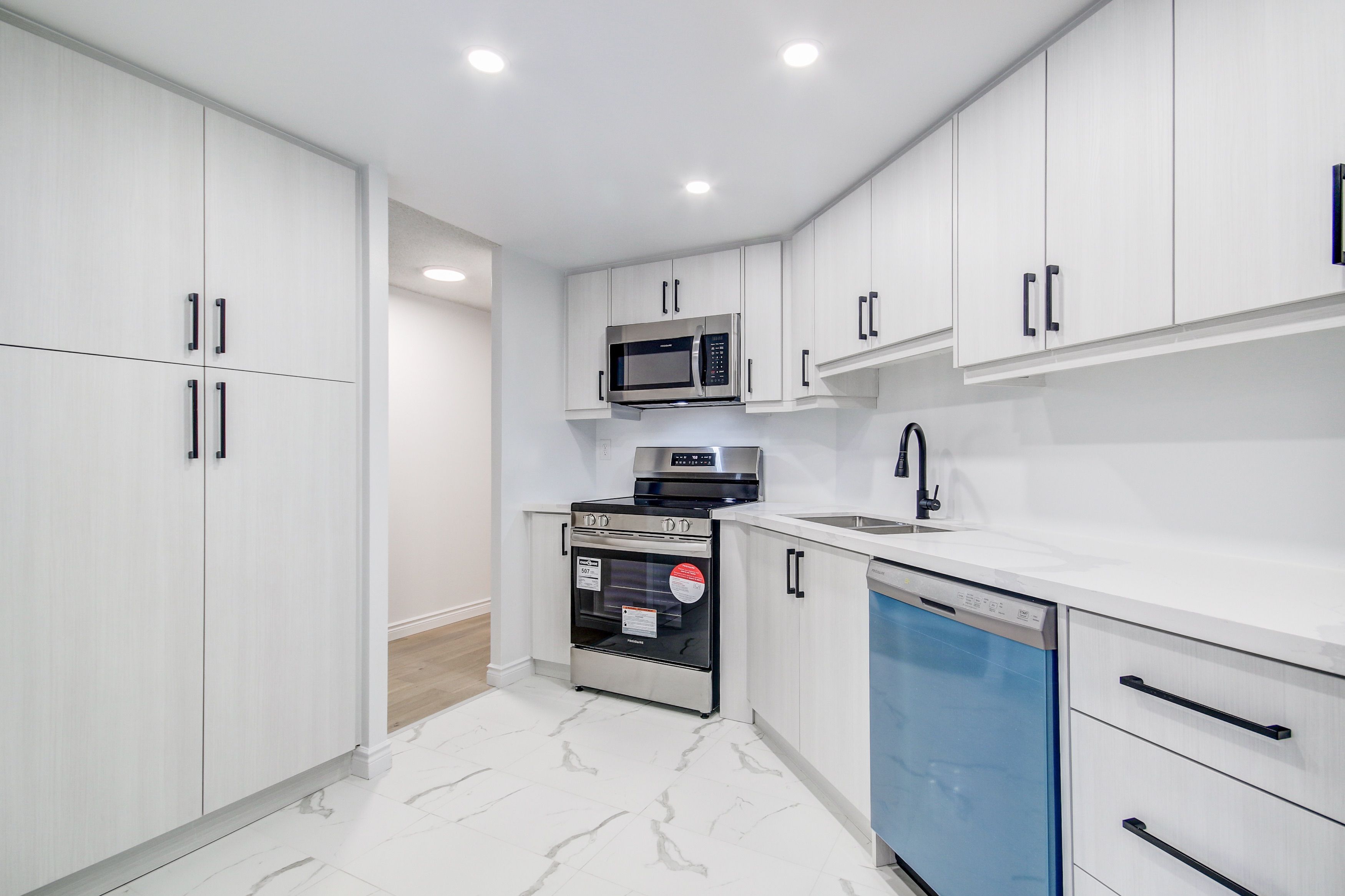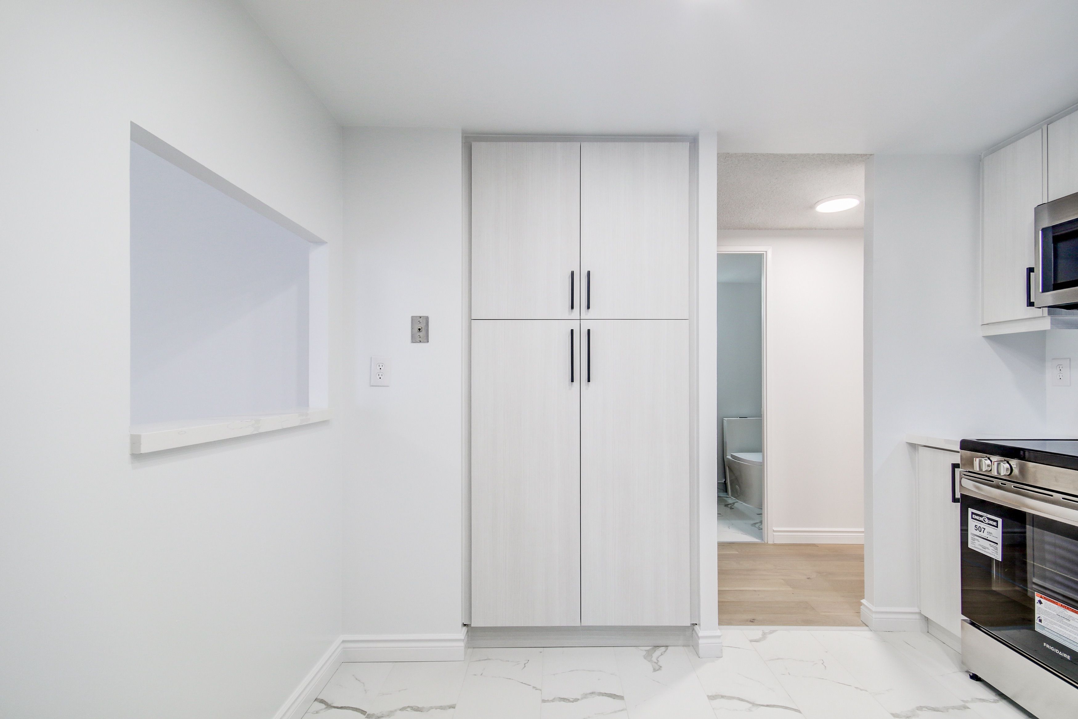 This may be the one you have been waiting for. Freshly completed, this major renovation of the 1,623 square foot Rockefeller layout delivers a rare opportunity for refined, resort style living within a superb condominium residence. Offering the generous proportions of a traditional Toronto home without stairs or maintenance, this exceptional suite is ideal for those seeking space, comfort, and timeless elegance. A gracious formal foyer welcomes you in, providing a sense of arrival and thoughtful separation between the hallway and main living areas. Generous room dimensions are enjoyed throughout, beginning with a brand new luxury eat in kitchen featuring full size stainless steel appliances, stone countertops, excellent pantry storage, and LED pot lighting. The kitchen overlooks the formal dining room, highlighted by floor to ceiling windows and rich hardwood flooring, creating an inviting setting for both everyday living and entertaining. Further into the suite, a large separate den/sunroom or family room offers remarkable flexibility, also enhanced by floor to ceiling, all new windows. This space is perfectly suited as a home office, media room, or multi purpose retreat tailored to your lifestyle. The desirable split bedroom layout provides excellent privacy. The primary bedroom is truly impressive, comfortably accommodating a king size bed and traditional furnishings, and featuring a generous walk in closet, a five piece ensuite, new floor to ceiling windows, and hardwood flooring. The second bedroom is equally spacious and refined, offering a double closet, floor to ceiling windows, and brand new hardwood flooring. A rare blend of scale, style, and turnkey living in an exceptional condominium setting.