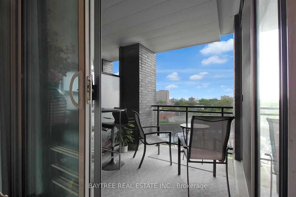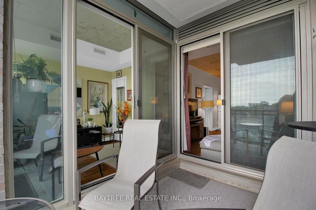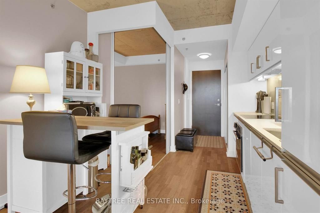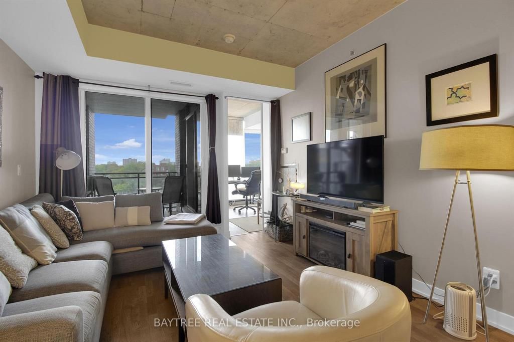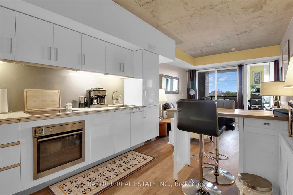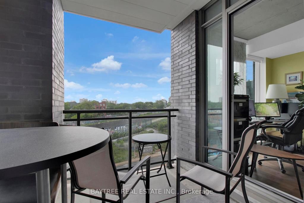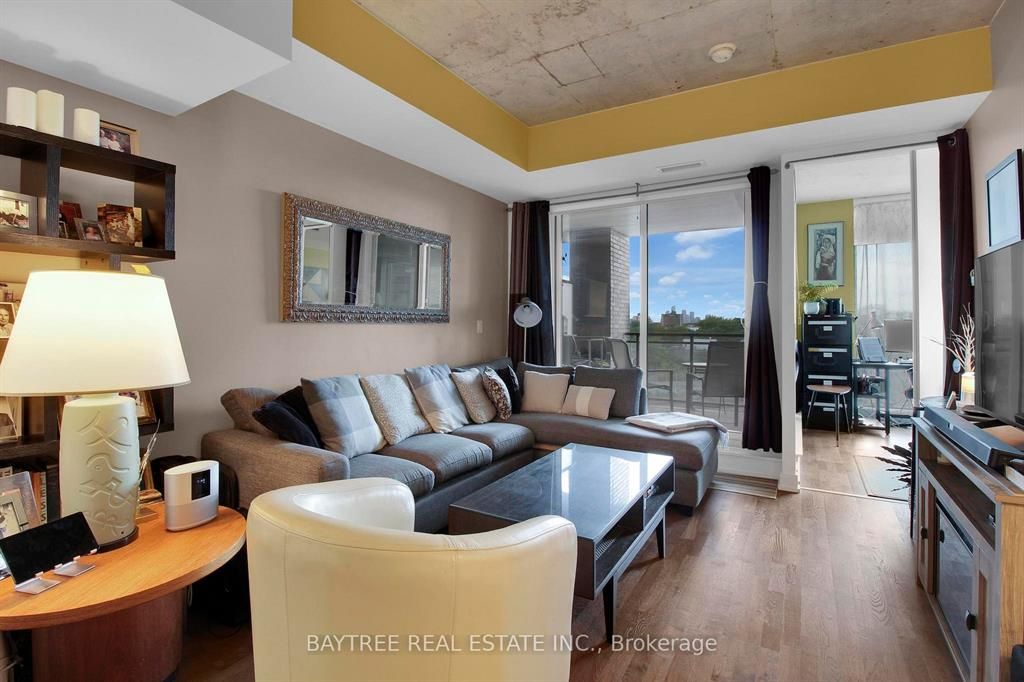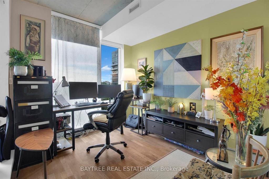 Stunning 1+1 Featuring a den large enough to be a bedroom and a walk in closet! Unit also has Parking, Floor To Ceiling Windows, Hardwood Floors, And State Of The Art Built In Appliances. Generous Closet Space And Ensuite Laundry. Open balcony and west exposure brings in lots of natural light! Situated Steps From Queen Street, Exhibition Station, Liberty Village, Bmo Field, Restaurants, And Grocery Stores. Walking Distance To Trinity Bellwoods Park And Toronto's Waterfront Trail.