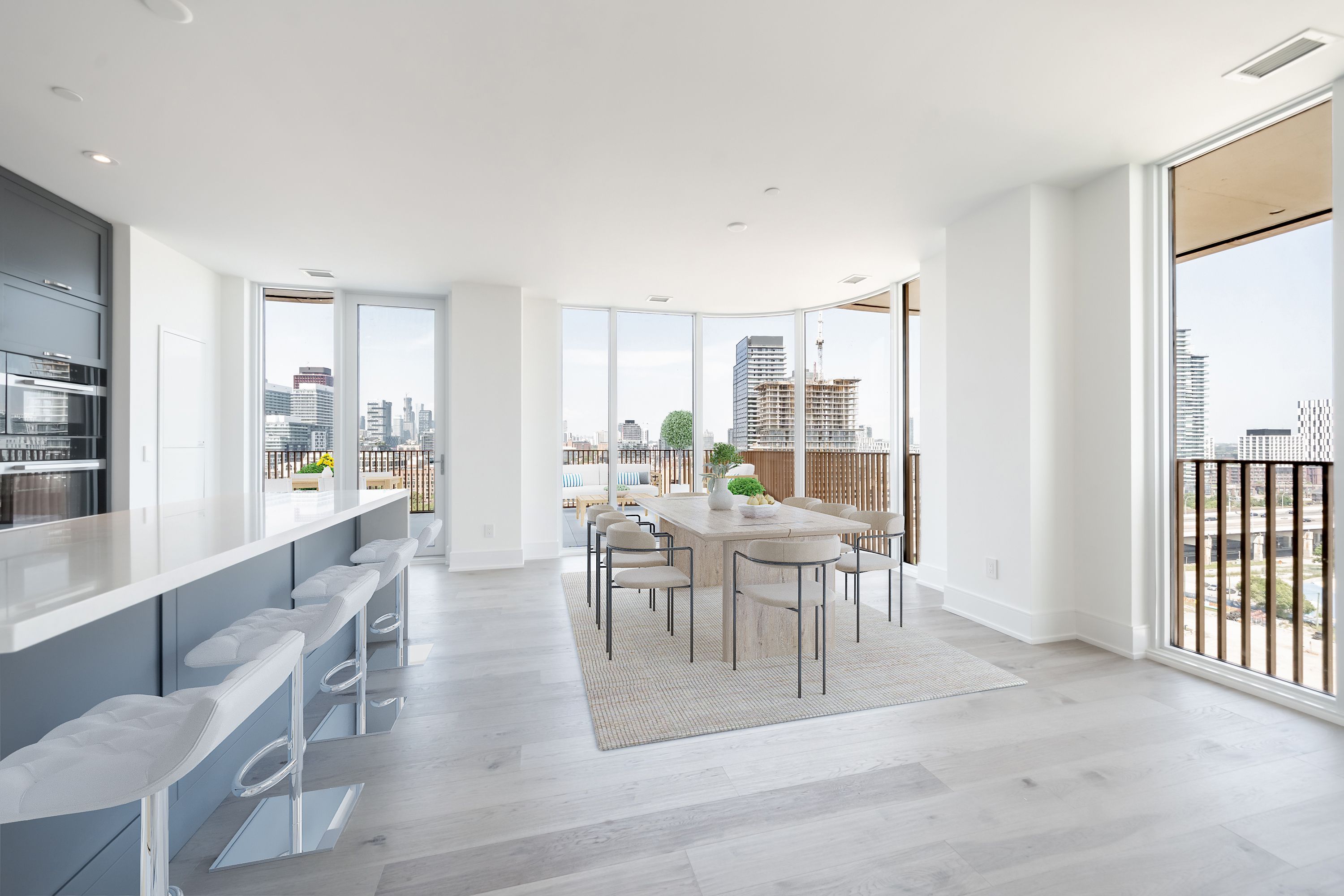 Welcome to Aqualuna, the 4th building and final opportunity to live in the highly sought-after Bayside Toronto community, the Pinnacle of luxurious waterfront living. Designed by renowned Danish architects 3XN, Aqualuna's bold balconies, sweeping terraces, and striking architecture create an unmistakable presence across the downtown skyline. This Breathtaking suite offers nearly 1,500 sq. ft. of interior space, paired with a 455 sq. ft. private terrace with a gas connection for BBQ. Outstanding luxury with Soaring 10 ft. smooth ceilings, wide rich-wood plank floors, and luxury Miele appliances with a large island. The split-bedroom layout ensures privacy, with both bedrooms featuring their own ensuites with heated floors and walk-in closets. One owned parking space and Locker is included. Aqualuna offers first-class amenities: a state-of-the-art fitness centre, yoga/stretch studio, outdoor pool, rooftop patio, entertainment and games rooms, steam rooms, and guest suites. East Bayfront Community Recreation Centre with basketball, pickleball, table tennis, running track and much more...Lake Ontario, Sugar Beach, Distillery District, St. Lawrence Market, LCBO, Loblaws, and Queens Quay, with easy access to the DVP and PATH. Condo Fee Includes Internet.********THIS IS NOT AN ASSIGNMENT SALE********* some Images are virtually staged.