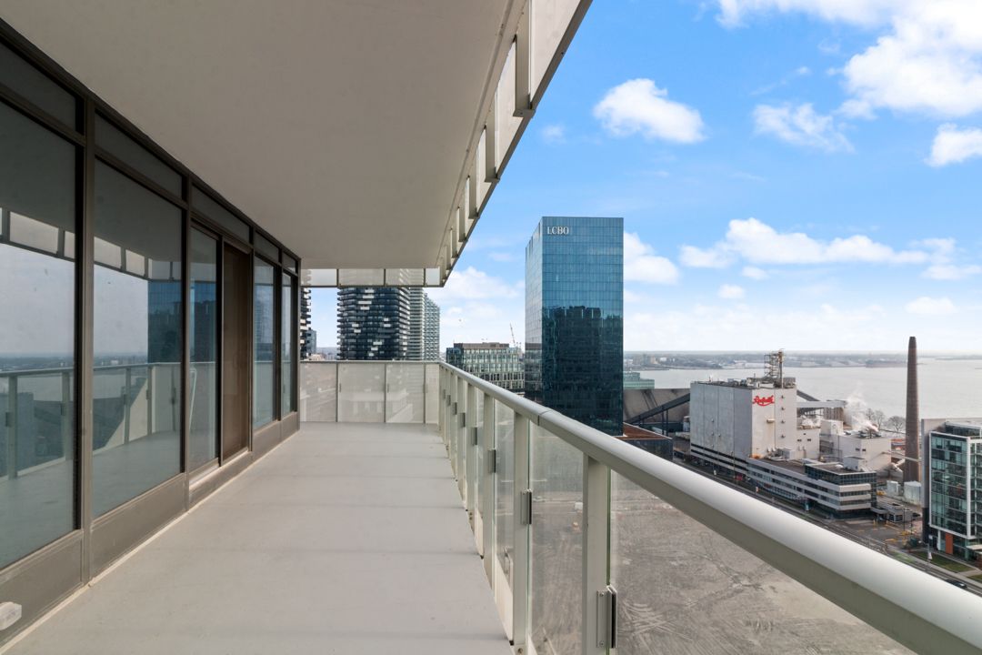 Spectacular corner suite w/breathtaking unobstructed lake views in Toronto's sought-after South Core Waterfront community! This generous family-sized 2 Bdrm + Den offers wrap-around balcony perfect for entertaining. Bright open-concept living/dining flows seamlessly into modern kitchen w/abundant natural light thruout. Versatile den ideal for home office or nursery. Well-appointed bdrms offer comfortable retreats for the whole family.Nestled in one of downtown Toronto's most prestigious addresses, 28 Freeland Street is a landmark tower offering residents an unparalleled lifestyle experience. The building features a stunning array of world-class amenities incl a state-of-the-art fitness centre, indoor pool, rooftop terrace, party/entertainment room, theatre room, guest suites, 24-hr concierge & security. Beautifully designed common areas & meticulously maintained bldg managed by DEL Property Management ensure effortless condo living at its finest.Located steps to the waterfront, Sugar Beach, Union Stn, Financial District, St. Lawrence Market, top-rated restaurants, shops & entertainment. Easy access to Gardiner Expwy, Lakeshore Blvd & TTC. Everything downtown Toronto has to offer is right at your doorstep! Incl 1 parking & 1 locker.