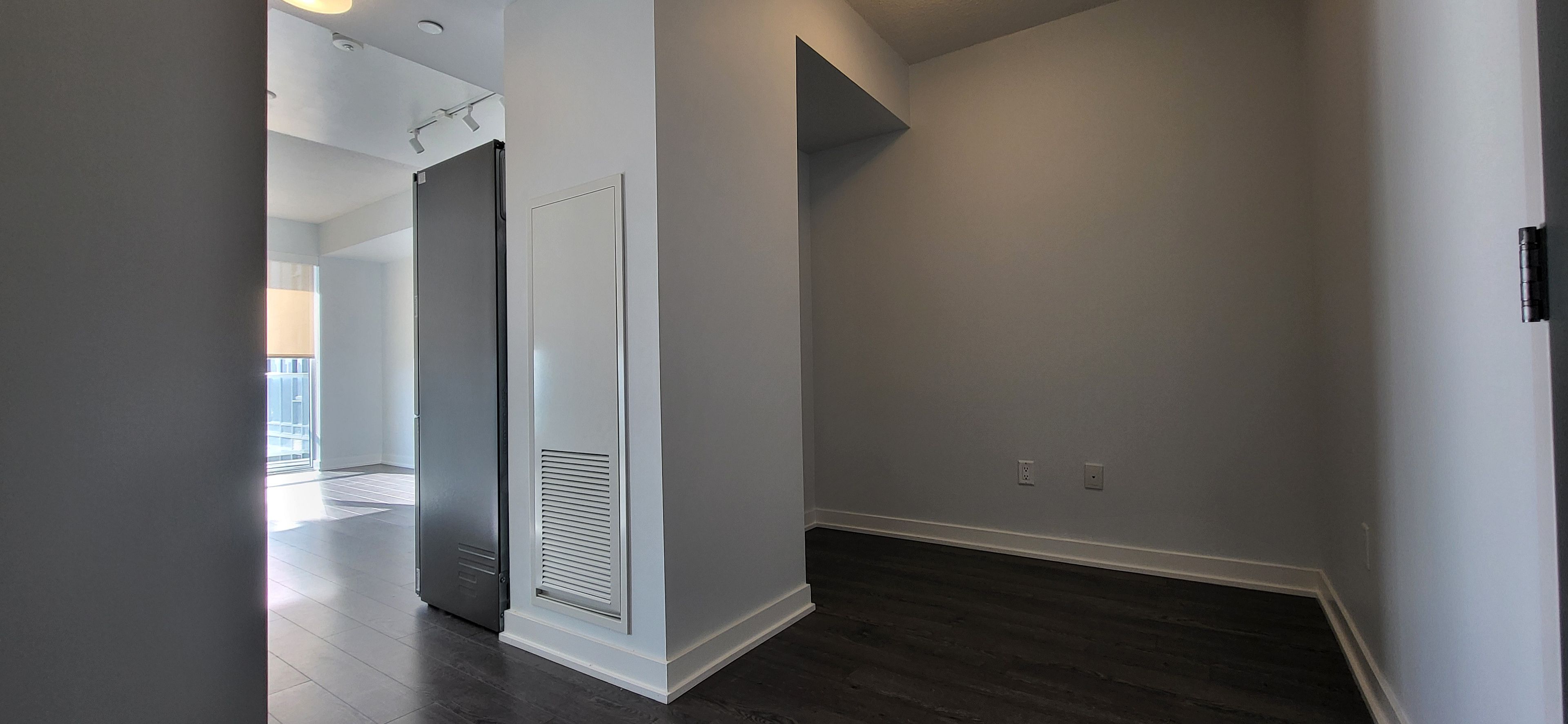 Prime location - Newly Painted 1 Bed + Den / 1 Bath unit at Rodeo 2. Functional Layout and a huge balcony. Conveniently located near shops on Don Mills. Steps to Restaurants, Shopping, Entertainment, Theatre and Supermarket. Floor to ceiling windows, Laminate floors.