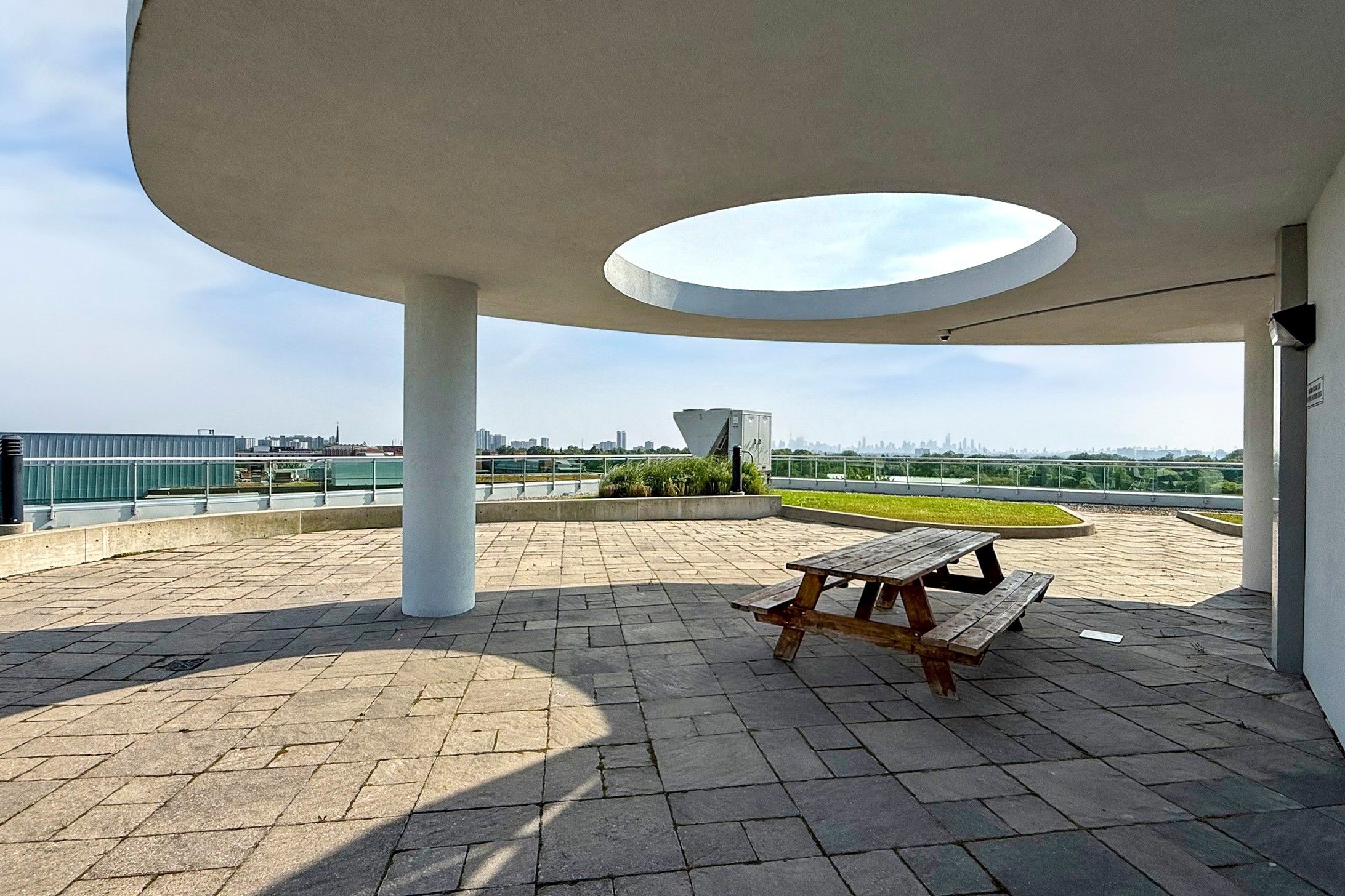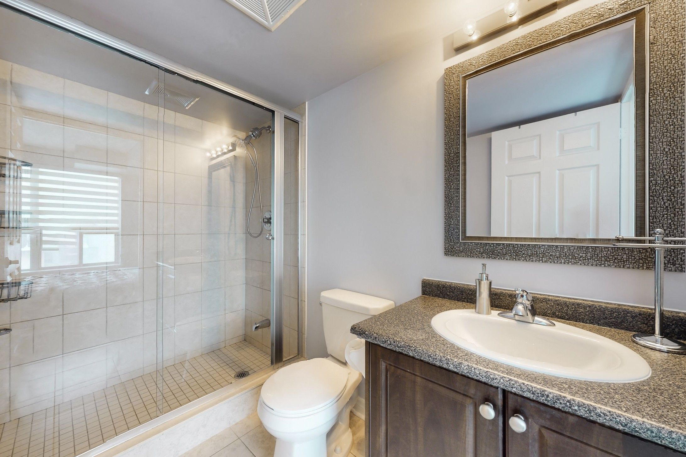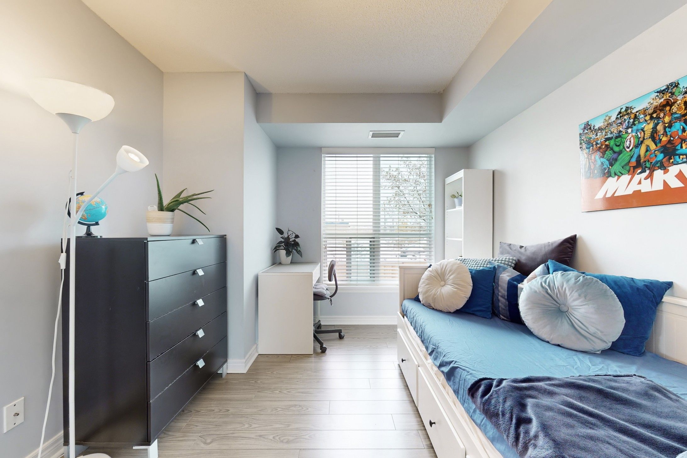 Steps from Warden Subway Station, the Wilshire on the Green offers bright and spacious living with over 800 square feet of well-designed space. This two-bedroom, two-bathroom corner suite combines modern finishes with functional flow, perfect for comfortable city living. The kitchen features, stainless steel appliances, a breakfast bar, and ample cabinetry, opening into a sun-filled living and dining area with a walkout to a private balcony showcasing clear, unobstructed views. The primary bedroom includes a private ensuite, while the second bedroom offers flexibility for guests, a home office, or family use. Laminate flooring and neutral tones throughout create a move-in-ready atmosphere.This home includes one parking space and one locker for added convenience. Residents of Wilshire on the Green enjoy quality amenities, including a fully equipped fitness centre, a rooftop terrace with gardens and panoramic views, and a party room designed for gatherings.Located steps from Warden Subway Station, the building offers unmatched transit access to downtown Toronto and surrounding areas. Nearby, you'll find Eglinton Square Mall, grocery stores, cafes, dining options, parks, and walking trails. Blends comfort, lifestyle, and convenience in a thriving, transit-friendly community.