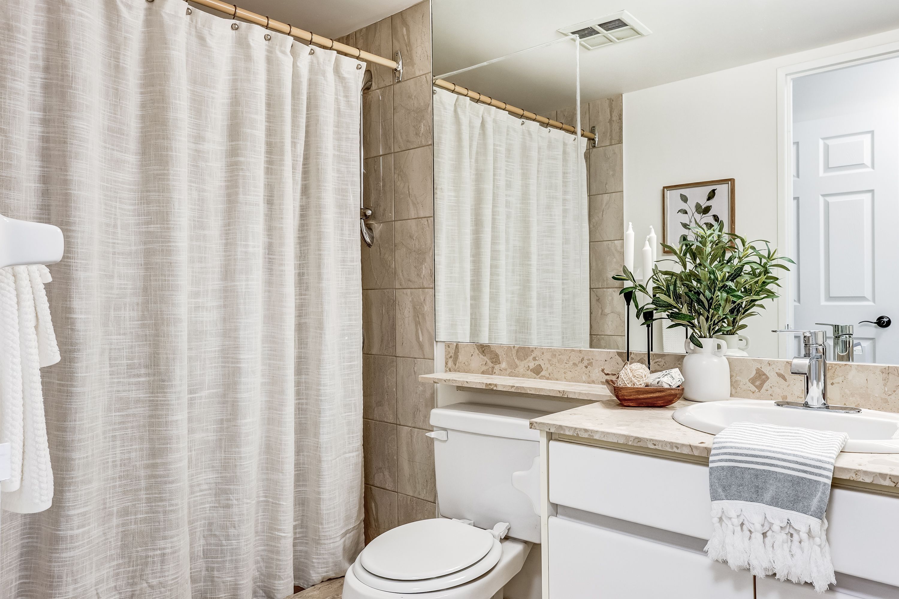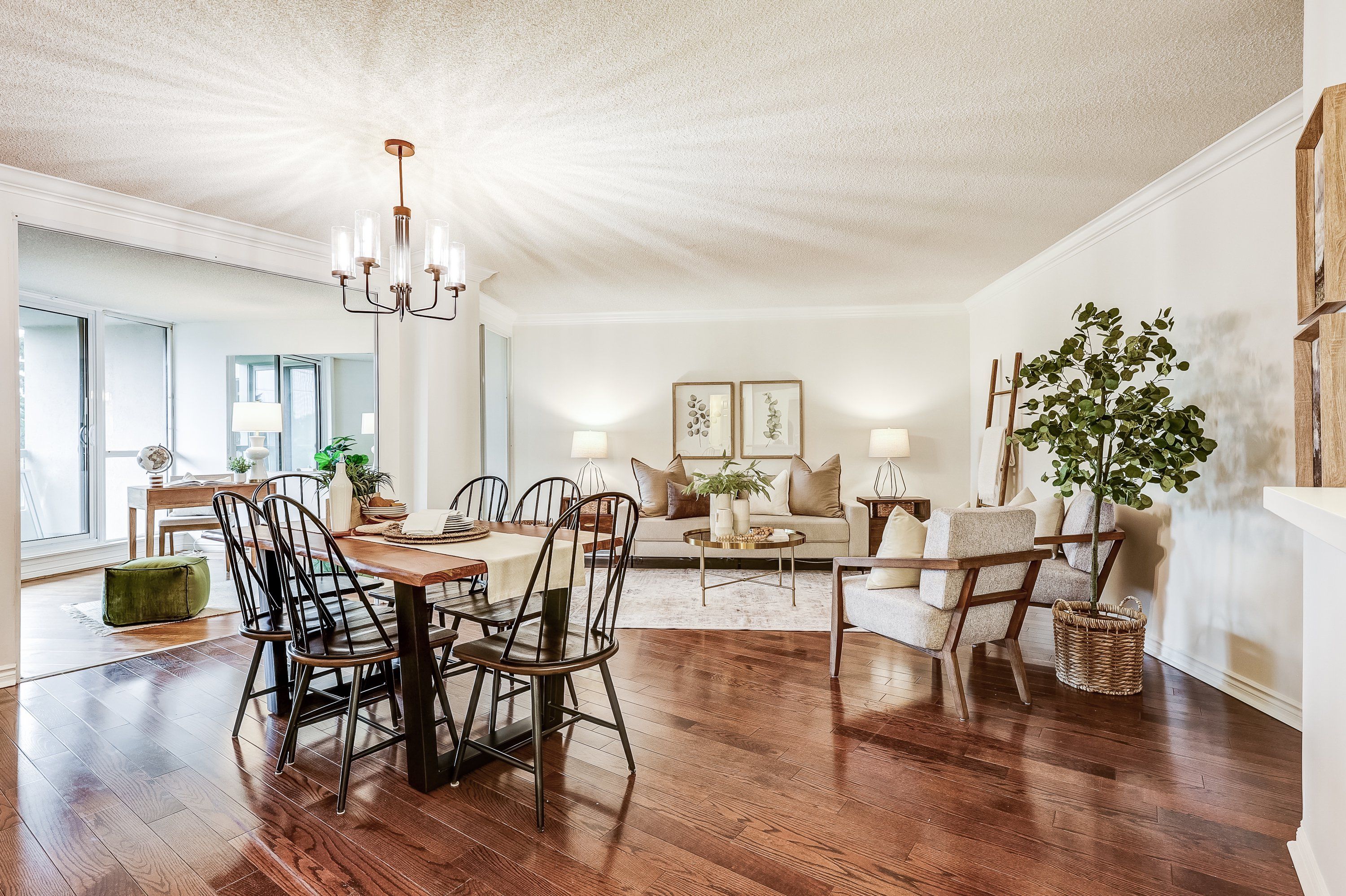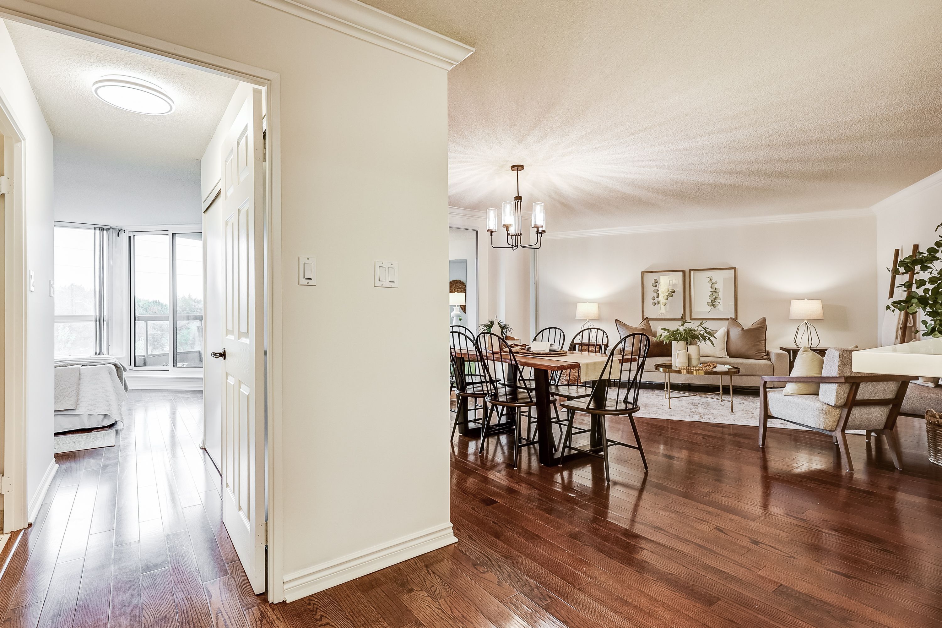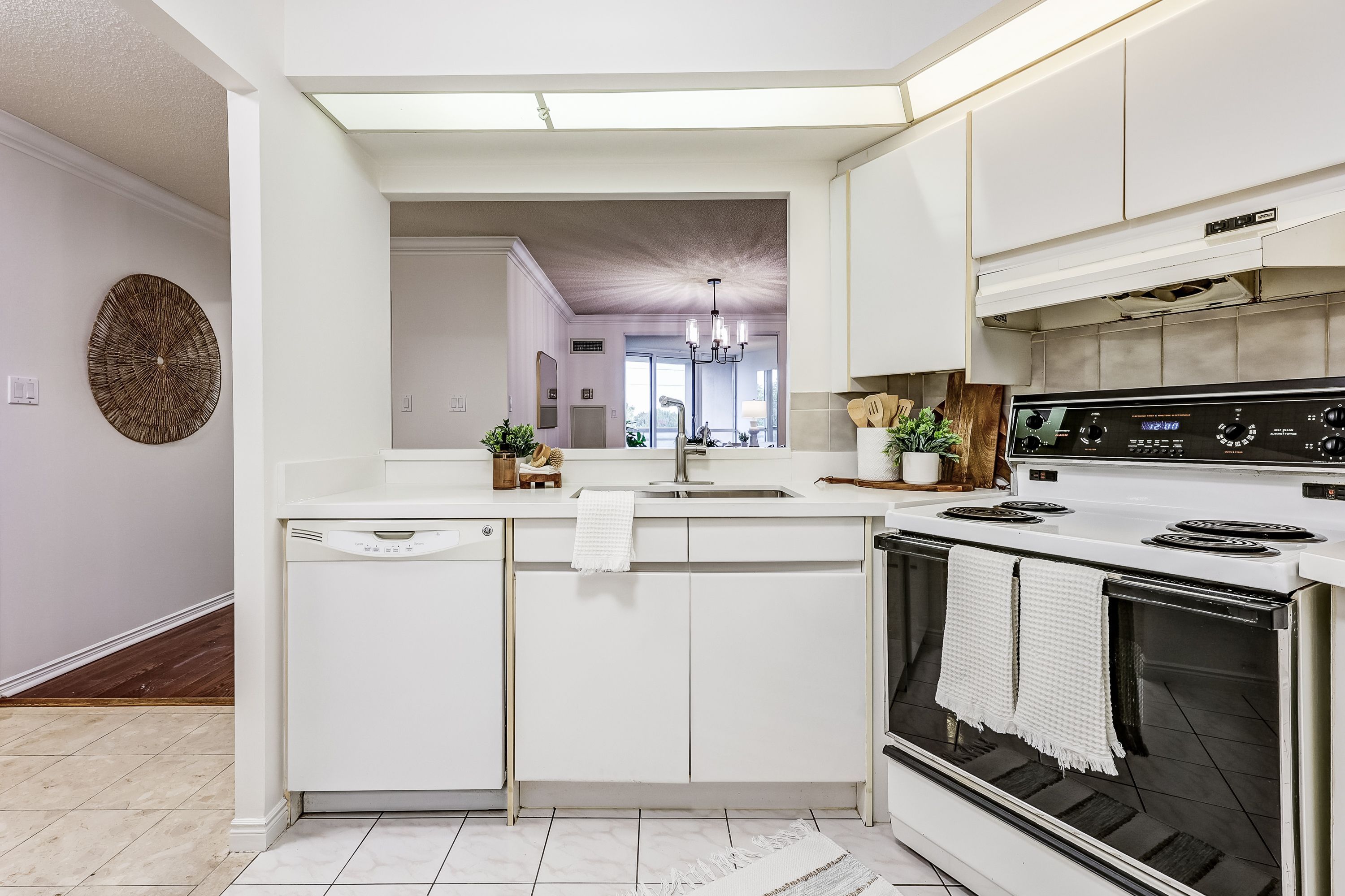 Welcome to Luxury Resort-Style Living at the Prestigious Gates of Guildwood! Experience unmatched comfort and refined elegance in this beautifully updated and freshly painted 1+1 bedroom suite. This thoughtfully designed condo features a spacious eat-in kitchen adorned with stunning quartz countertops, a modern stainless-steel undermount sink, and a breakfast bar, ideal for casual dining or effortless entertaining. The open-concept layout, complemented by gleaming hardwood floors, flows seamlessly into a sunlit den, perfect for a home office, guest room, or additional bedroom. Enjoy direct access to your own private balcony from both the inviting den and generously sized primary bedroom, offering a tranquil escape for morning coffee or evening relaxation. The primary bedroom features ample storage space with his-and-hers closets and a tastefully renovated 3-piece ensuite complete with a walk-in shower. Marked by exceptional value, this suite includes owned tandem parking for two vehicles, emphasizing quality per square foot far superior to newer constructions. Indulge in a truly resort-like lifestyle with world-class amenities, including an indoor pool, whirlpool, gym, squash, pickleball and tennis courts, billiards room, indoor golf chipping nets and outdoor putting green, library room, meeting room and an active calendar of social events. All set within beautifully landscaped award-winning grounds, featuring picturesque gardens and outdoor BBQ patios. Experience worry-free living with all-inclusive maintenance fees covering heat, hydro, water, internet, and cable. Additional offerings include guest suites, a lively party/meeting room, and 24/7 gatehouse security for your peace of mind. Ideally situated just steps away from TTC, GO Transit, serene parks, diverse shopping options, scenic waterfront trails, and the historic Guild Inn Estate, this condo is not merely a residence but a gateway to a lifestyle defined by elegance and convenience!