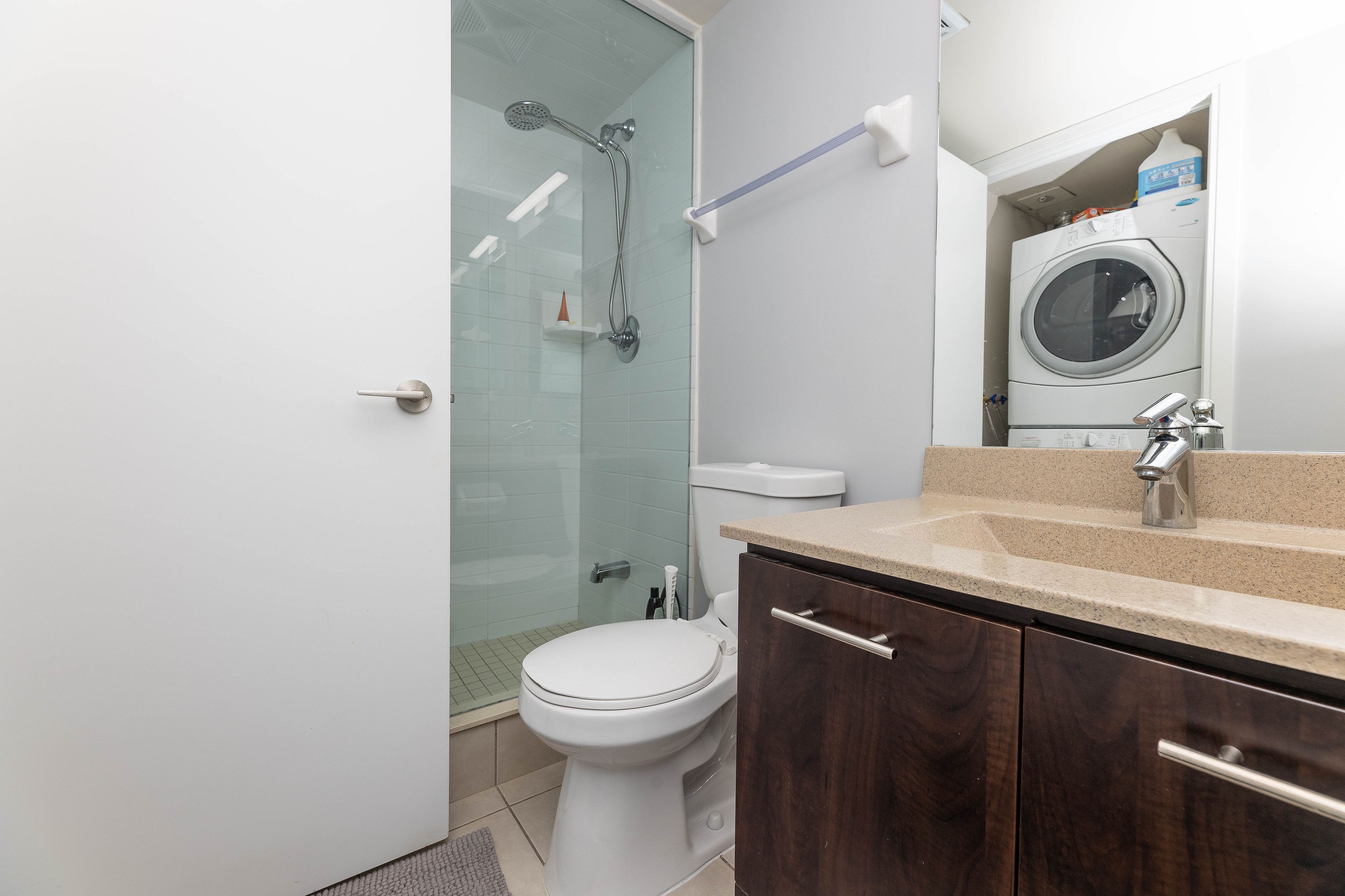 Welcome to this beautifully maintained two-bedroom, two-bathroom condominium situated on the39th floor, offering a spacious balcony with unobstructed city views. One parking space is included, conveniently located on the second level. Residents enjoy 24/7 security and concierge service, with added convenience for package handling.The building features an impressive selection of amenities on the fifth floor, including a fully equipped fitness centre, outdoor BBQ and patio area, swimming pool, hot tub, sauna, and steam room. The unit offers a functional layout with modern finishes, remote-controlled blinds, and in-suite laundry, along with stainless steel kitchen appliances including a stove, fridge, dishwasher, and microwave.Additional building amenities include a movie theatre, study and lounge areas, party room, guest suites, and ample visitor parking. A well-managed building offering comfort, convenience, and resort-style living in the heart of the city.