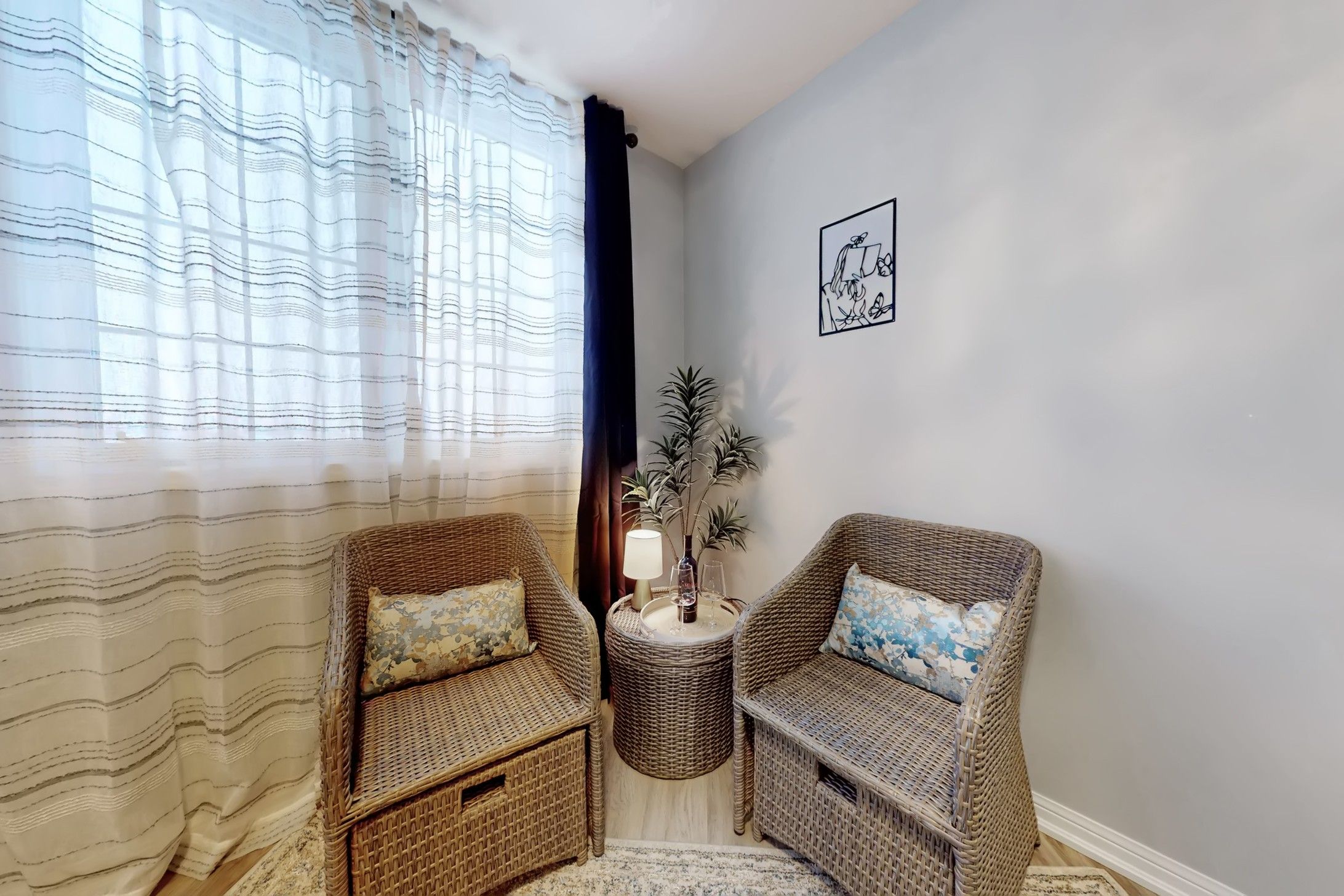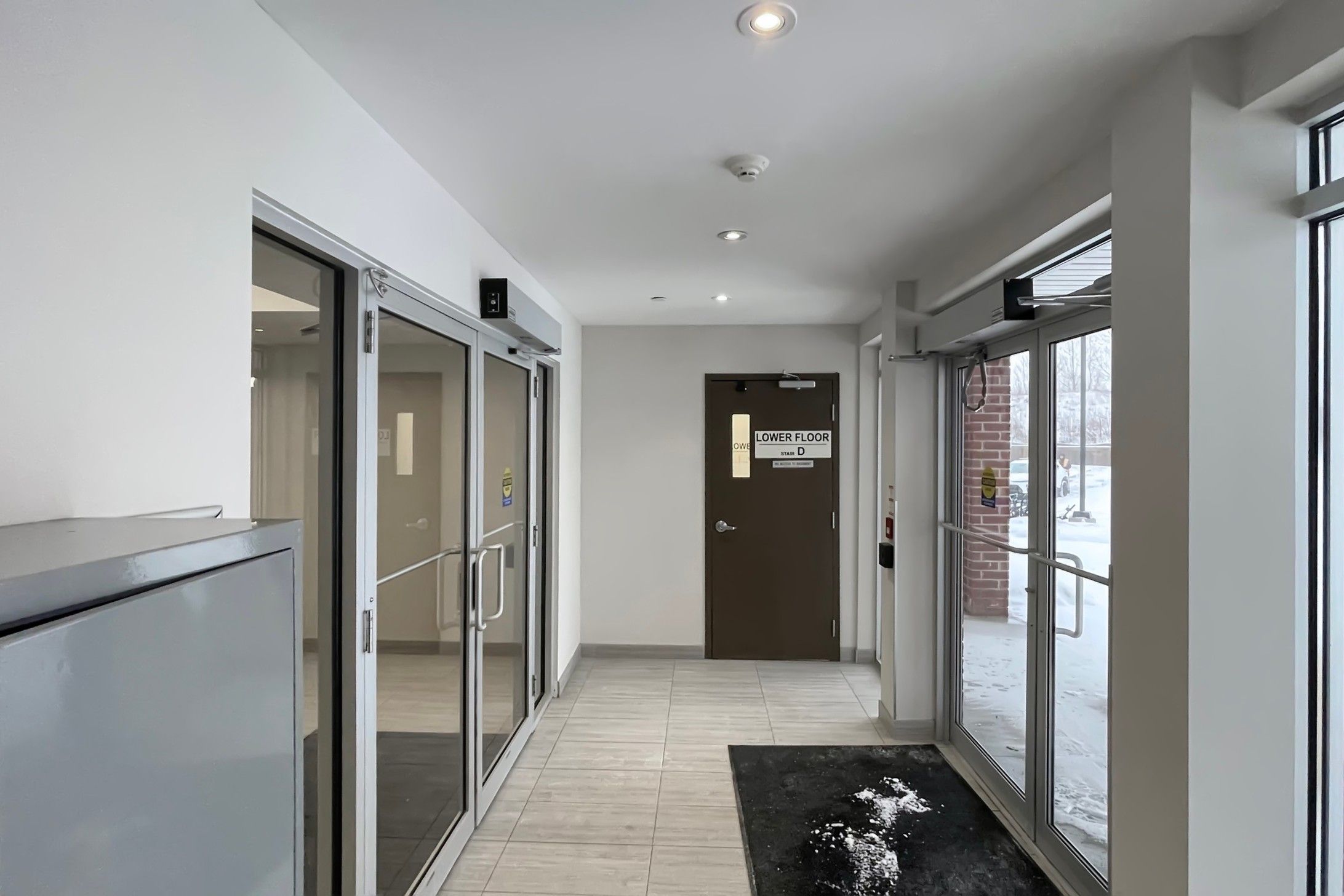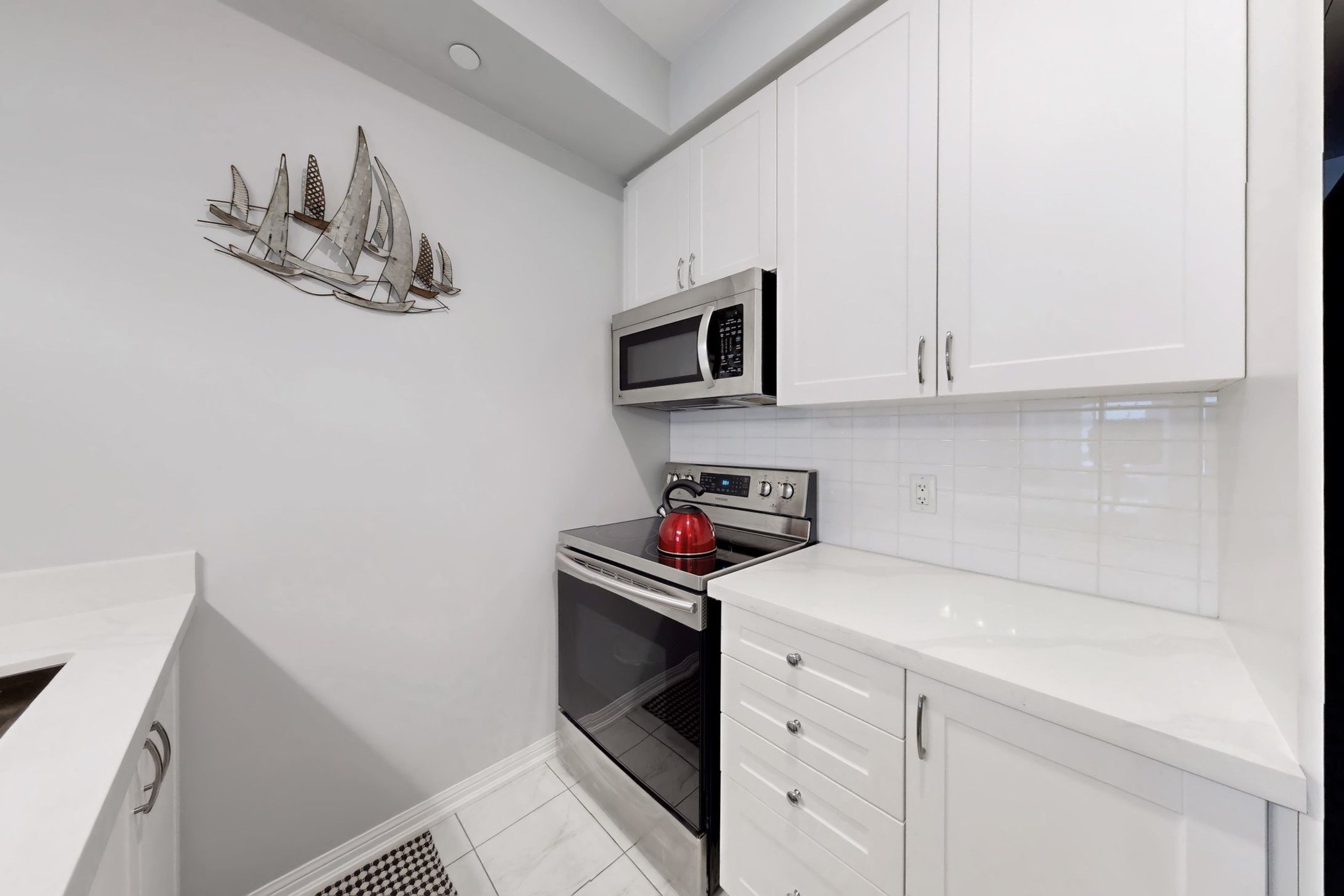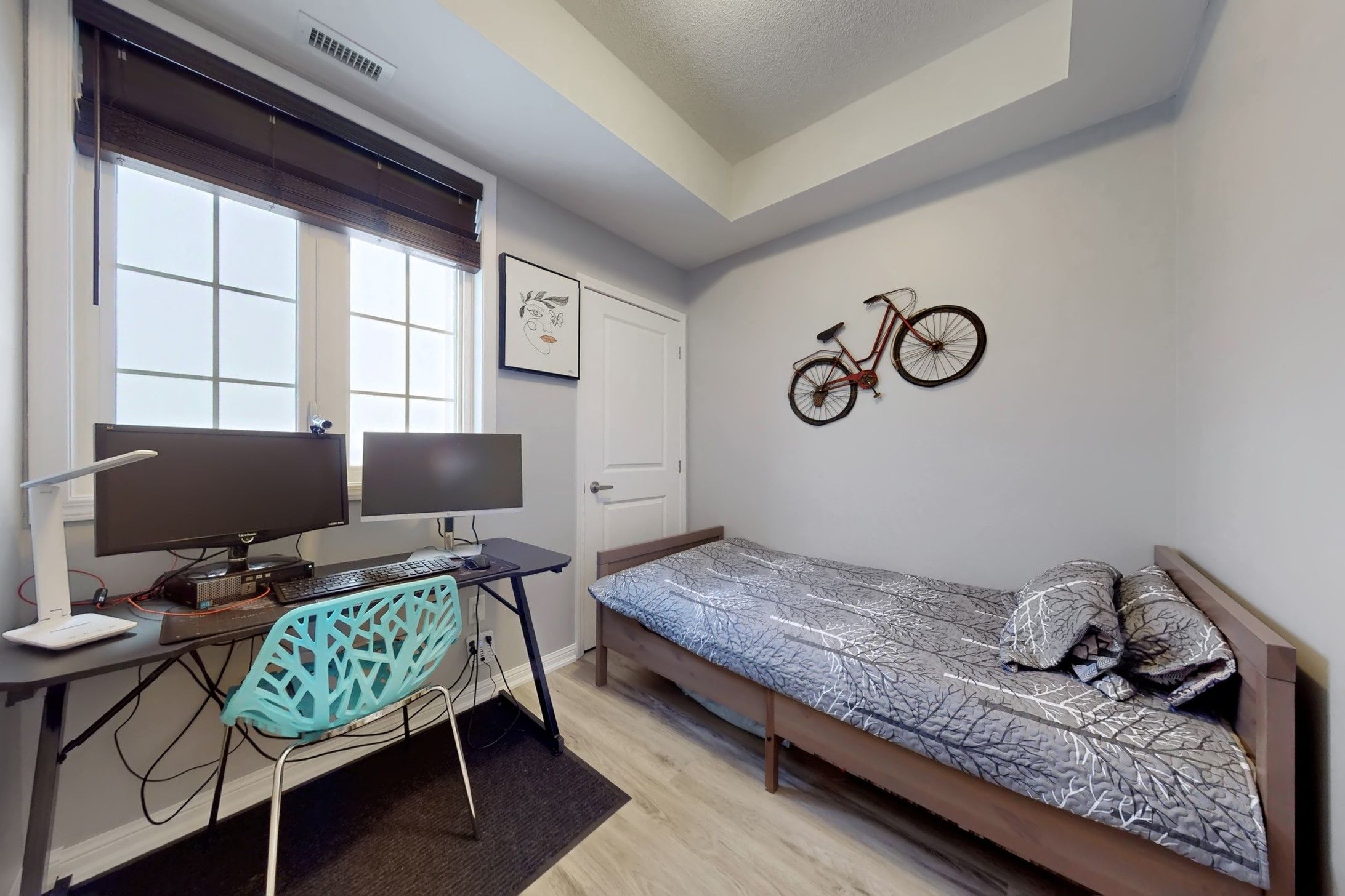 Absolutely stunning and rarely offered top-floor 1+1 bedroom unit. Well-maintained building with elevator. Featuring all stainless steel appliances, quartz countertops, and a breakfast bar. Enjoy a spacious living and dining area with walkout to a private balcony. The primary bedroom retreat offers a semi-ensuite and two closets. This unit provides a rare and generous amount of storage space. The den can easily be used as a second bedroom, home office, or flex space. Conveniently located close to schools, shopping, public transit, and Hwy 401 for commuters.