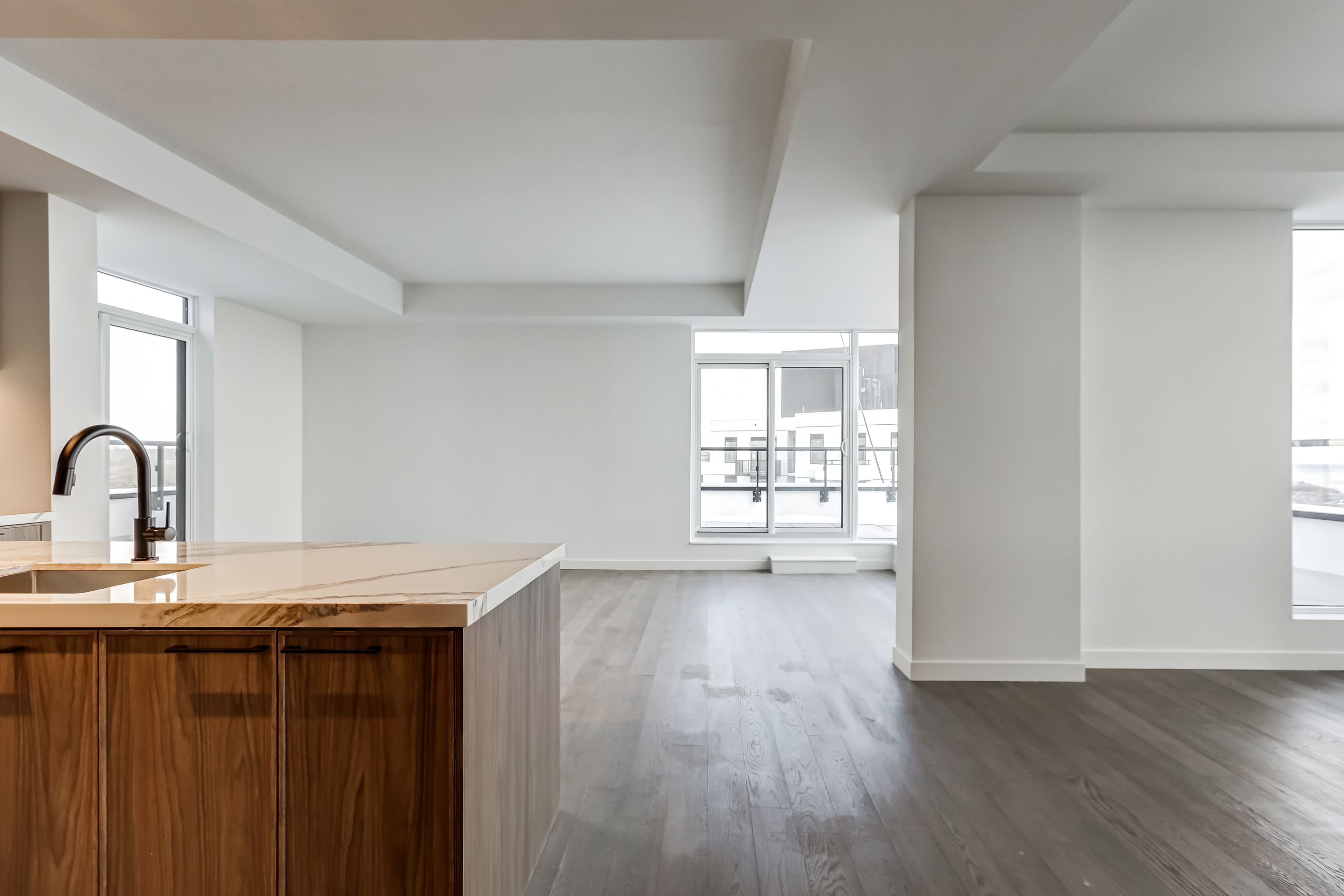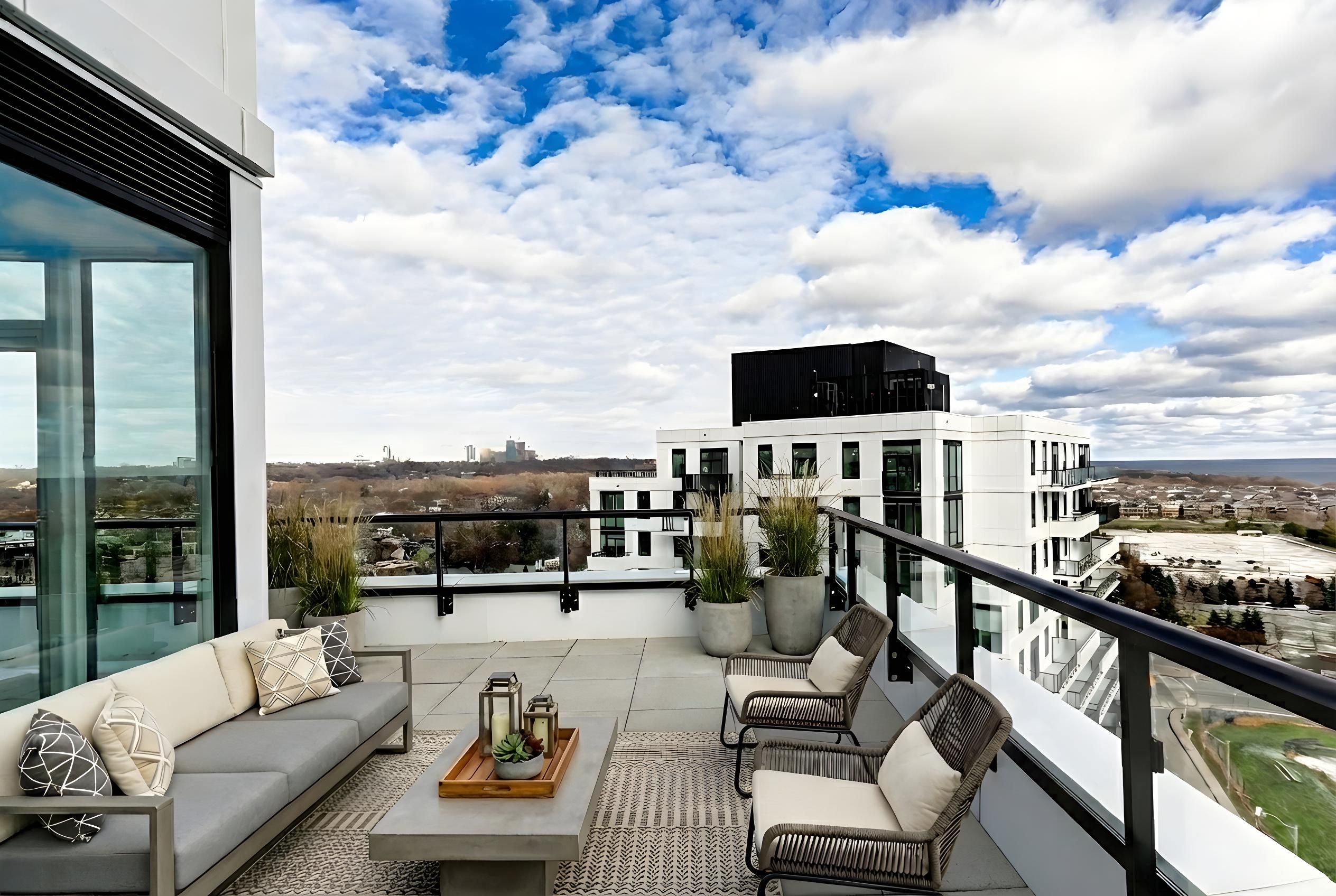 Commanding a premier southeast exposure over the protected expanse of Woodbine Park, Ashbridges Bay, and Lake Ontario, this exceptional terrace residence at QA Condominiums represents a rare convergence of architectural excellence, scale, and waterfront serenity. Developed by Context Developments & RioCan and designed by Teeple Architects with interiors by Mason Studio, the building stands as a landmark of contemporary design along Toronto's most coveted shoreline. Encompassing approximately 1,625 sq ft of refined interior space, complemented by an extraordinary 625 sq ft private terrace, the residence offers a seamless dialogue between indoor and outdoor living. Expansive glazing fills the principal rooms with natural light while framing uninterrupted lake and park vistas. The terrace, equipped with gas, water, and electrical service, provides an exceptional setting for sophisticated entertaining or quiet retreat.A gracious foyer introduces expansive living and dining spaces designed with both elegance and intention. The bespoke kitchen features integrated Miele appliances, quartz surfaces, and clean architectural lines. The thoughtfully designed split-bedroom layout ensures privacy, while the primary suite offers a tranquil sanctuary with walk-in closet and spa-inspired ensuite. Abundant storage and timeless finishes complete the home. Residents enjoy 24-hour concierge, a fitness and wellness centre, rooftop entertaining spaces, guest suites, and landscaped gardens. Perfectly positioned between Leslieville and The Beach, steps to the waterfront, boardwalk, cafés, and TTC. Includes 1 parking and private storage.