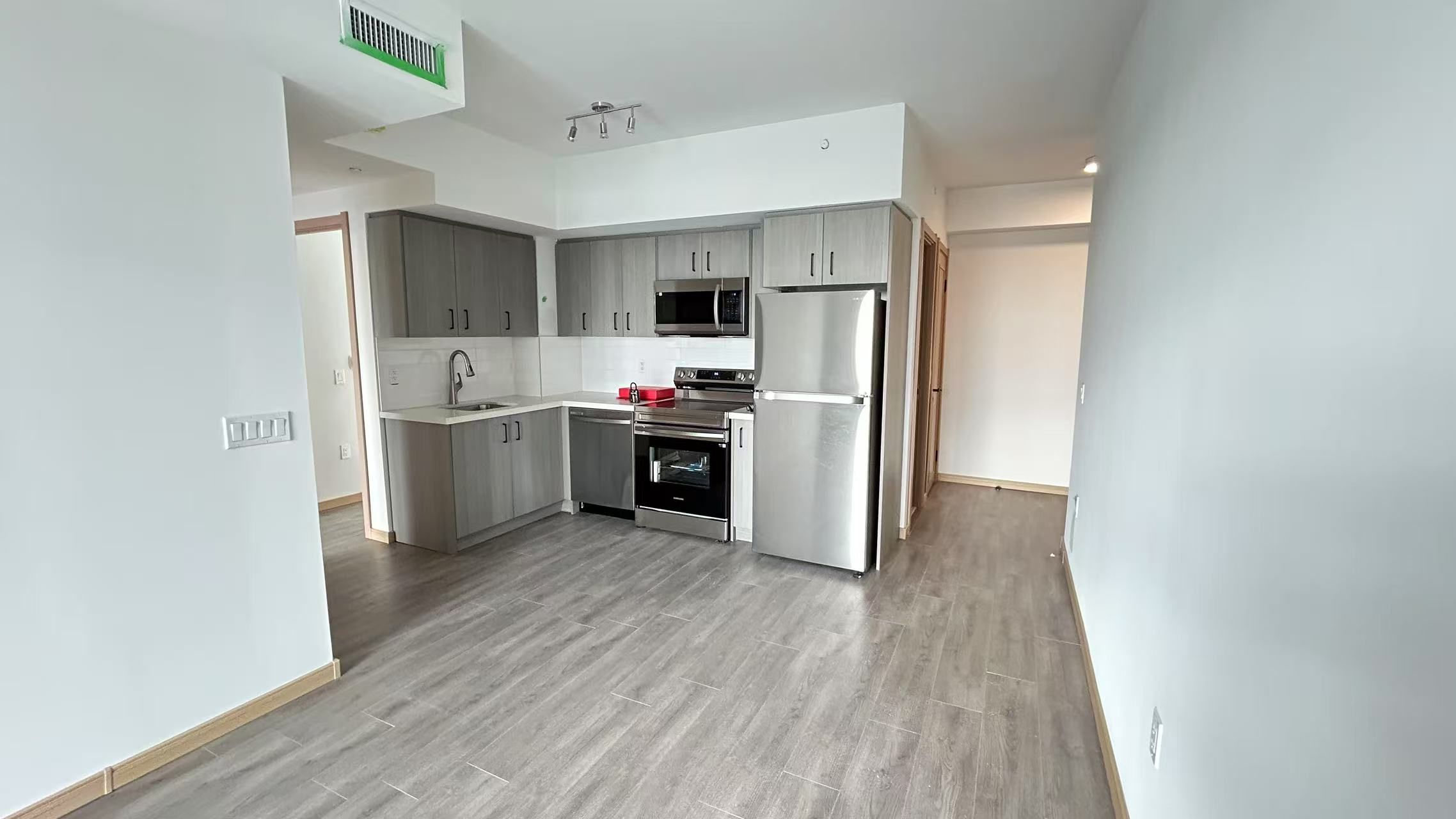 Brand new, Experience luxury living in this stunning 2 bedroom , 2 bathrooms,1 parking condo. The gourmet kitchen has sleek cabinetry, countertops, and stainless steel appliances . The building provides a range of luxurious amenities, including 24/7 concierge service and a state-of-the-art fitness center. Close to an Asian supermarket, with convenient transportation and access to Highway 401 within 5 minutes.