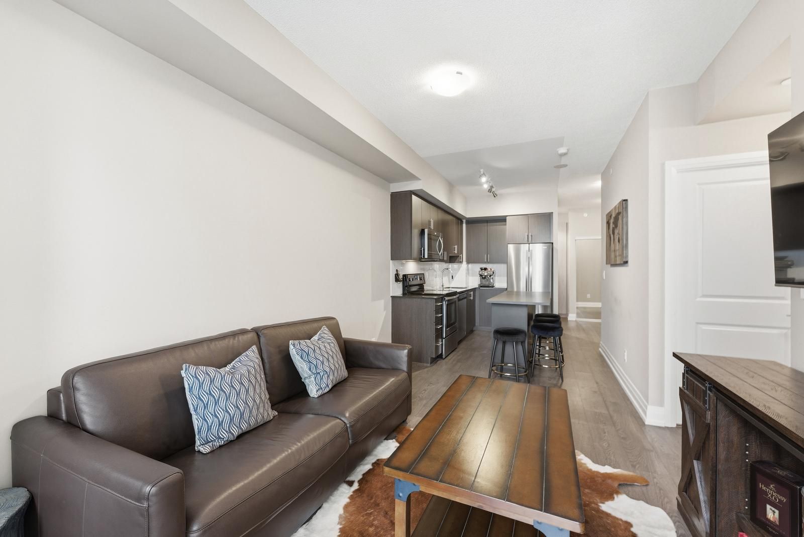 Welcome To 3600 Highway 7, Suite 2612 A Beautifully Upgraded 660 Sq. Ft. One-Bedroom Plus Den Condo Located On A High Floor With Unobstructed West-Facing Views And Abundant Natural Light Throughout. This Thoughtfully Designed Unit Features 1 Bedroom, 1 Den, And 1 Bathroom, Along With One Parking Spot And One Locker, Offering Both Comfort And Convenience. The Open-Concept Living Space Is Enhanced By Premium Upgrades And Smart Functionality, Perfect For Modern Urban Living. The Den Is Equipped With Custom Built-In Cabinetry And Ample Storage, Making It Ideal For A Work-From-Home Office Or Creative Workspace. The Bedroom Also Boasts Built-In Cabinetry And Custom Closet Organizers, Maximizing Storage While Maintaining A Sleek, Streamlined Look. Enjoy The Added Convenience Of Smart Home Features, Allowing You To Control Heating, Air Conditioning, And Lighting Remotely From Your Phone. Situated High Above The City, This Unit Offers Peaceful Living With Stunning Sunset Views And Plenty Of Natural Light Throughout The Day. A Perfect Option For Professionals, First-Time Buyers, Or Investors Seeking A Move-In-Ready Condo With Functional Upgrades And Smart Living Features In A Prime Location.