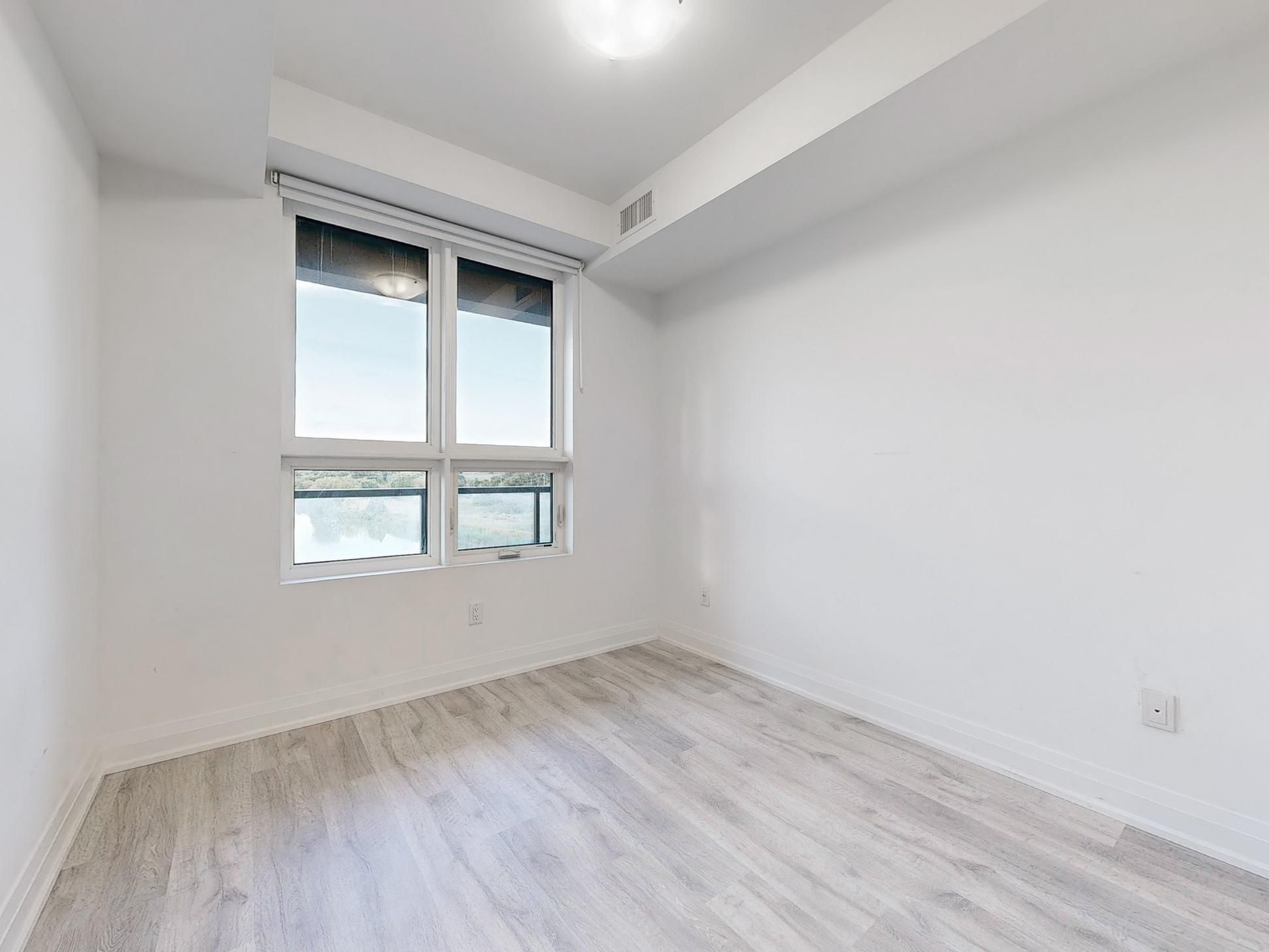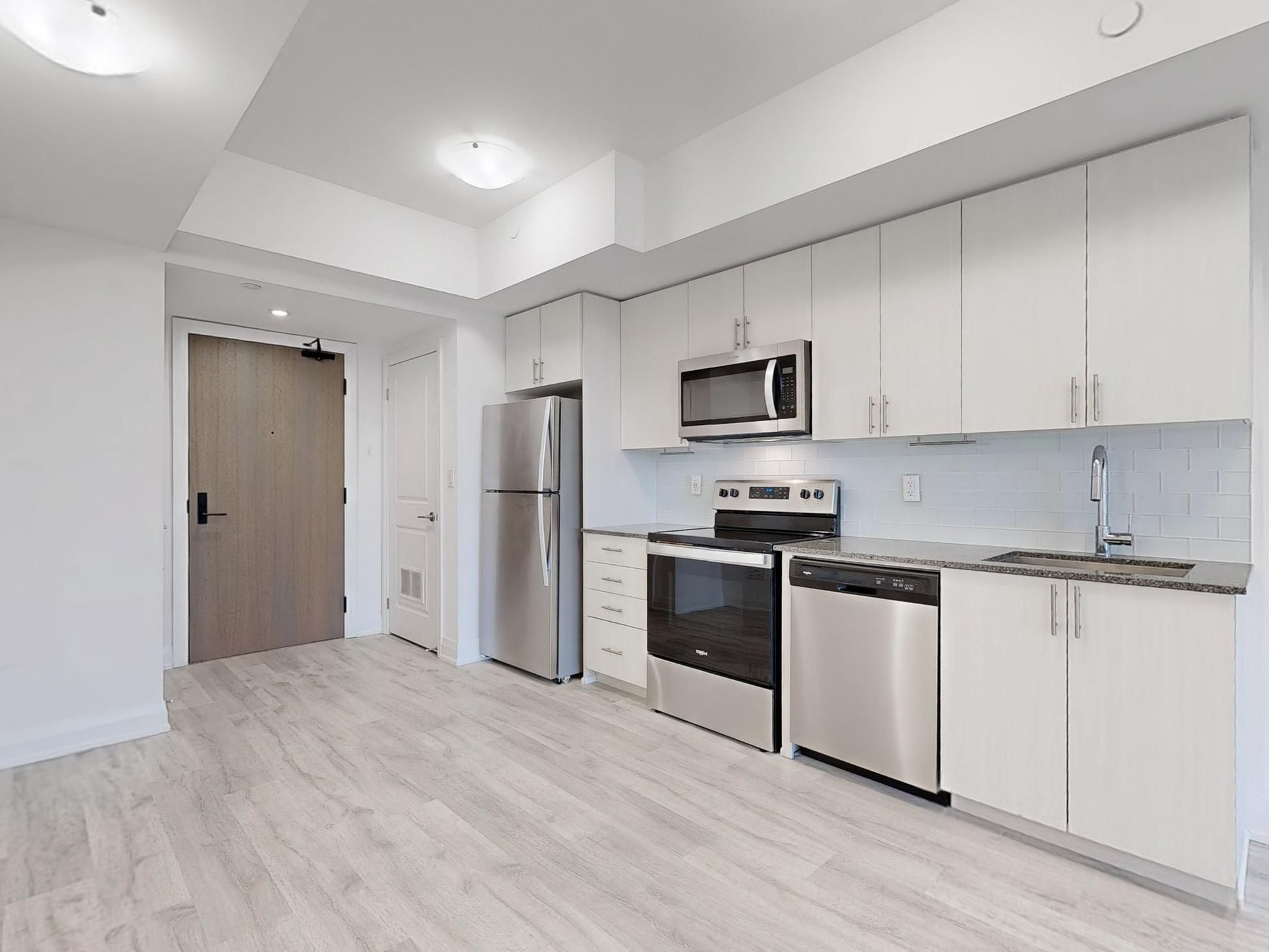 Absolutely Stunning, Bright 1 Bed 1 Bath 691 SQFT Condo Open Concept W/10' Ceilings. Laminate Flooring Throughout, Unobstructed Park View from The Patio. Modern Kitchen Design W/Granite Countertop, Marble Counter In Bathroom, Prime Bedroom W/Walk In Closet, Building Offers Security, Visitors Parking, Exercise Room, Jacuzzi Spa Room, Party Room, Rooftop & Guest Suites.