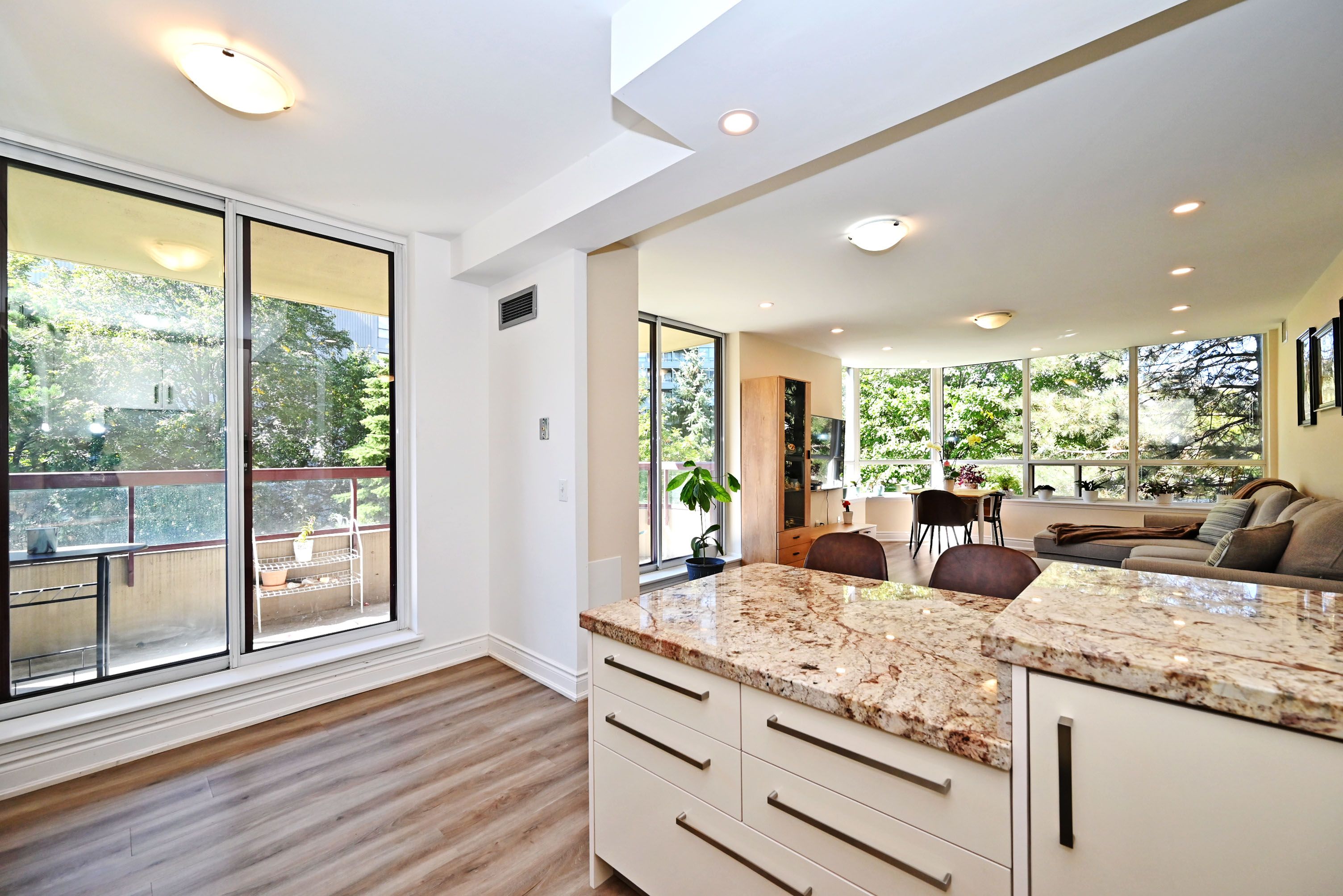 Welcome to a stunning, fully renovated 2-bed, 2-bath condo in a prime Thornhill location! This modern unit boasts a sleek open-concept layout with high-end finishes, including a new kitchen with stainless steel appliances, granite countertops, and a spacious living/dining area that opens to a private balcony. Enjoy fantastic building amenities such as a gym, whirlpool, outdoor pool, tennis court, and visitor parking. Ideally located near public transit, Promenade Mall, parks, and shopping. Includes 1 underground parking space and 1 locker.