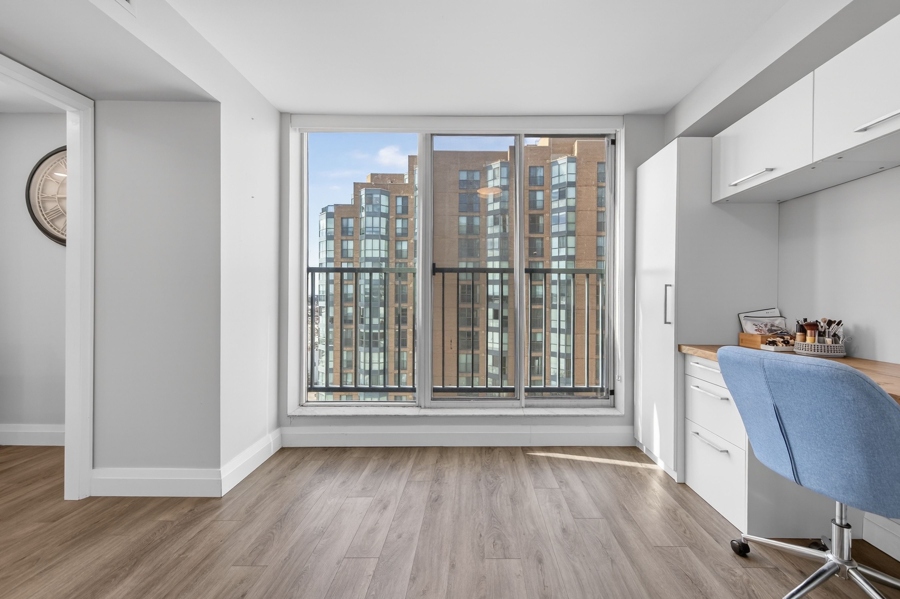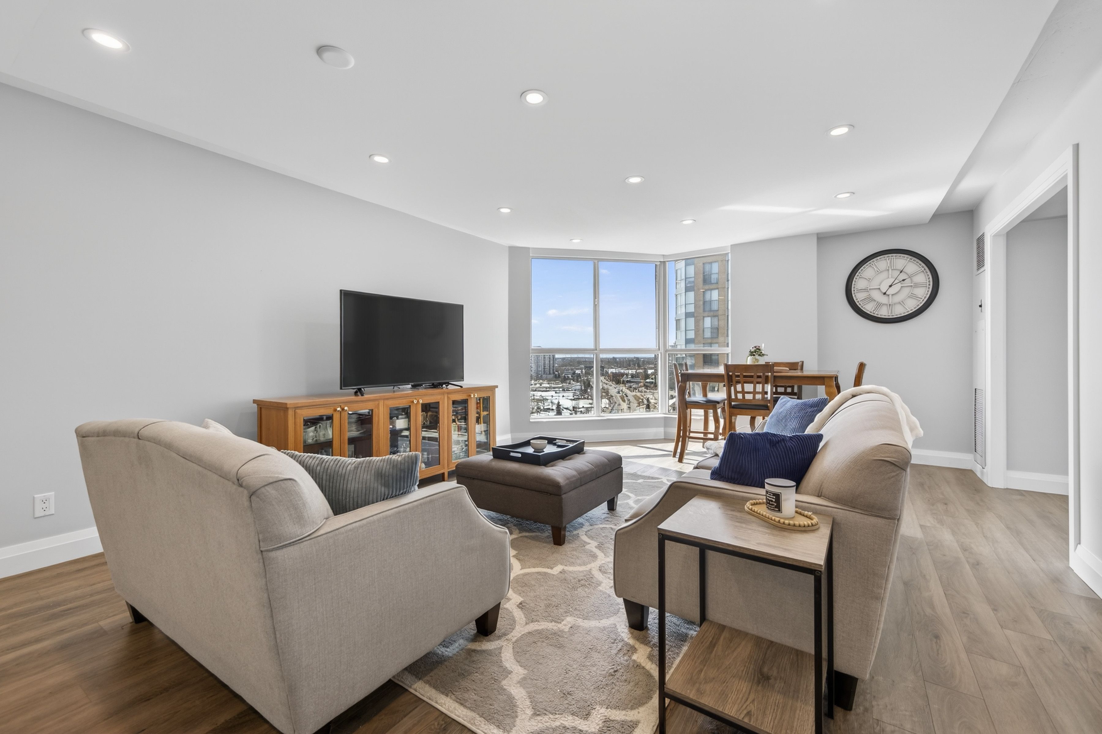 Welcome to Bayshore Landing - Barrie's Lakeside Lifestyle Awaits! Experience the best of lakeview condo living in this beautifully updated 1+1 bedroom, 1-bathroom suite overlooking the shimmering waters of Kempenfelt Bay. With 855 sq ft of bright, open-concept living space, this home feels spacious and inviting, featuring large windows, no carpet throughout, and thoughtfully designed built-in storage and closet systems. The modern kitchen flows seamlessly into the living and dining areas-perfect for entertaining or enjoying quiet evenings by the view. The versatile den offers an ideal space for a home office, guest area, or cozy reading nook. Bayshore Landing provides resort-like amenities including a saltwater indoor pool, fully equipped gym, party room, underground parking, car wash area, visitor parking, storage locker, and bike storage. This clean, well-maintained building offers comfort, convenience, and community right in the heart of Barrie's vibrant downtown-just steps to waterfront trails, cafés, and shopping. Move-in ready and meticulously maintained, this condo is the perfect blend of style, function, and location.