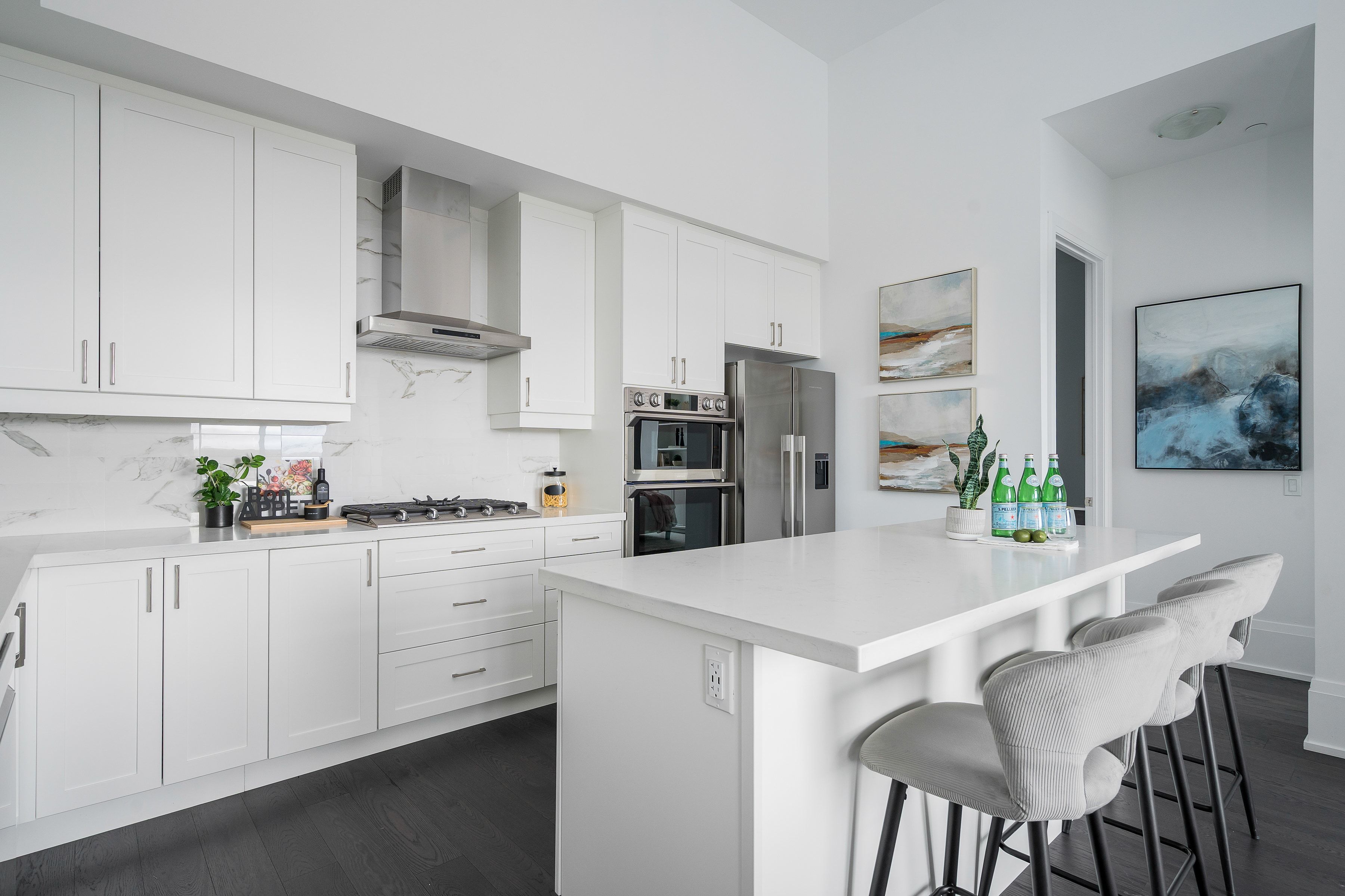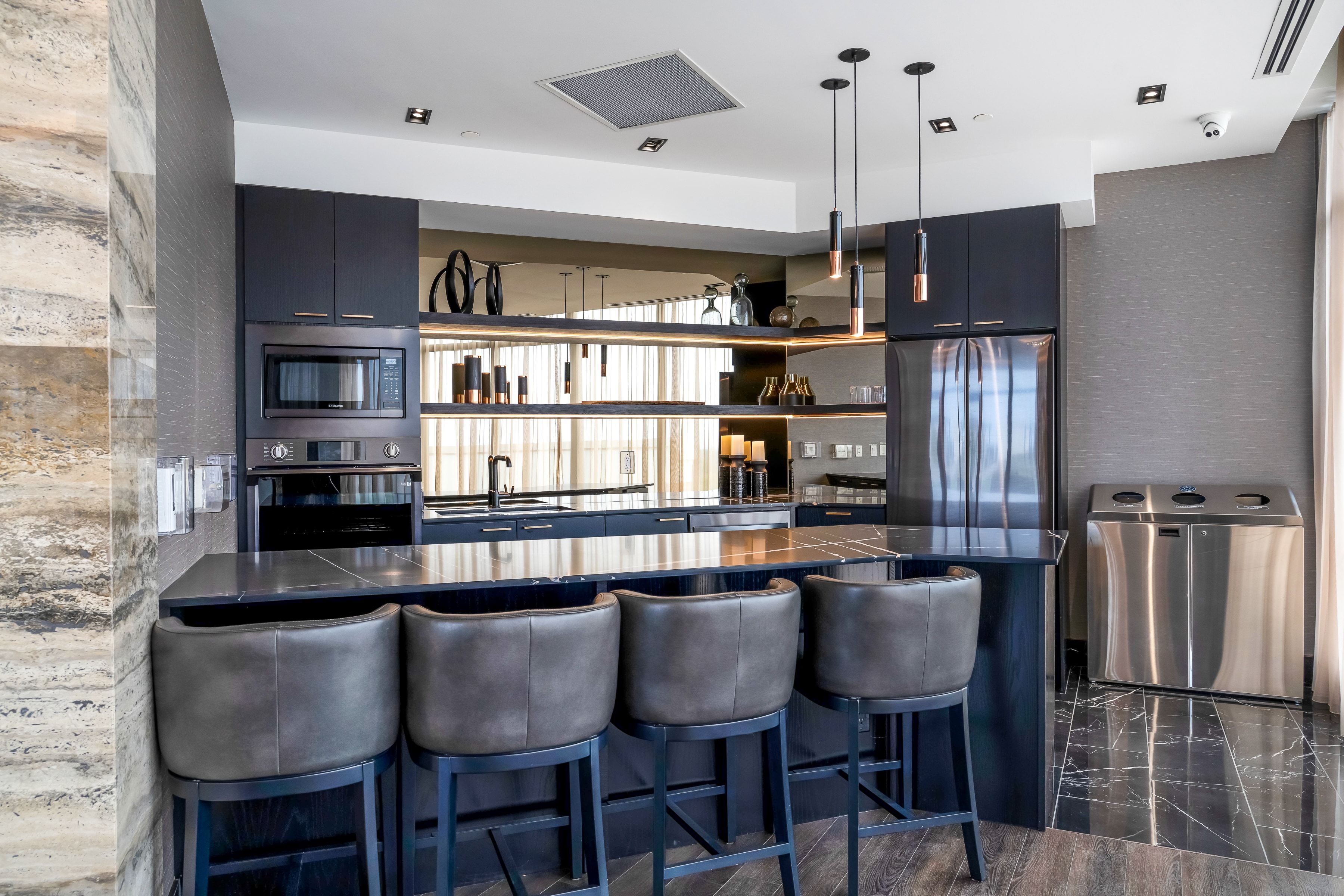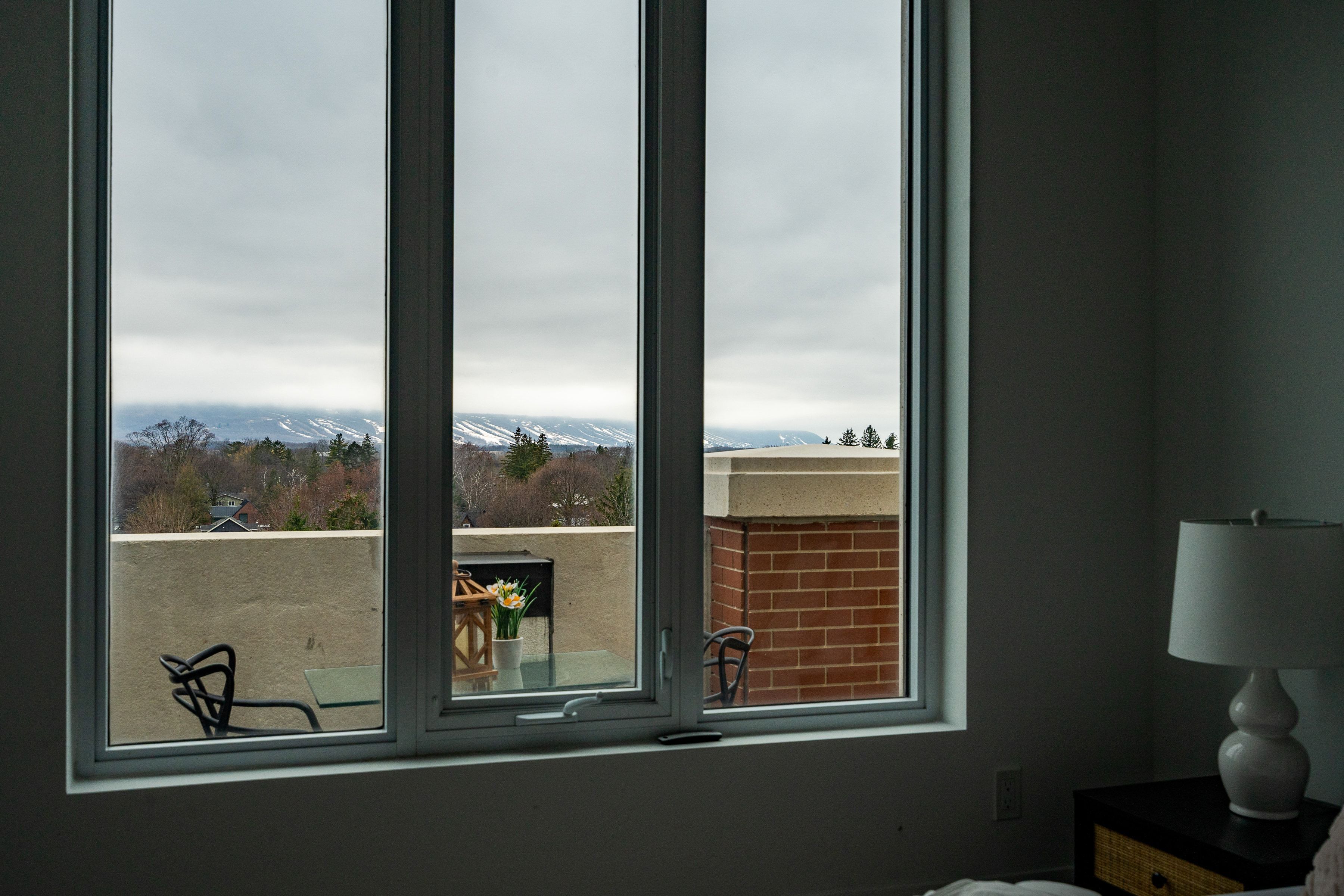 Perched atop one of downtown Collingwood's most sought-after addresses, Penthouse 10 at The Monaco is a rare offering-an exquisitely appointed 2-bdrm, 2 full bthrm residence with a study and bonus living space, embodying luxury four-season living. Offering 1,184 sq ft of refined interior space plus a 140 sq ft private terrace, this home blends sophisticated design, comfort, and breathtaking views, enhanced by impressive 13-ft ceilings throughout. Built by Stonebrook Developments, expansive windows showcase panoramic vistas from Blue Mountain to Georgian Bay, creating a stunning backdrop throughout the day. The open-concept living area features a chef-inspired kitchen with a 7-ft island, gas cooktop, built-in oven, and upgraded refrigeration, flowing seamlessly into the dining and living space with a sleek gas fireplace-perfect for entertaining. A bright, private study off the main living area offers flexibility as a home office or lounge. Thoughtful upgrades include custom built-ins in the entry and primary suite, along with integrated electronic blinds throughout. The primary bedroom serves as a tranquil retreat, complete with a spa-like ensuite featuring a deep soaker tub and glass walk-in shower. The private terrace extends the living space outdoors with a gas BBQ line and water connection-ideal for enjoying sunsets and mountain views. Residents enjoy premium amenities including a rooftop terrace with BBQs, fireplaces, lounge areas, and stunning bay views, plus an indoor lounge with kitchen and dining space. This unit also includes two underground parking spaces and a storage locker, offering both convenience and ample space for seasonal living or full-time enjoyment. Located in the heart of downtown Collingwood, just steps to shops, restaurants, cafés, and everyday amenities-with the added convenience of a grocery store located directly beneath the building-and with easy access to trails, skiing, and waterfront activities, this is penthouse living at its finest.
