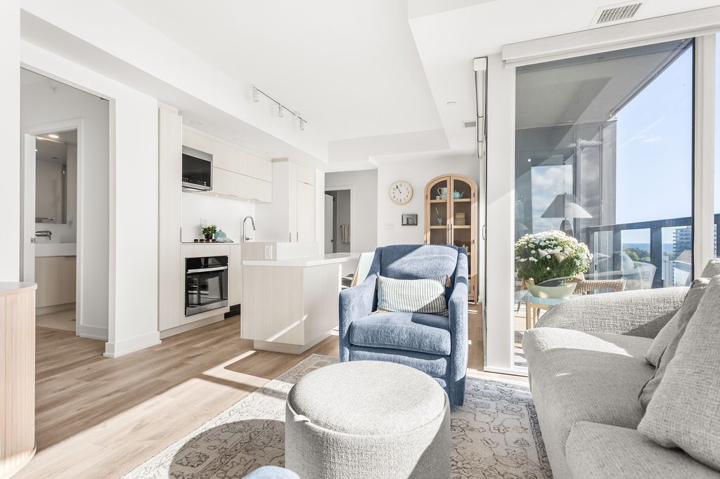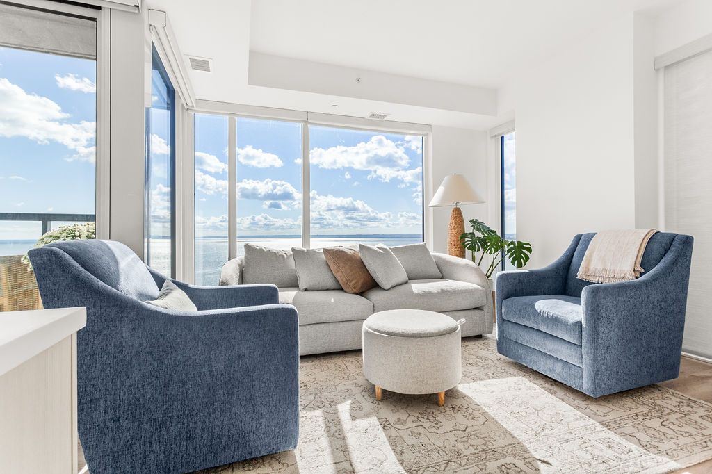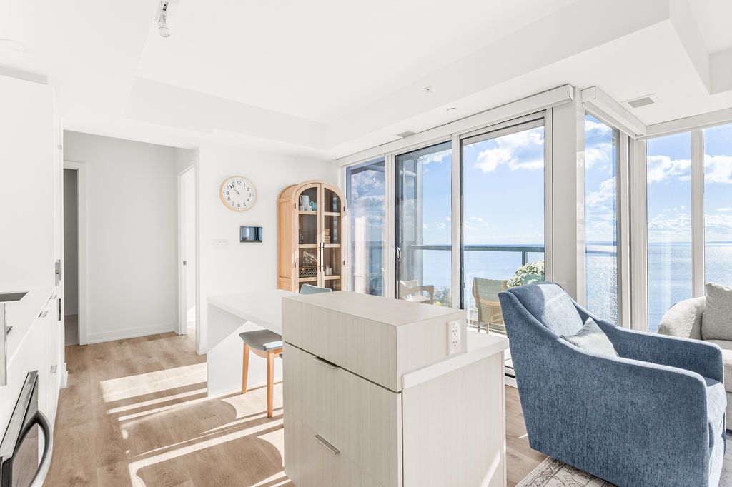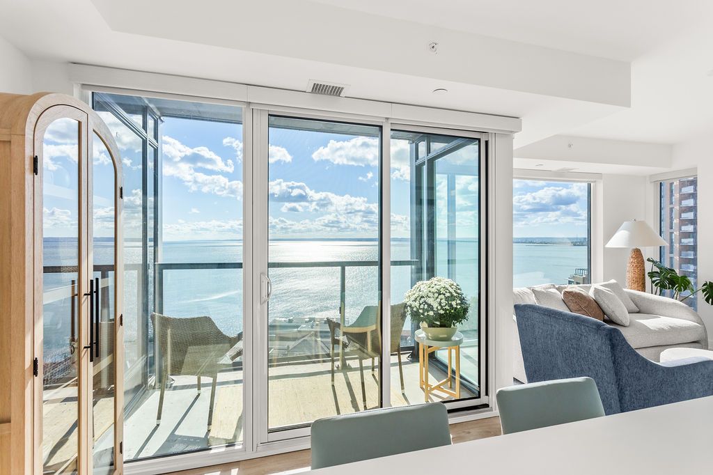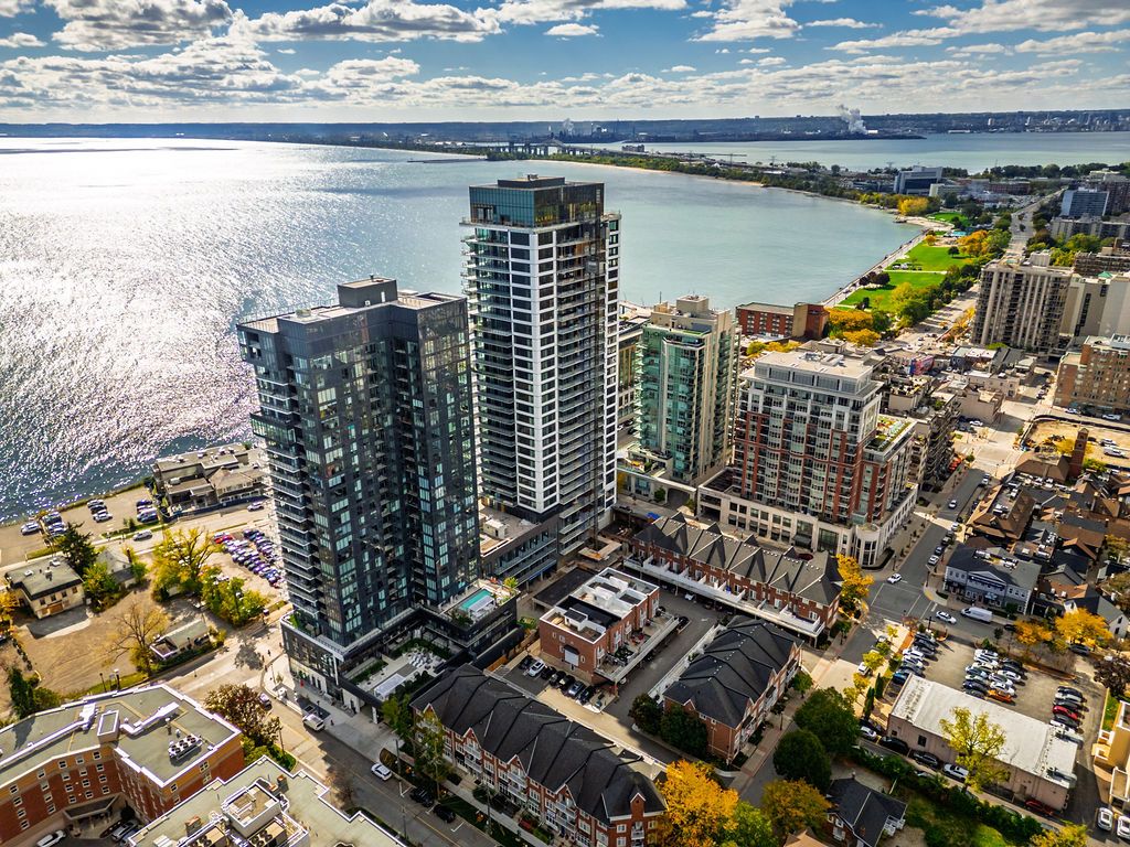Experience luxury lakeside living at its finest in this stunning 2-bedroom, 2-bath suite at the iconic Nautique Lakefront Residences in the heart of downtown Burlington. Floor-to-ceiling windows fill the space with natural light and frame spectacular panoramic views of the lake and vibrant cityscape. The open-concept layout features a designer kitchen with integrated appliances, quartz countertops, and modern cabinetry that seamlessly blend style and function. The spacious island doubles as a dining space, perfect for entertaining or casual meals. The primary bedroom offers ample closet space with custom built-ins and a spa-inspired ensuite, while the second bedroom is ideal for guests or a home office. Enjoy the convenience of in-suite laundry and automatic custom blinds. Step outside to your private balcony and take in the ever-changing waterfront views. Enjoy world-class amenities including a state-of-the-art fitness centre, resort-style outdoor pool with cabanas, hot tub, yoga studio, fire pits, barbecue terrace, and elegant resident lounge/party room with dining area and kitchen. Concierge service, executive meeting rooms, bike storage, secure underground parking, and a private storage locker complete this exclusive lifestyle package. Located steps to the lake, restaurants, boutiques, and the waterfront trail, this is downtown Burlington living at its most sophisticated.
