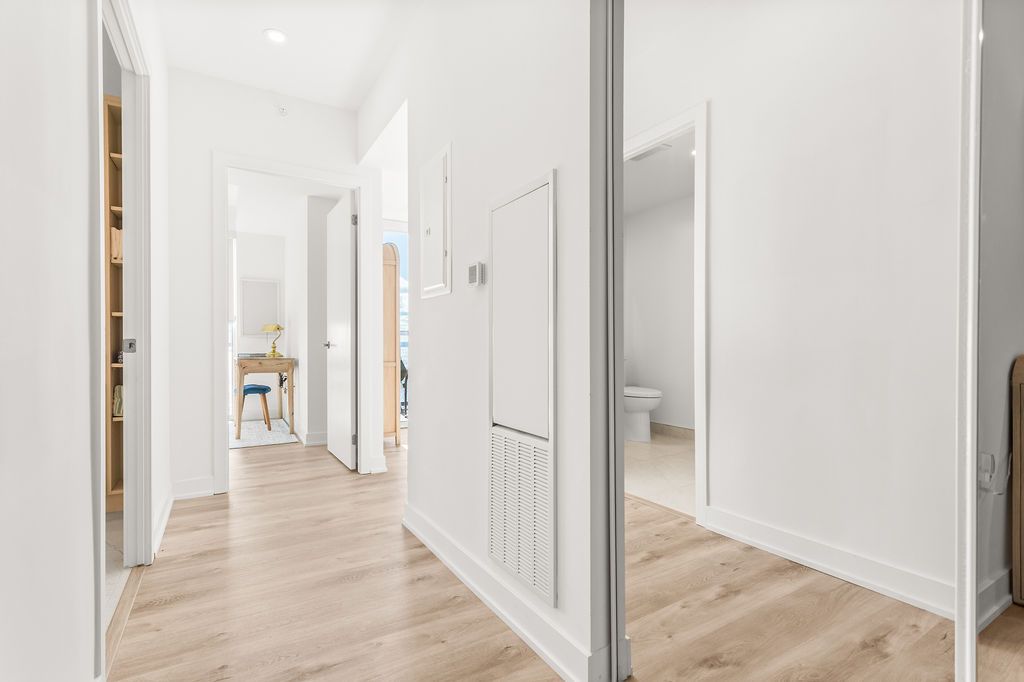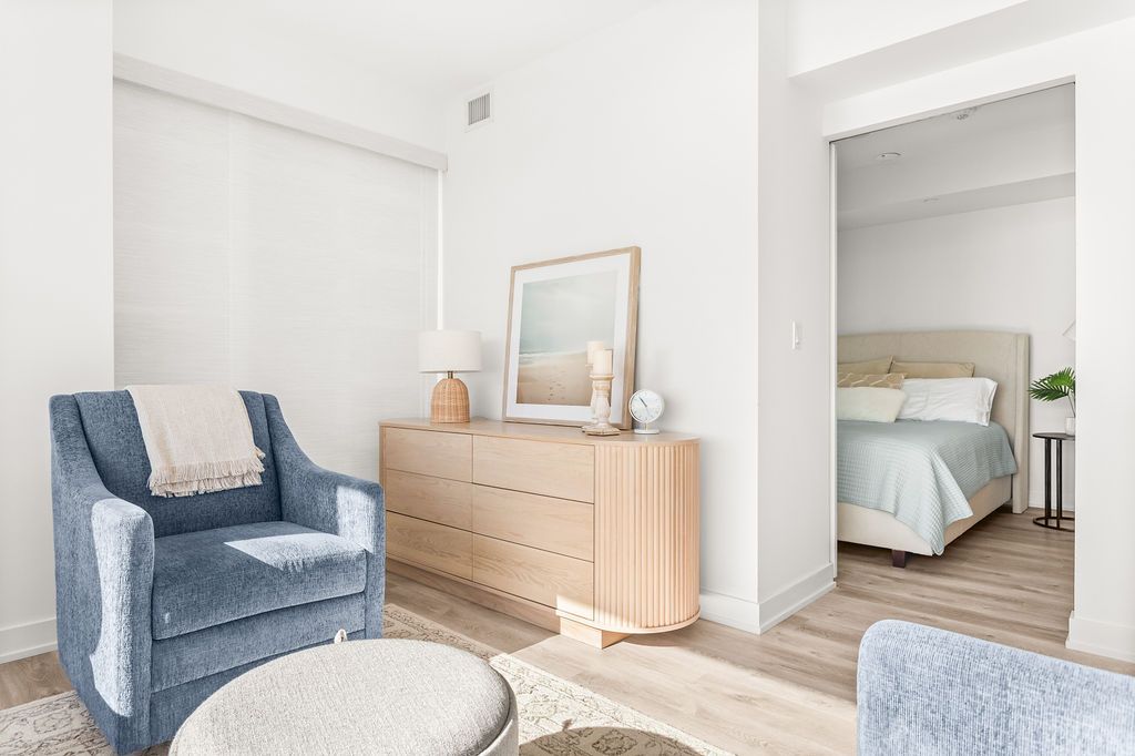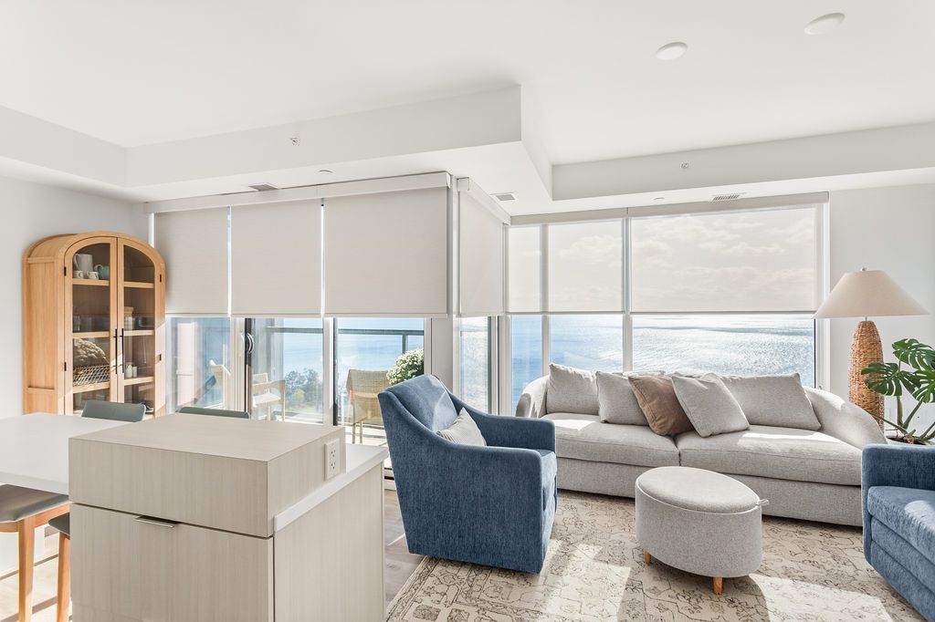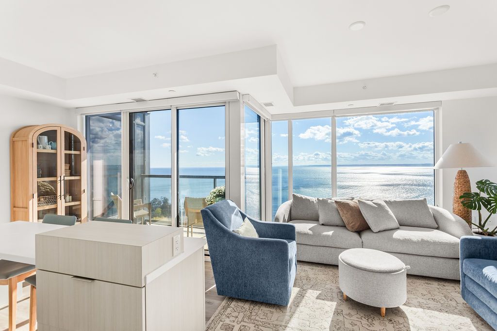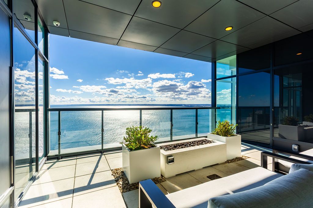 Experience luxury lakeside living at its finest in this stunning 2-bedroom, 2-bath suite at the iconic Nautique Lakefront Residences in the heart of downtown Burlington. Floor-to-ceiling windows fill the space with natural light and frame spectacular panoramic views of the lake and vibrant cityscape. The open-concept layout features a designer kitchen with integrated appliances, quartz countertops, and modern cabinetry that seamlessly blend style and function. The spacious island doubles as a dining space, perfect for entertaining or casual meals. The primary bedroom offers ample closet space with custom built-ins and a spa-inspired ensuite, while the second bedroom is ideal for guests or a home office. Enjoy the convenience of in-suite laundry and automatic custom blinds. Step outside to your private balcony and take in the ever-changing waterfront views. Enjoy world-class amenities including a state-of-the-art fitness centre, resort-style outdoor pool with cabanas, hot tub, yoga studio, fire pits, barbecue terrace, and elegant resident lounge/party room with dining area and kitchen. Concierge service, executive meeting rooms, bike storage, secure underground parking, and a private storage locker complete this exclusive lifestyle package. Located steps to the lake, restaurants, boutiques, and the waterfront trail, this is downtown Burlington living at its most sophisticated.