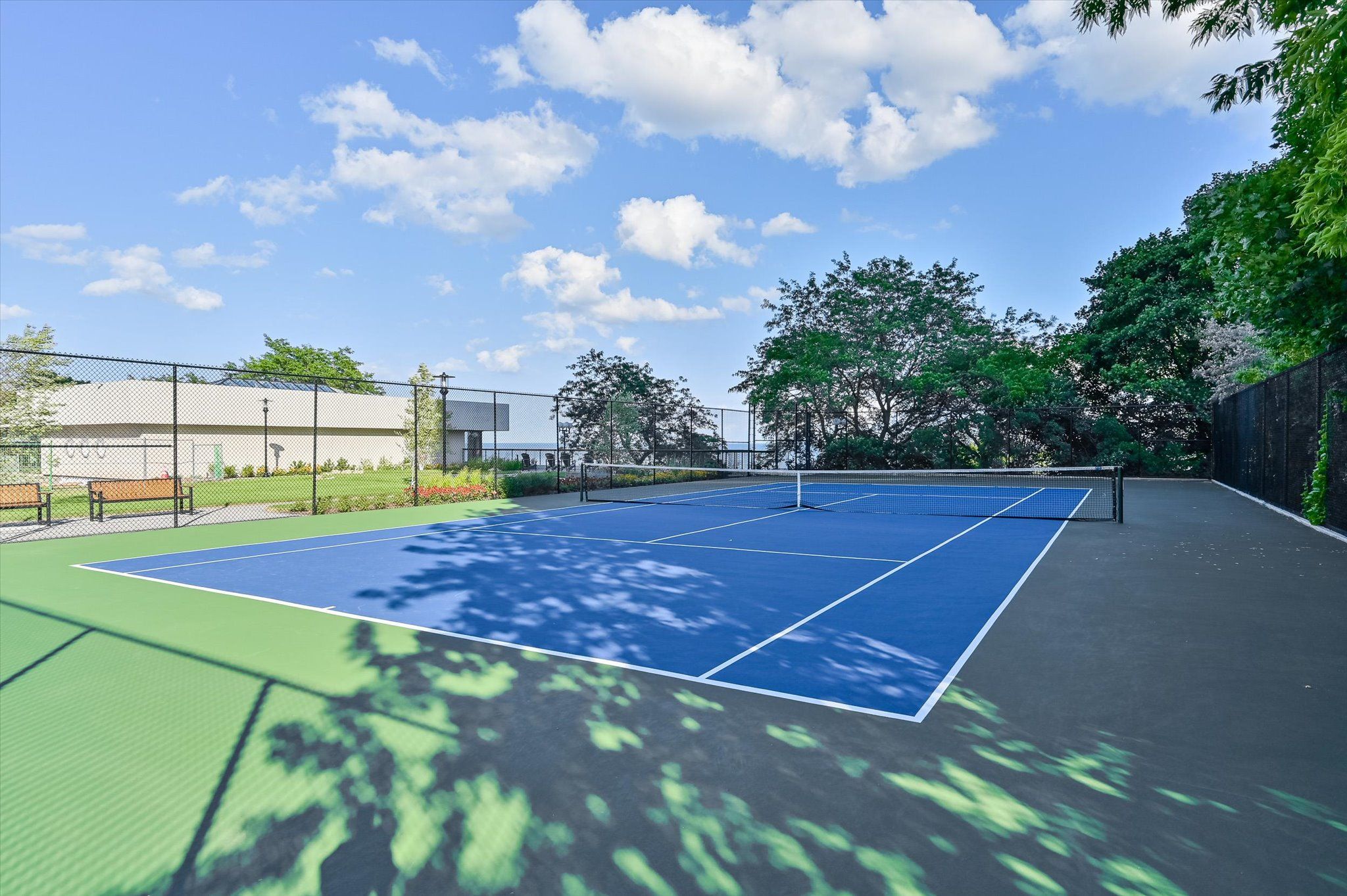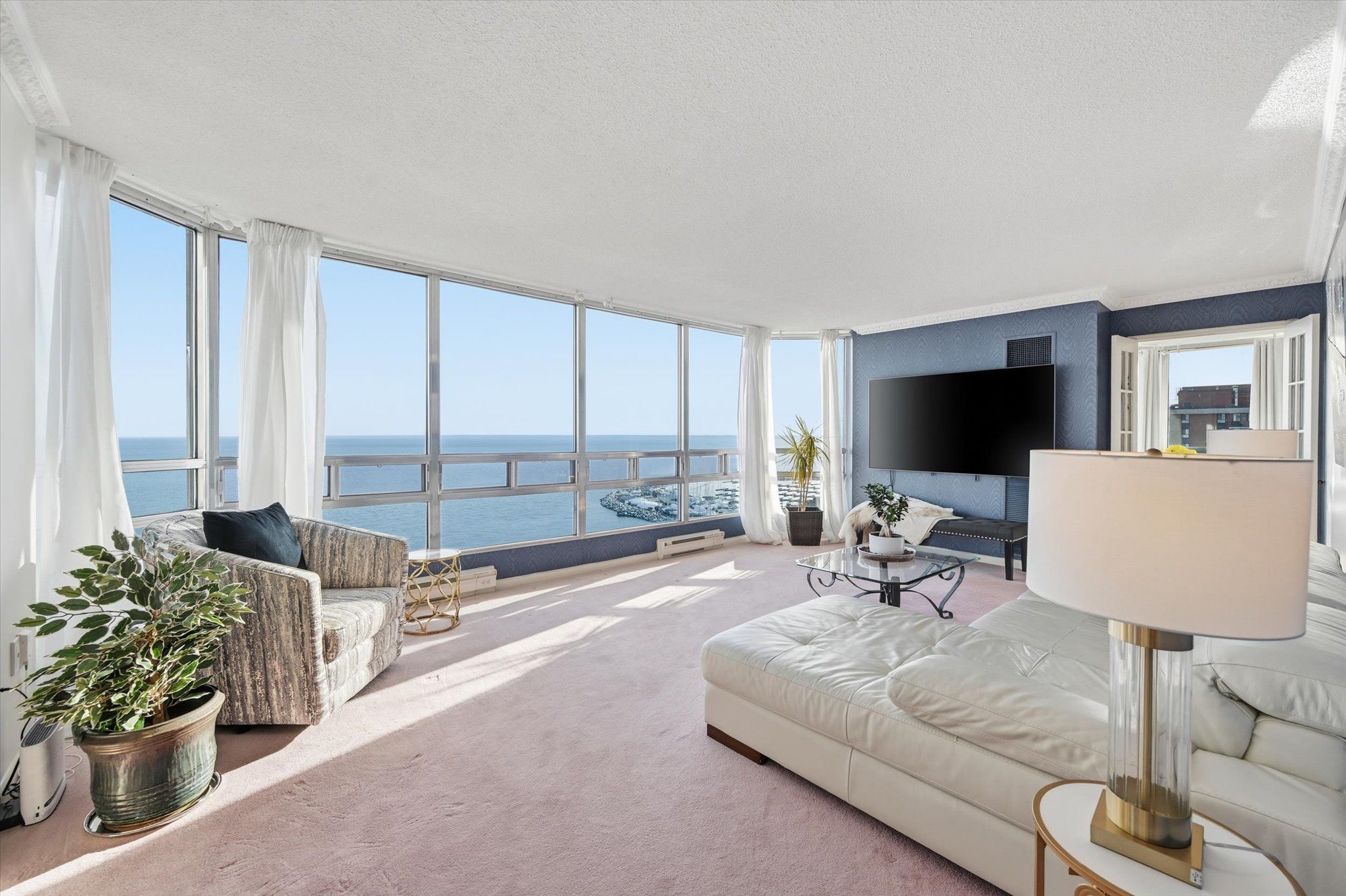 Welcome to an exceptional residence at the iconic Ennisclare II on the Lake-where sophistication, serenity & sweeping waterfront vistas define everyday living. Perched on the 18th floor this rare corner suite showcases breathtaking, uninterrupted views of Lake Ontario & Bronte Harbour from every principal room. Offering 1828 sq ft of refined single-level living it features 2 bedrooms, a versatile den, 2 bathrooms and three walkouts to an expansive private balcony designed for effortless indoor-outdoor enjoyment. Floor-to-ceiling windows flood the open-concept living and dining rooms with natural light capturing the beauty of the lake from sunrise to sunset. The impressive foyer with tray ceiling and walk-in closet sets the tone for timeless elegance. The den-enhanced by calming water views and balcony access-makes an ideal home office, reading retreat, or creative space. The quality kitchen blends function and style with abundant cabinetry, sleek countertops, a striking backsplash pot lighting, and a bright breakfast area. The spacious primary suite offers its own balcony walkout, walk-in closet and a spa-inspired ensuite with deep soaker tub. A second bedroom with balcony access and an adjacent 3-piece bath provides exceptional comfort for guests. Additional conveniences include in-suite laundry with storage, two underground parking spaces and an exclusive-use locker. Residents enjoy a resort-calibre lifestyle within this meticulously maintained, smoke-free, pet-restricted community. Amenities include 24-hour security, an indoor pool and hot tub, state-of-the-art fitness and yoga studios, clubhouse with library, entertainment lounges, billiards, golf simulator, squash and tennis courts, art and woodworking studios, car wash, visitor parking, and beautifully landscaped grounds. Just steps to Bronte Village's marina, waterfront trails boutique shops, cafés & dining-with easy access to the GO-this luxurious lakeside suite embodies Oakville's premier waterfront living.