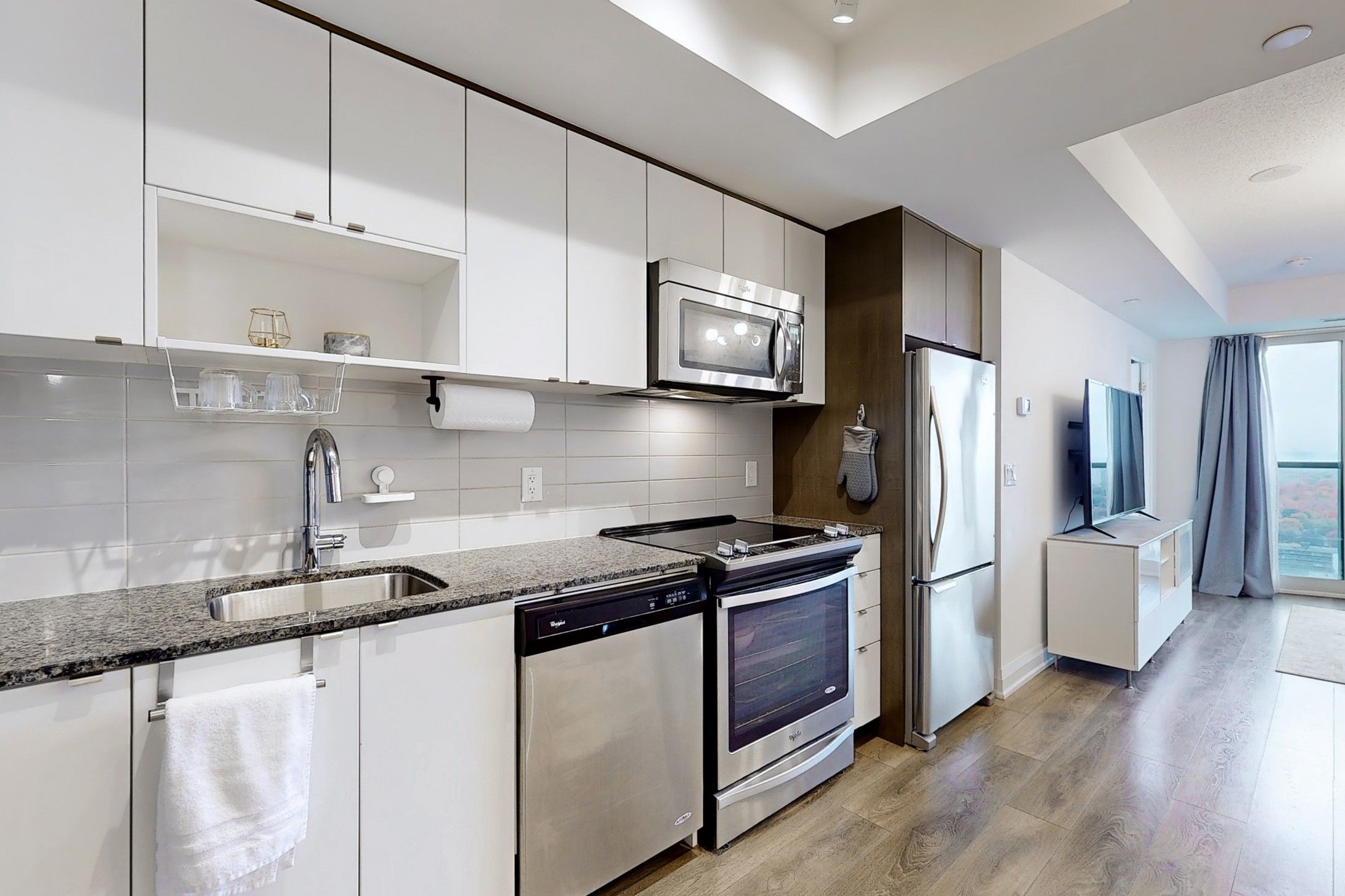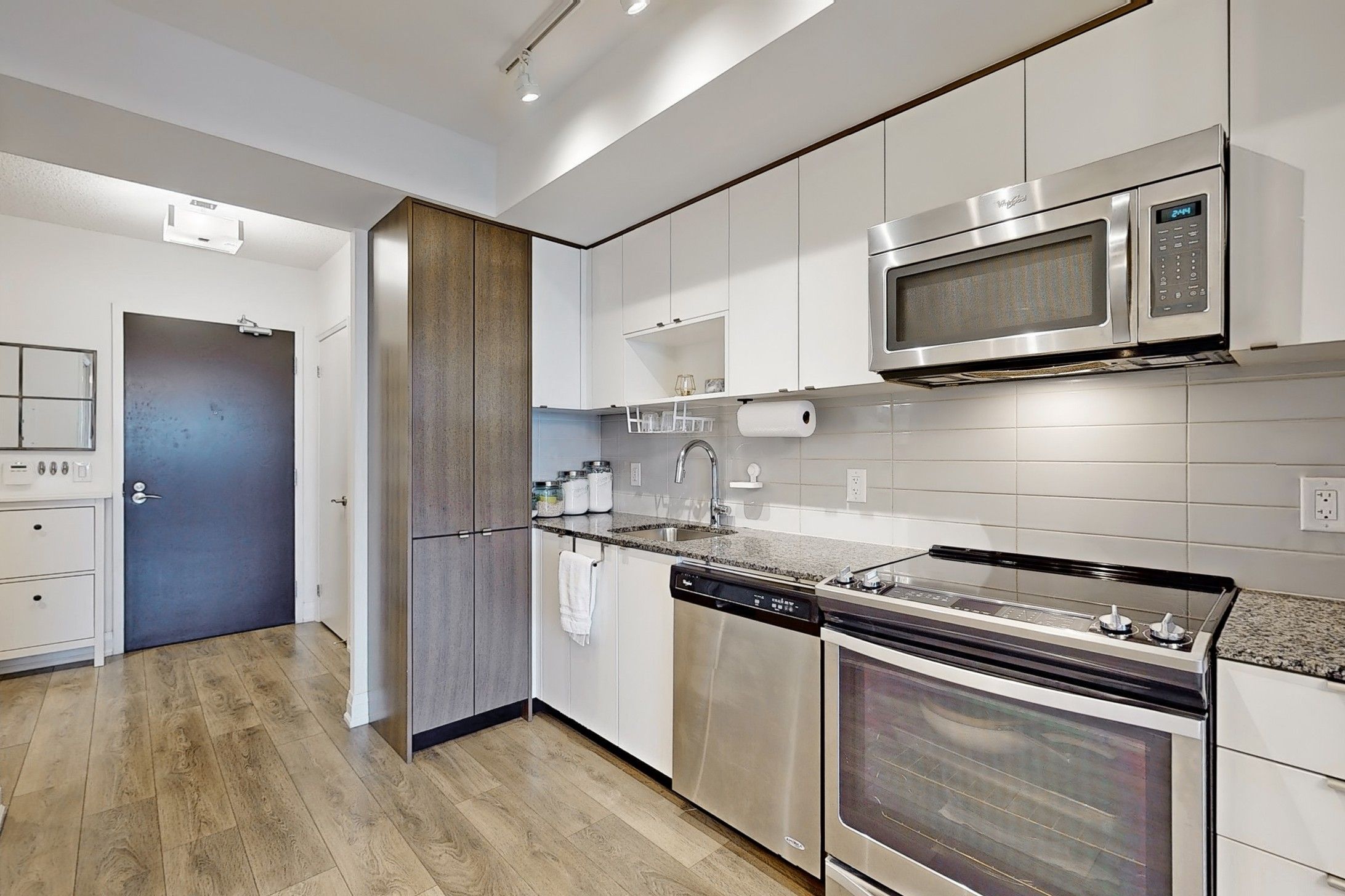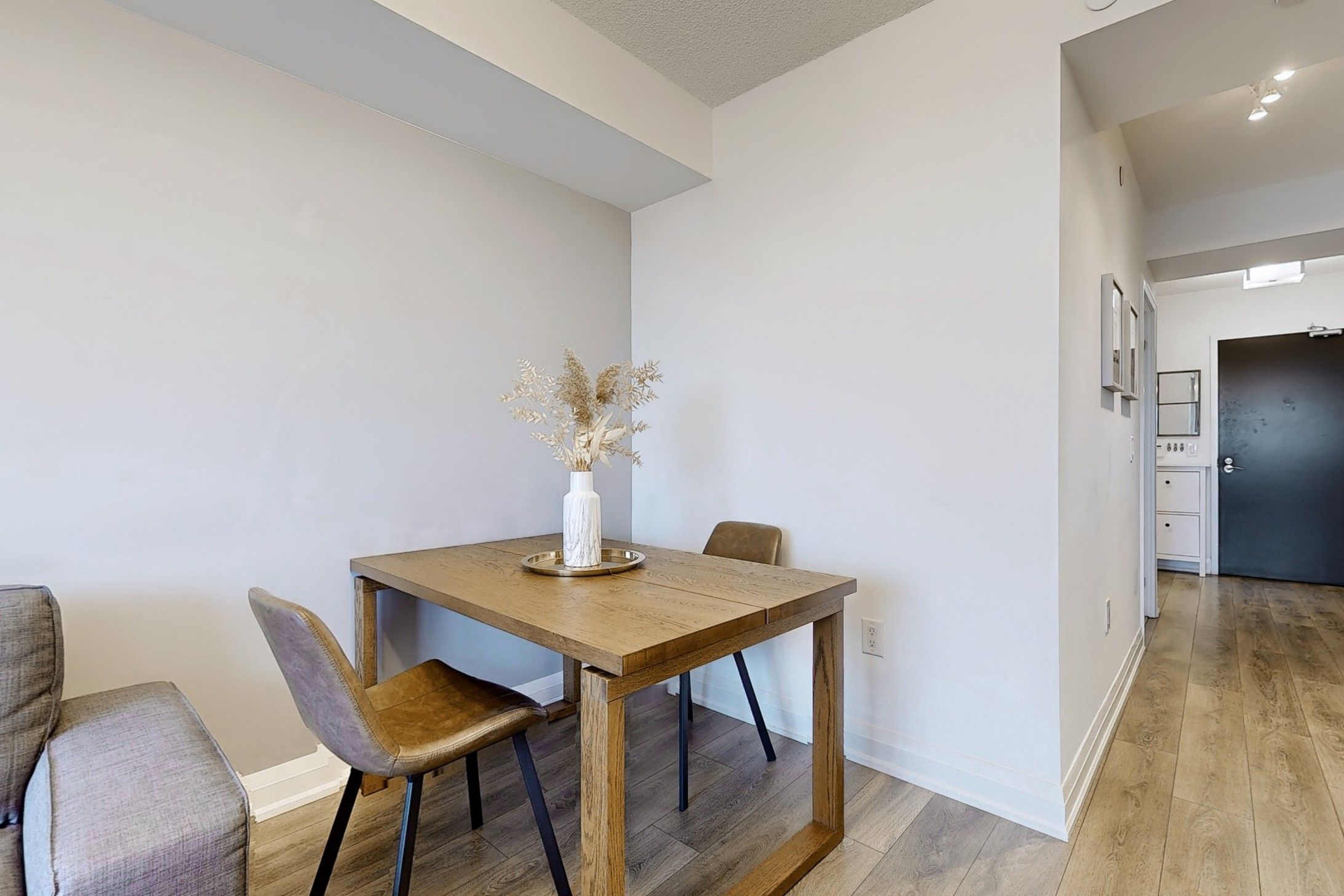 Location, location, location! Welcome to The Triumph at Valhalla-where comfort meets convenience in a prime Etobicoke neighbourhood. This bright and spacious west-facing 1+1 bedroom unit offers abundant natural light and unobstructed views, making it ideal for first-time buyers, down-sizers, or investors. The stylish kitchen features modern cabinetry, stainless steel appliances, and granite countertops, complemented by laminate flooring throughout the living/dining area and bedroom. Enjoy unbeatable accessibility to downtown Toronto, Highways 427/401/400, Gardiner Expressway, TTC transit, Pearson Airport, Sherway Gardens, restaurants, corporate offices, and nearby parks. Residents enjoy exceptional amenities including an indoor pool, whirlpool, sauna, fully equipped gym, and party room. A beautiful, move-in-ready condo you won't want to miss!