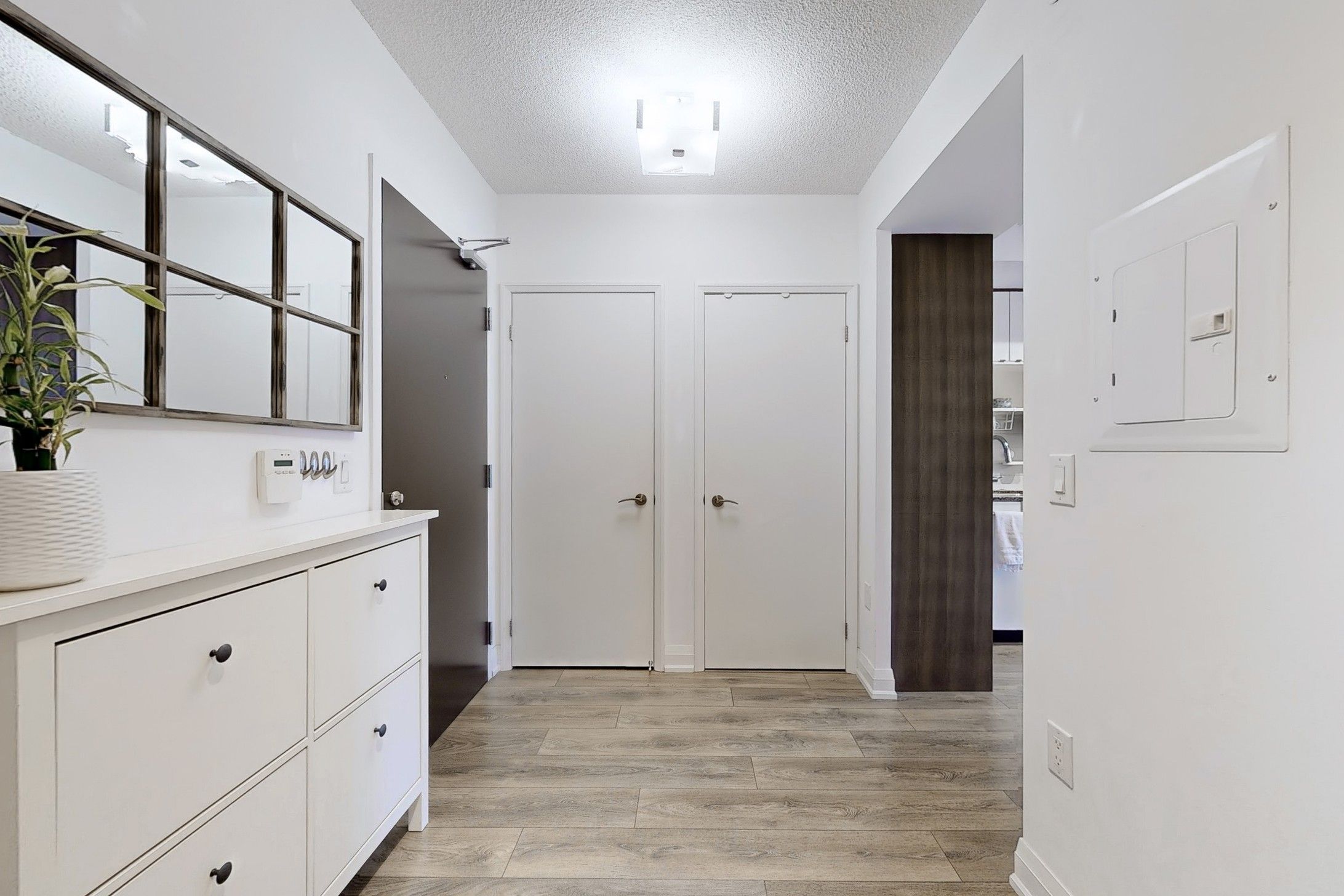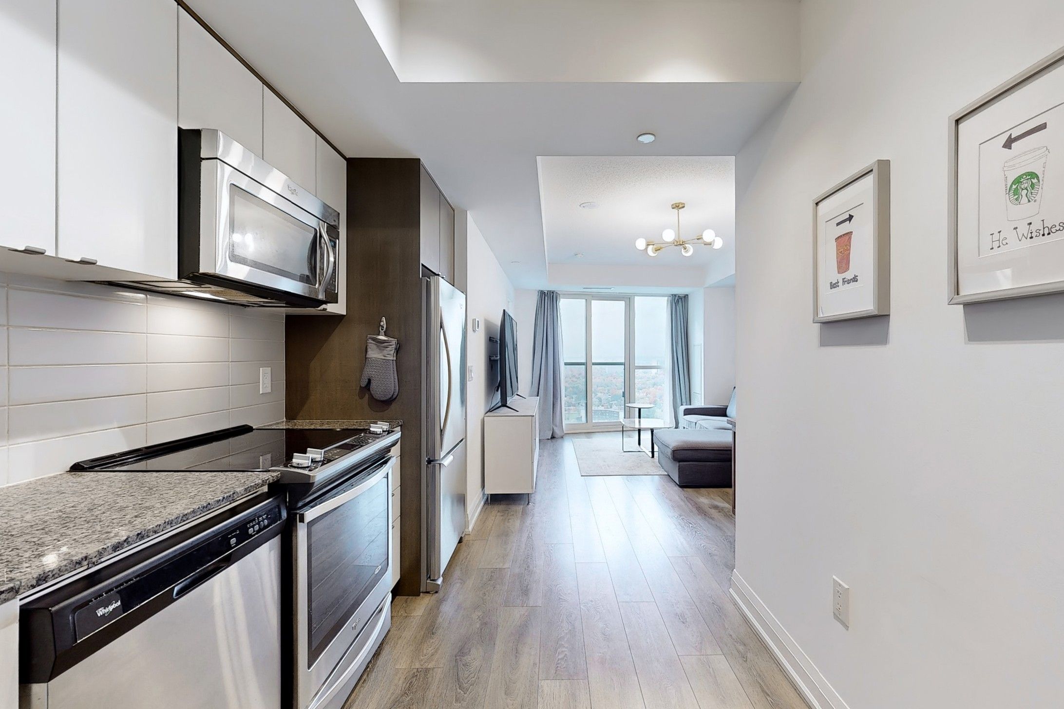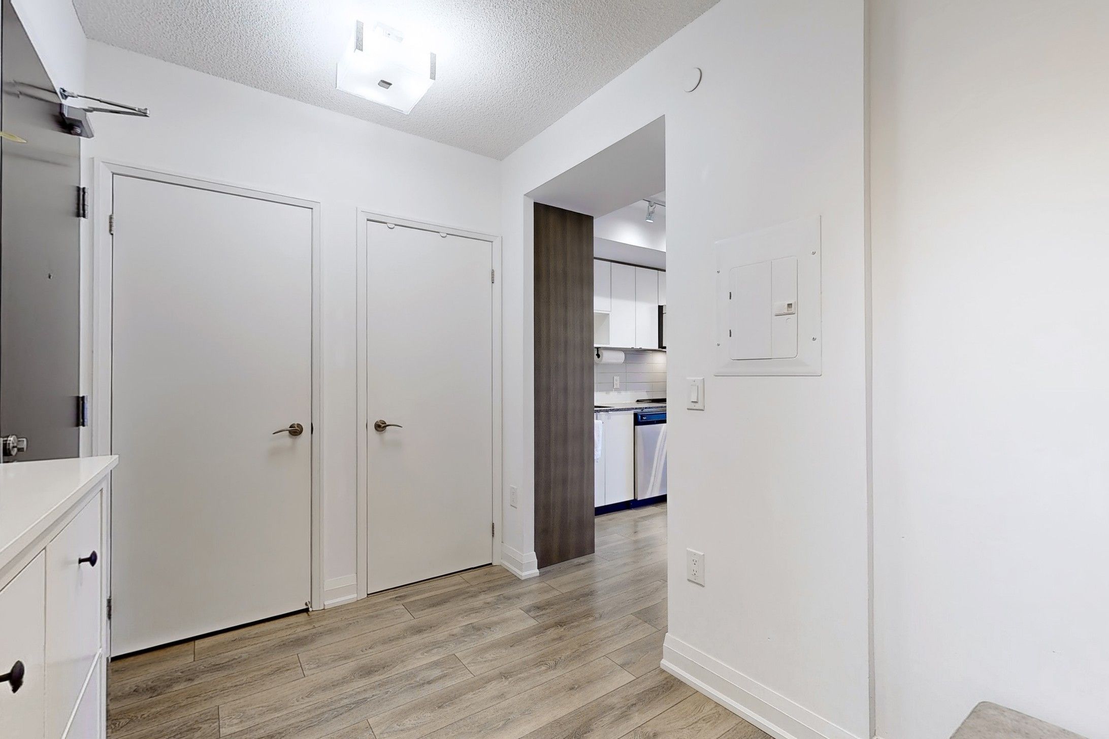 Location, location, location! Welcome to The Triumph at Valhalla-where comfort meets convenience in a prime Etobicoke neighbourhood. This bright and spacious west-facing 1+1 bedroom unit offers abundant natural light and unobstructed views, making it ideal for first-time buyers, down-sizers, or investors. The stylish kitchen features modern cabinetry, stainless steel appliances, and granite countertops, complemented by laminate flooring throughout the living/dining area and bedroom. Enjoy unbeatable accessibility to downtown Toronto, Highways 427/401/400, Gardiner Expressway, TTC transit, Pearson Airport, Sherway Gardens, restaurants, corporate offices, and nearby parks. Residents enjoy exceptional amenities including an indoor pool, whirlpool, sauna, fully equipped gym, and party room. A beautiful, move-in-ready condo you won't want to miss!