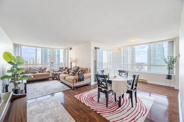 Welcome to this rarely available, sun-drenched 2-bedroom + solarium, 2-bathroom corner suite in one of Mississauga's most sought-after addresses The Towne. Offering an expansive 1,395 sq ft of thoughtfully designed living space, this home boasts unobstructed southeast views of Lake Ontario and the city skyline. Freshly painted and move-in ready, the smart layout features a bright, open-concept living and dining area with floor-to-ceiling windows, a modern kitchen with ample storage, a spacious primary retreat with walk-in closet and 4-piece ensuite, and a large second bedroom. The enclosed solarium with a door offers endless possibilities a third bedroom, private home office, or cozy den. All-inclusive living maintenance fees cover all utilities, high-speed internet, and cable TV. Includes two parking spots, free visitor parking, Airbnb permitted (no short-term rentals), and pets allowed with restrictions. Indulge in resort-style amenities: 24-hour concierge, indoor pool, indoor & outdoor Jacuzzis, sauna, indoor & outdoor gym, tennis & squash courts, party room, guest suites, and more. Unbeatable location steps to Square One, Kariya Park, schools, transit, GO Station, and major highways. This is more than a condo its a rare opportunity to own one of the largest and most versatile layouts in a prime downtown Mississauga building. Don't miss it!